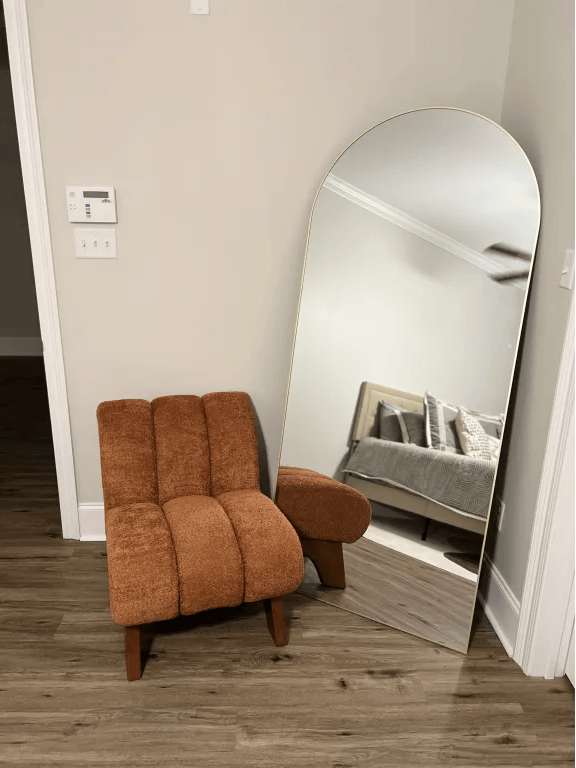 Anchor your room's elegance with our accent chair, featuring solid wood legs and discreet blanket-foot pads to protect your floors from scratches. A fusion of comfort and modern sophistication.