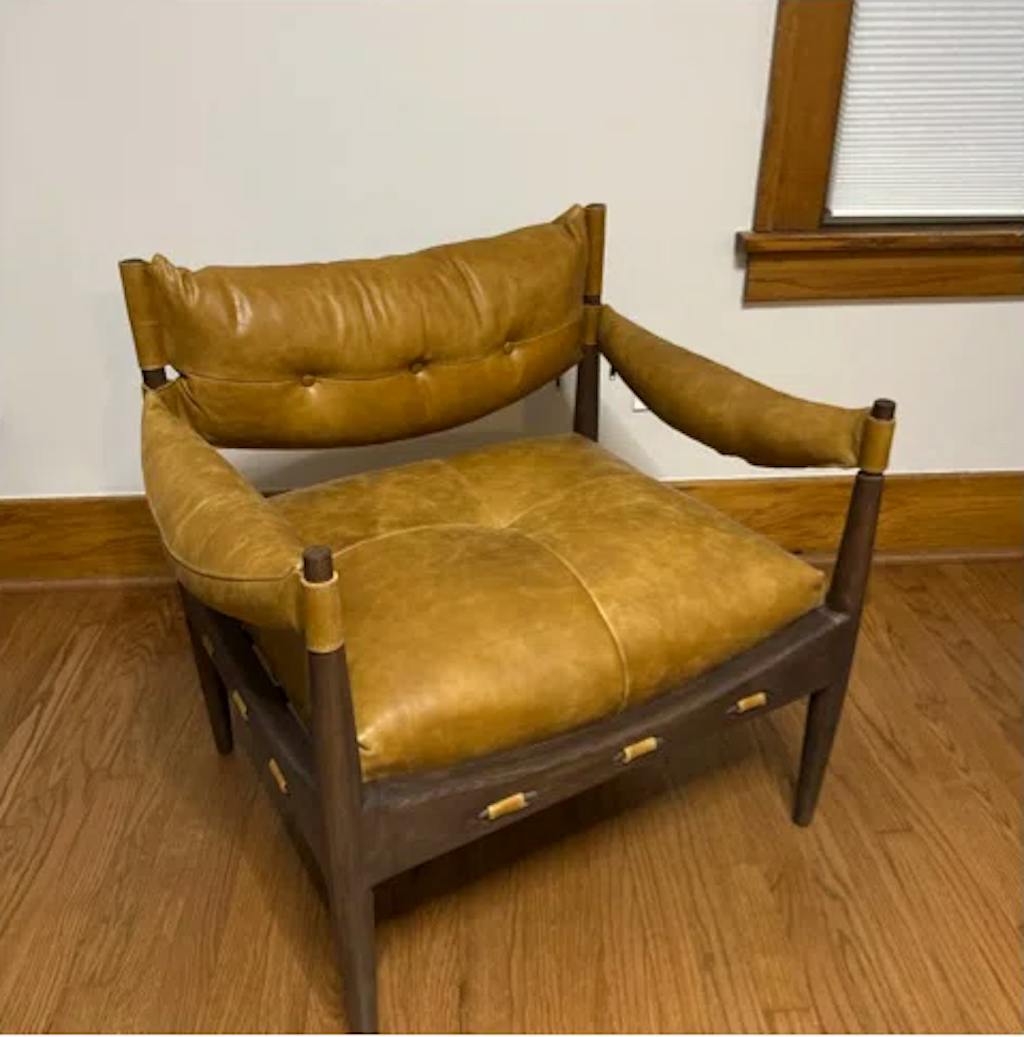 Bring a touch of luxury and sophistication to your space with the Genuine Leather Lounge Chair! This accent armchair highlights a sturdy ash wood frame with a warm glaze that beautifully complements the soft, genuine leather upholstery.