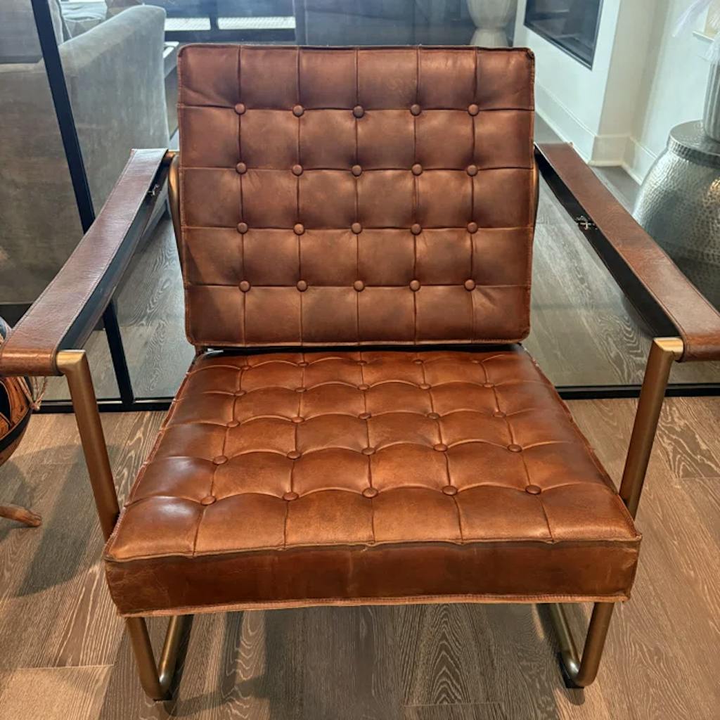Art Leon Tufted Genuine Leather Upholstered Accent Armchair with Gold Metal Frame, Medieval Luxury Design