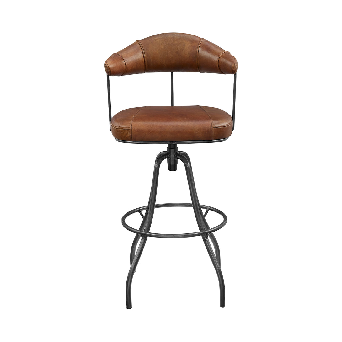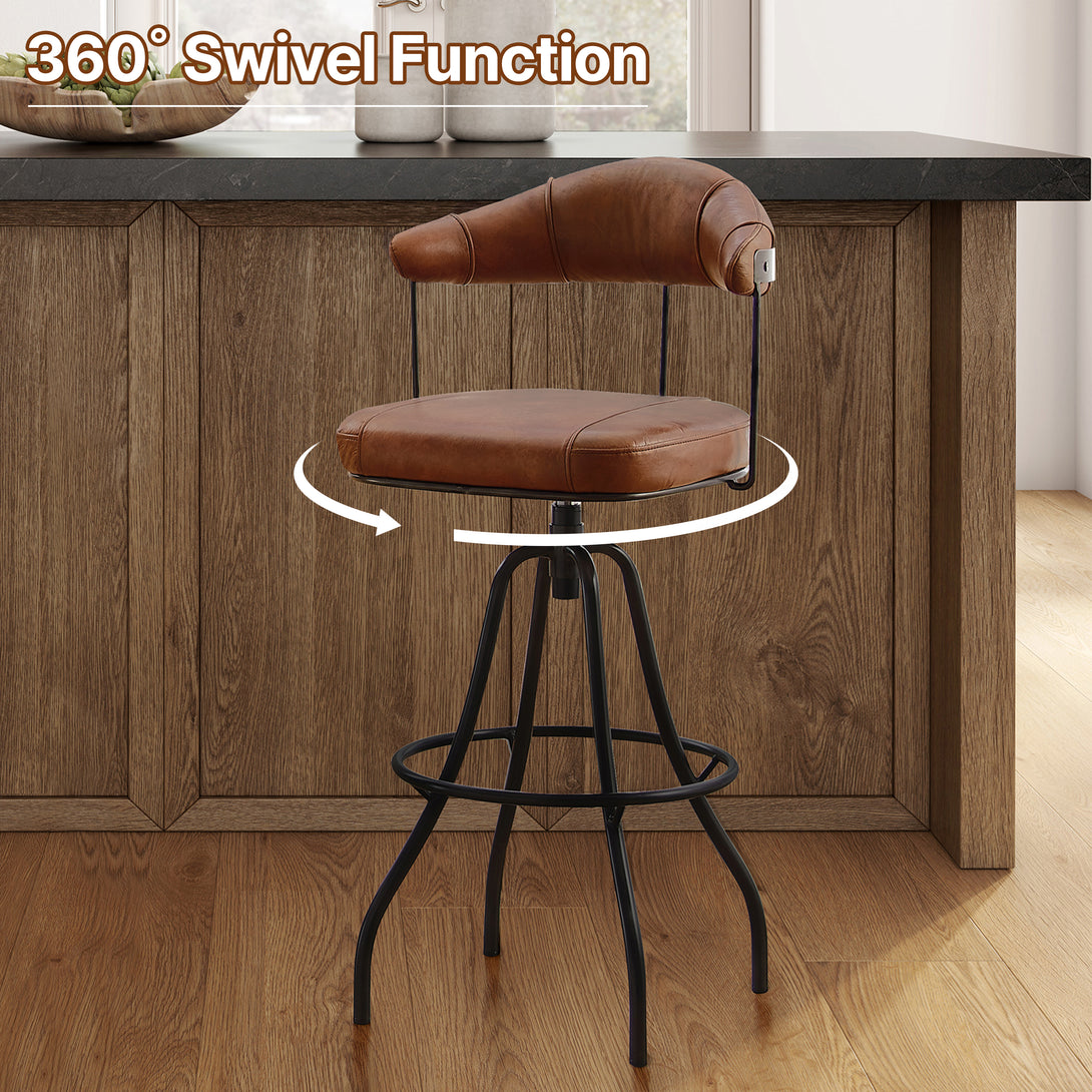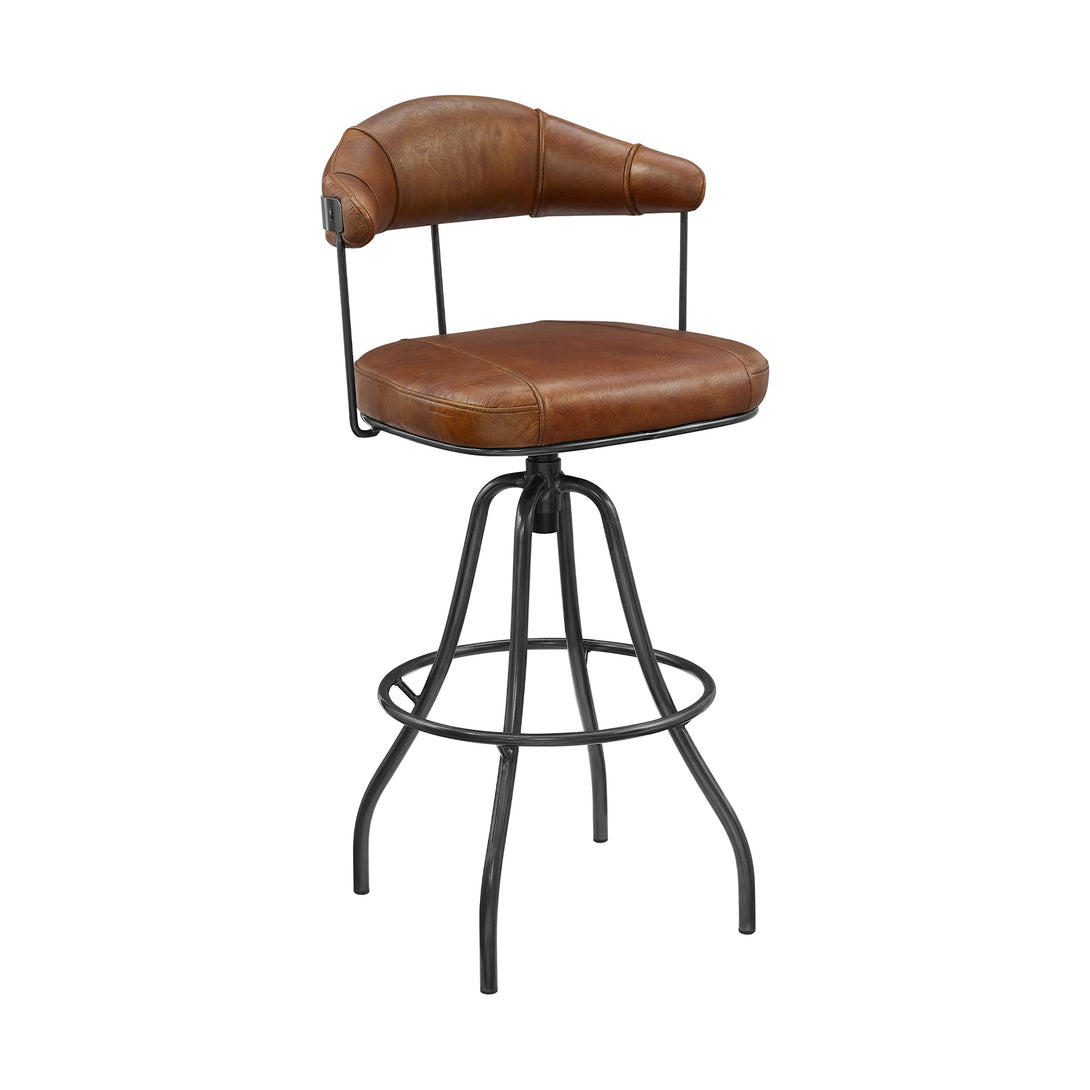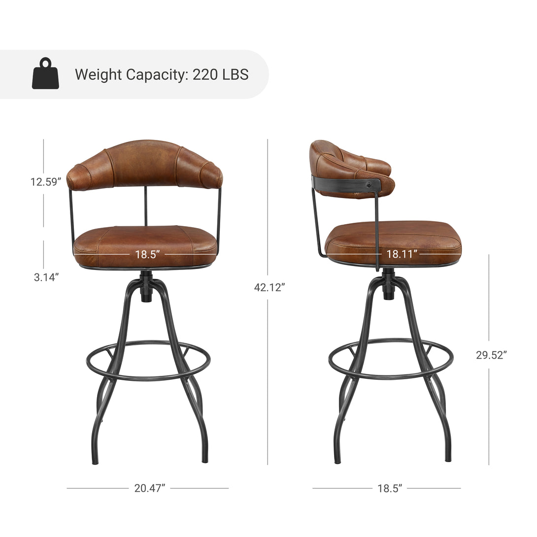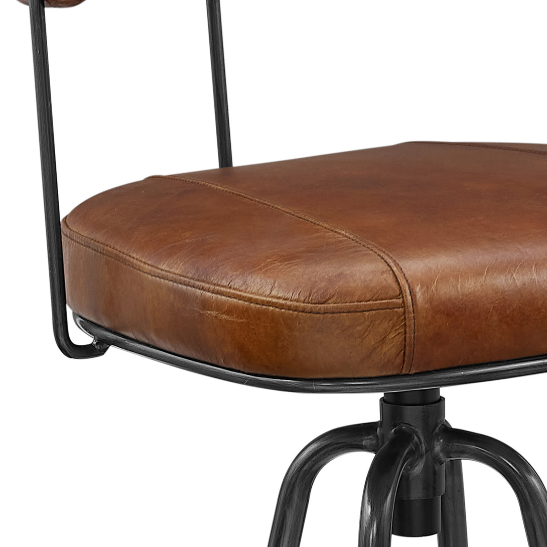 Art Leon Genuine Leather Swivel Bar Stool Industrial Medieval Design with Cutout Backrest