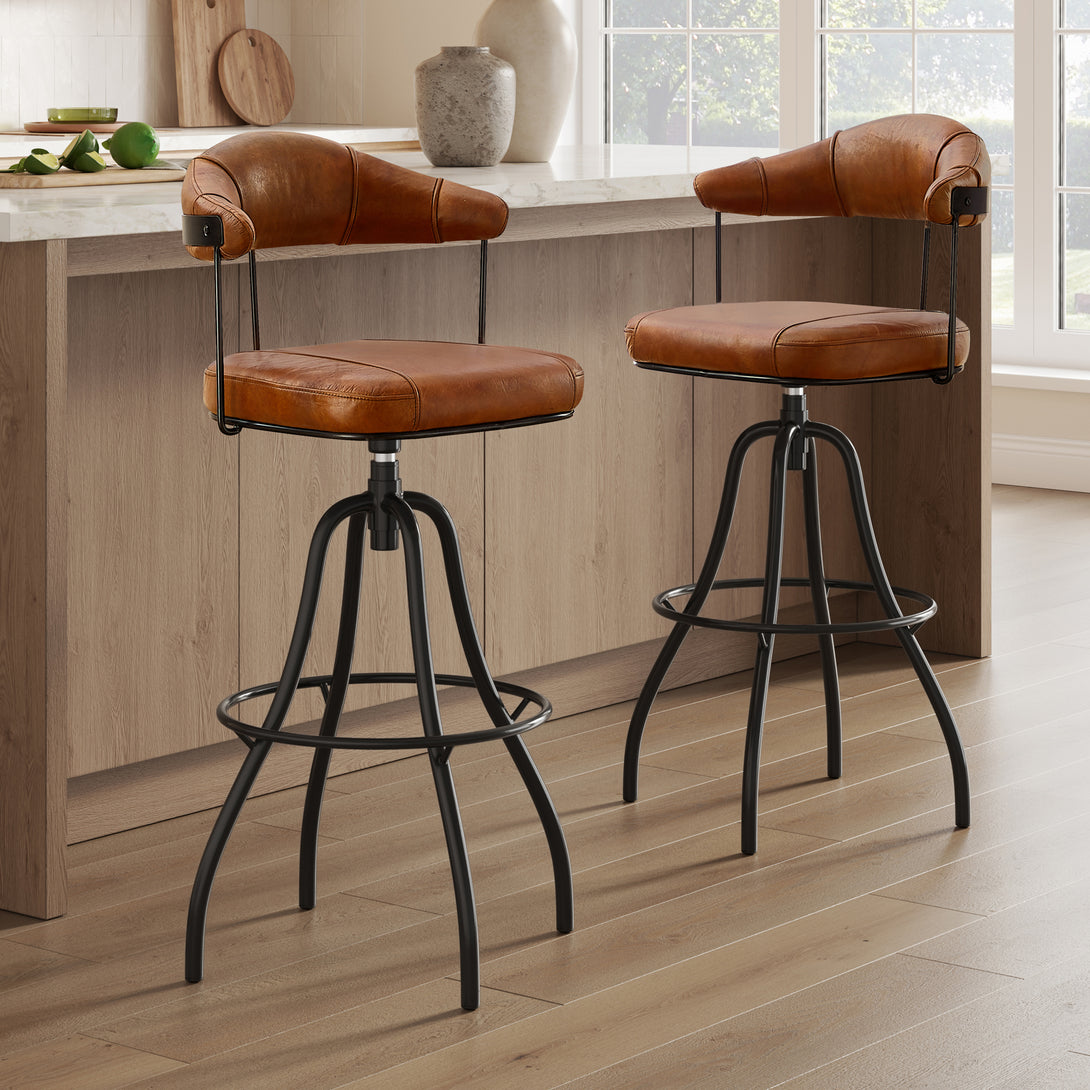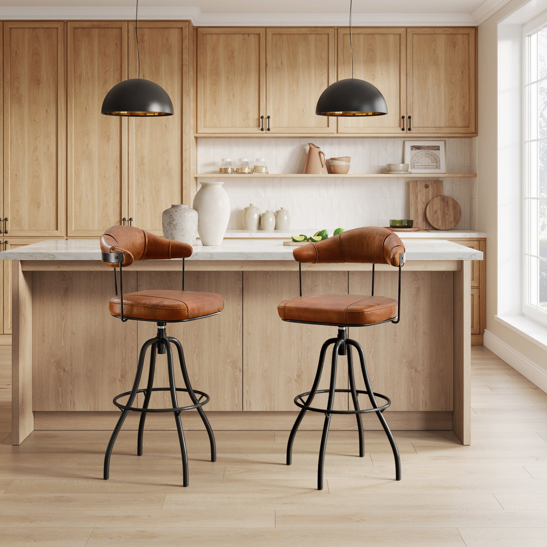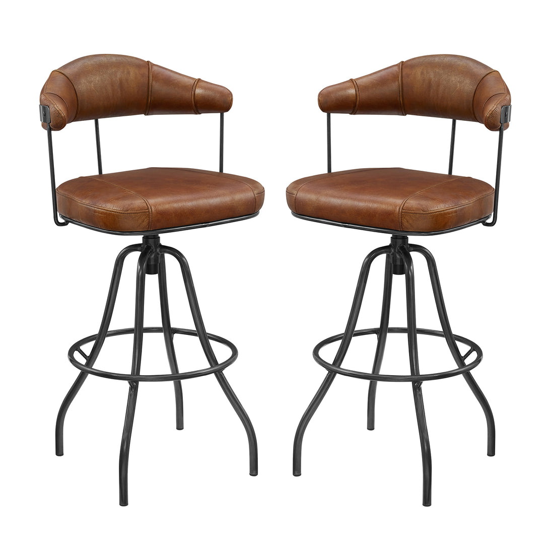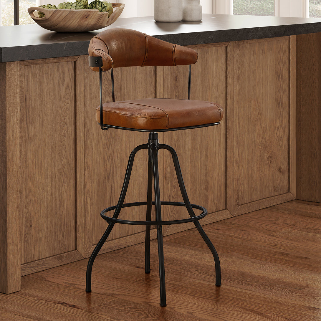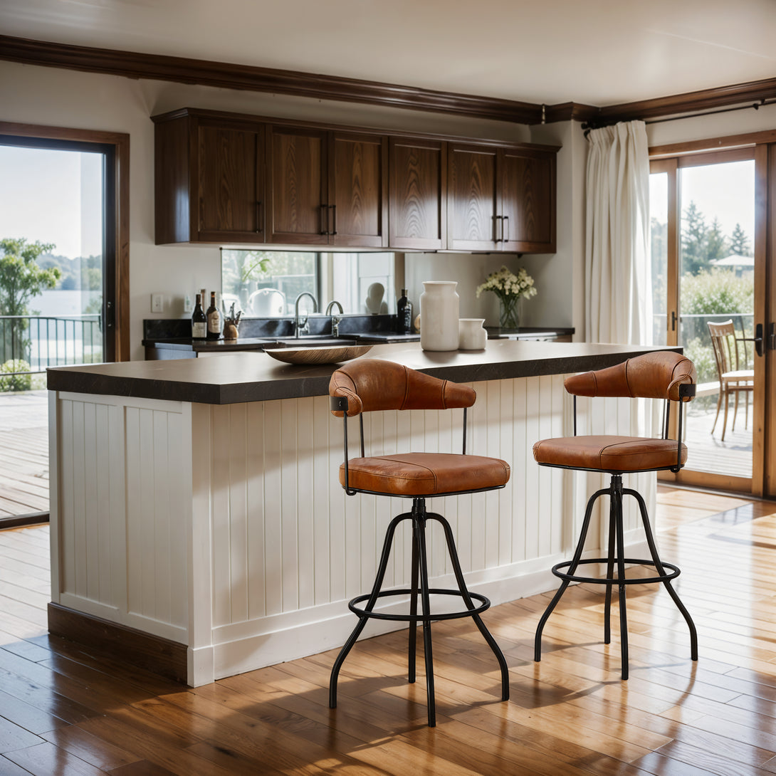 Art Leon Genuine Leather Swivel Bar Stool Industrial Medieval Design with Cutout Backrest