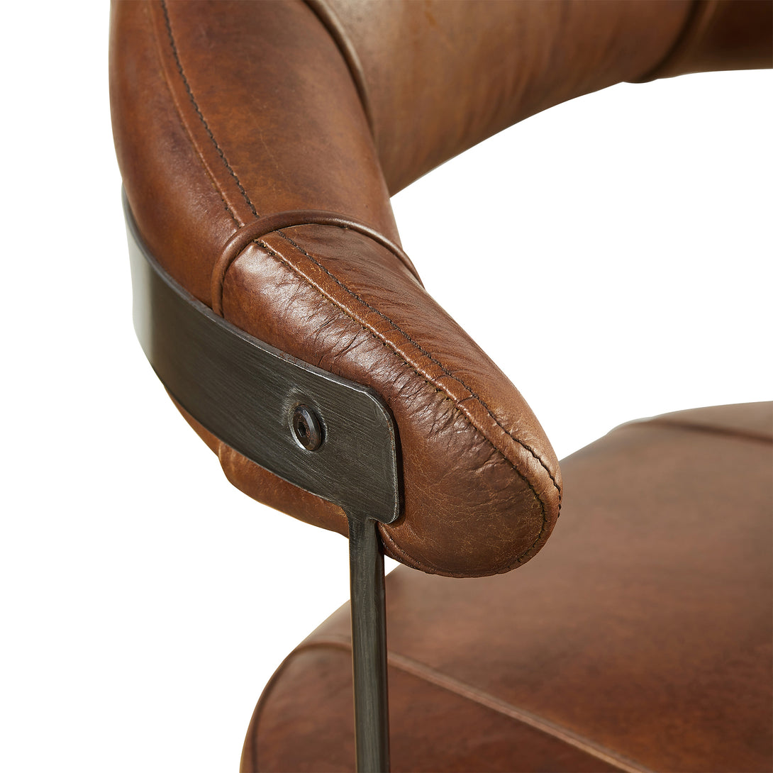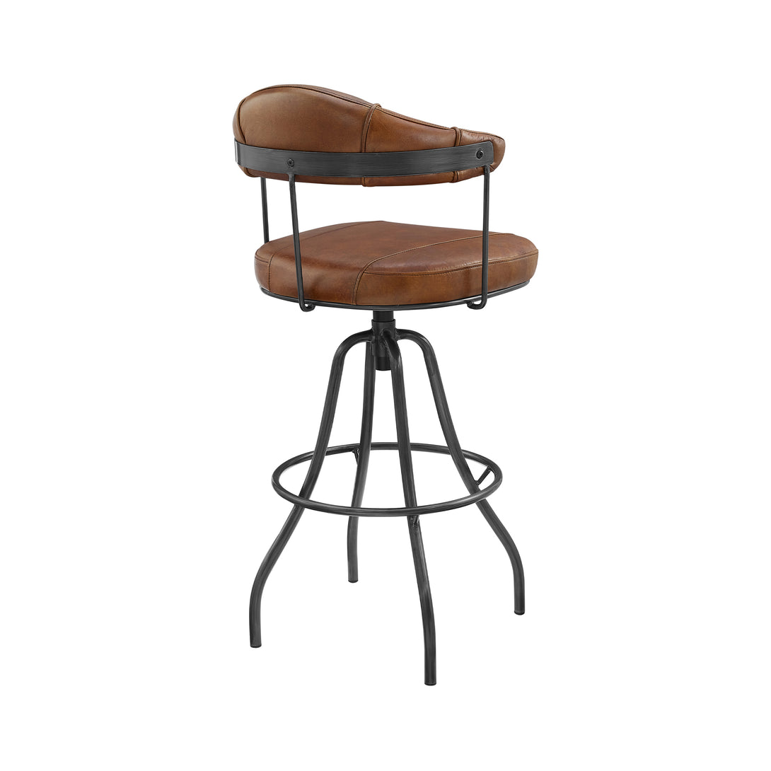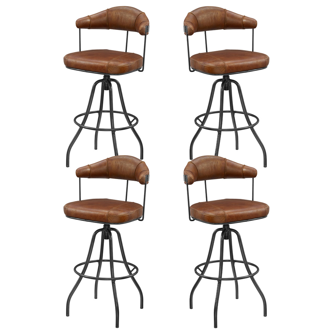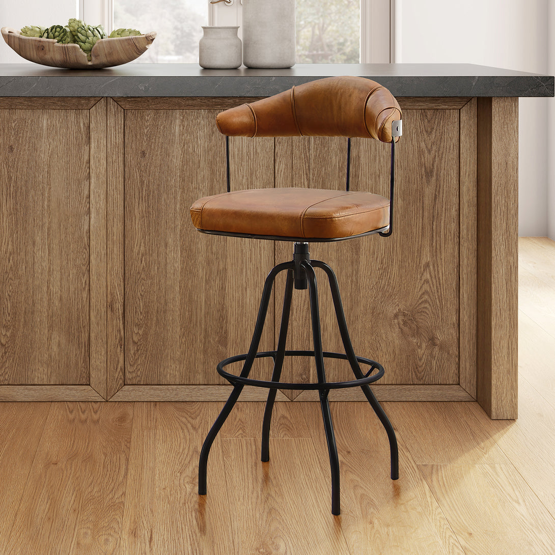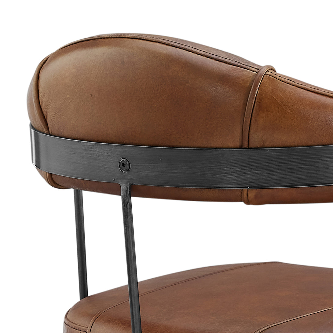 Art Leon Genuine Leather Swivel Bar Stool Industrial Medieval Design with Cutout Backrest
