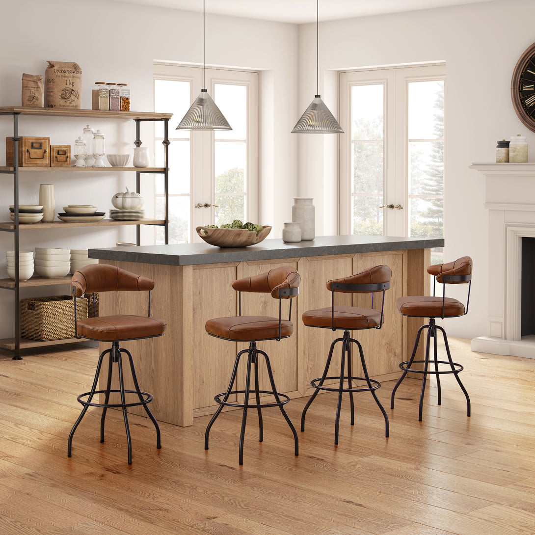 Are you a fan of industrial design? The Art Leon Swivel Bar Stool is designed for you. With its premium genuine leather and unique medieval design, this bar stool is a statement piece that will elevate any space. Whether using it in your home or commercial setting, this Counter Stool will impress!