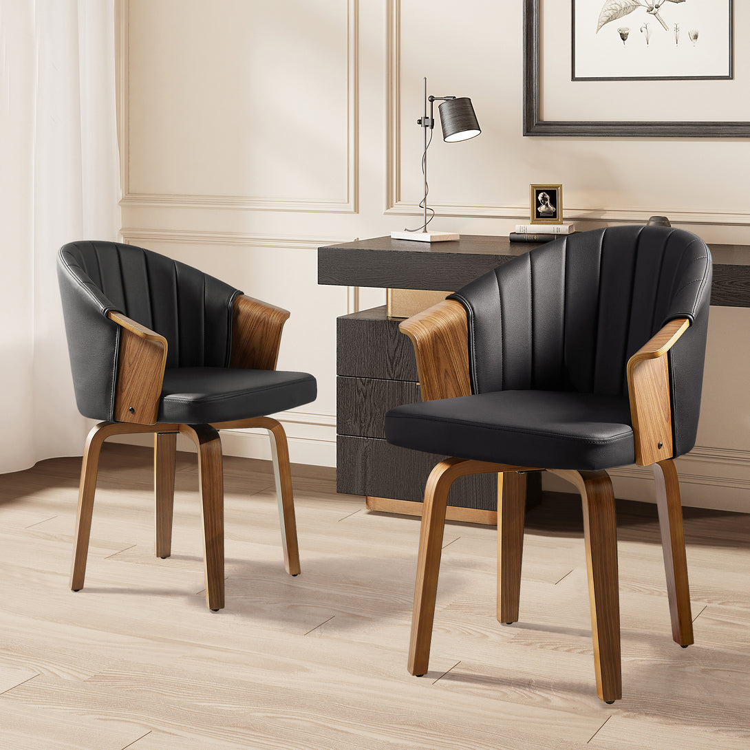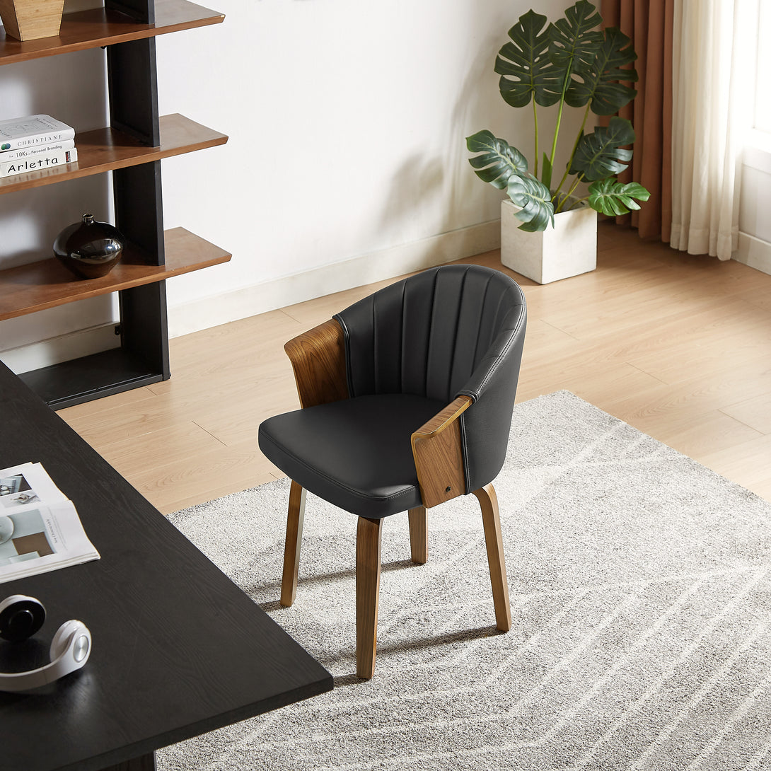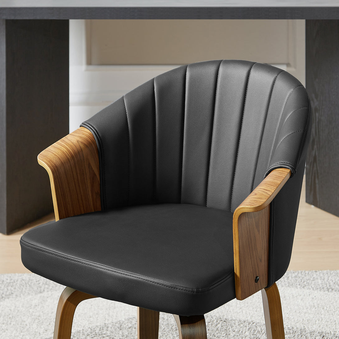 Infuse your workspace with the sophistication of this black/ brown leather desk chair, featuring elegant wood accents, supportive channel stitching, and a sturdy, stylish frame—perfect for elevating your office's comfort and aesthetic.
