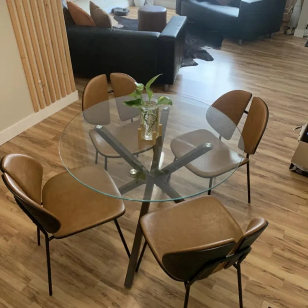 Elevate your dining experience with this contemporary chair, featuring a sturdy black metal frame, adjustable rubber feet for stability, and a sleek design that exudes modern elegance.