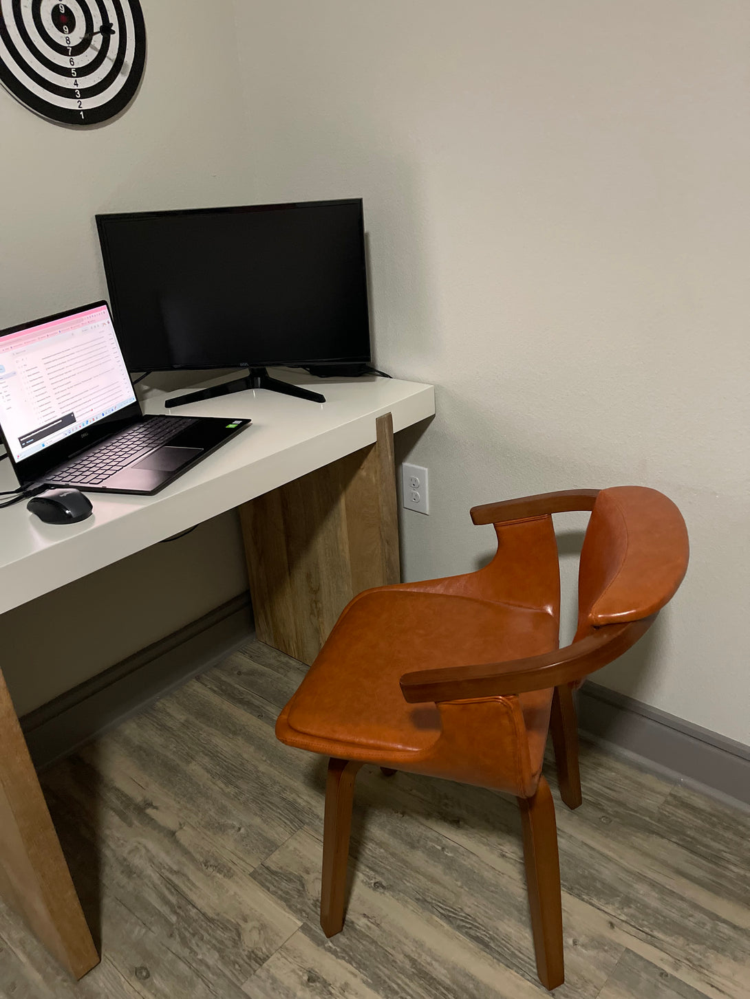 The Art Leon Desk Chair is a modern, mid-century-style office chair with a 360° swivel base, allowing easy movement and versatility in a small space. It has no wheels, making it ideal for living room or bedroom use!