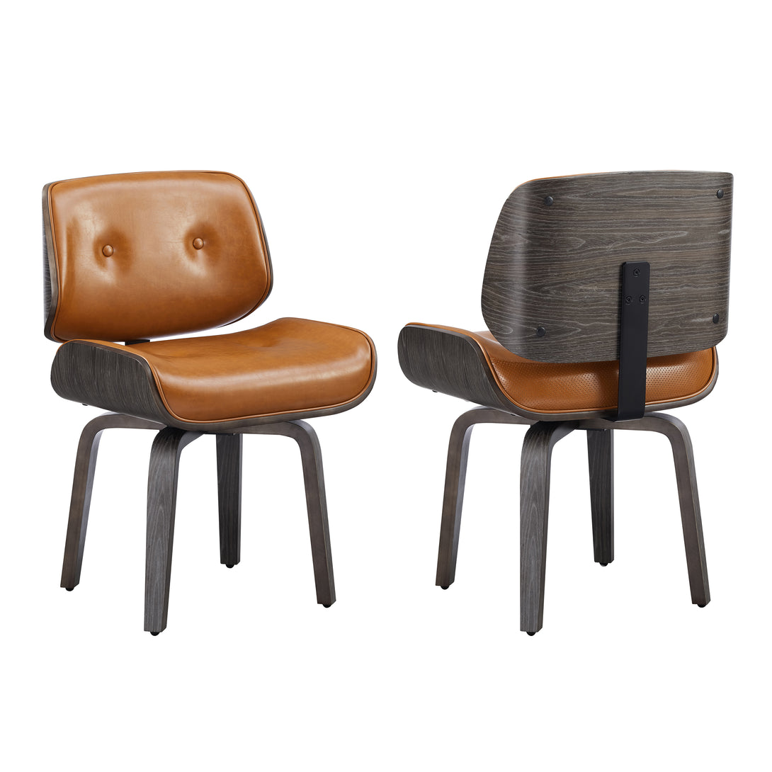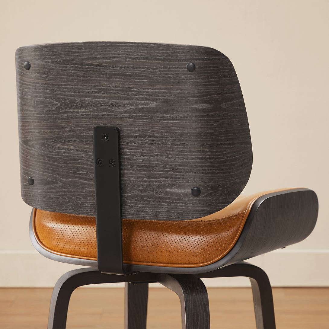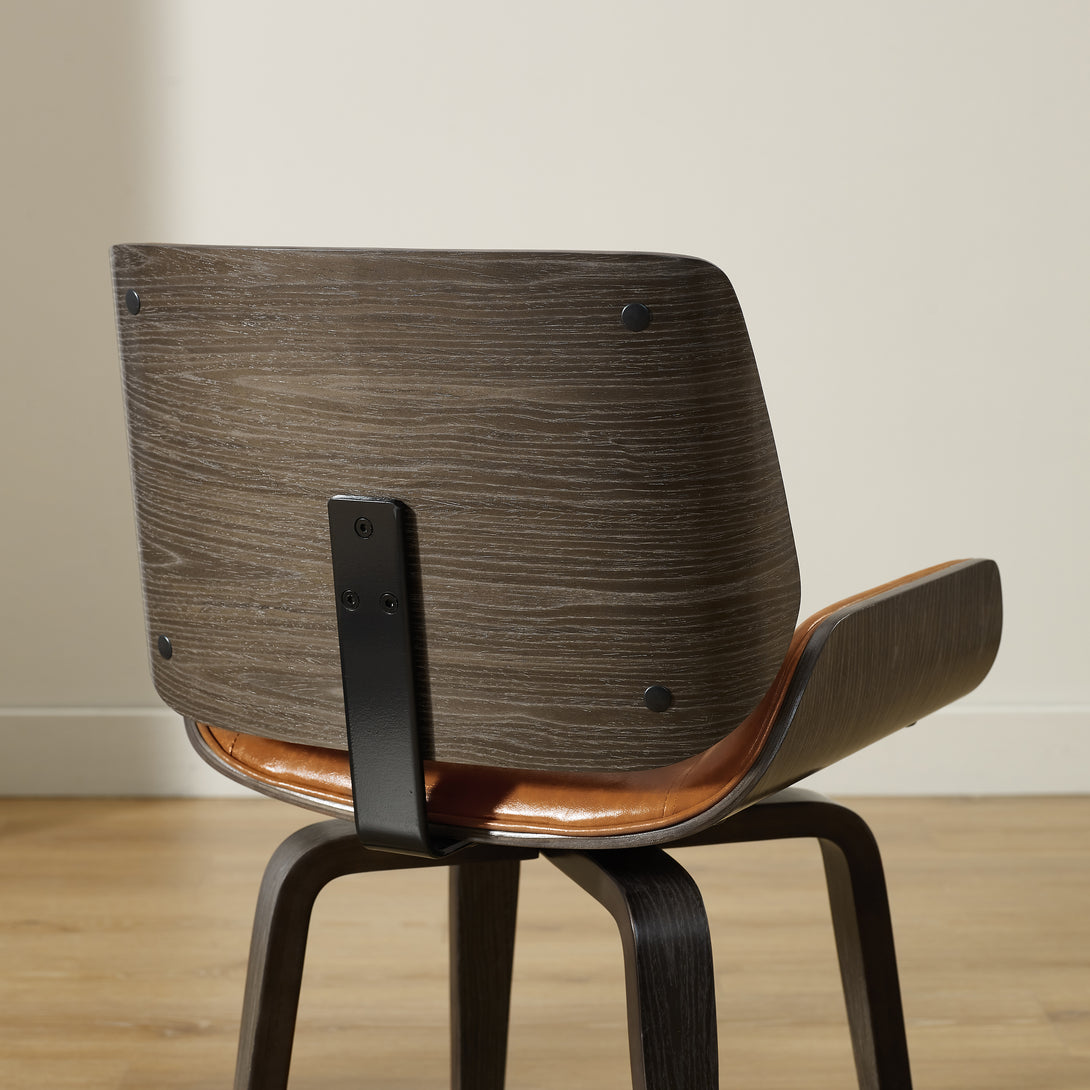 Art Poplar Swivel Desk Chair without Wheels, Leather/ Fabric Upholstery and Bentwood Craftsmanship