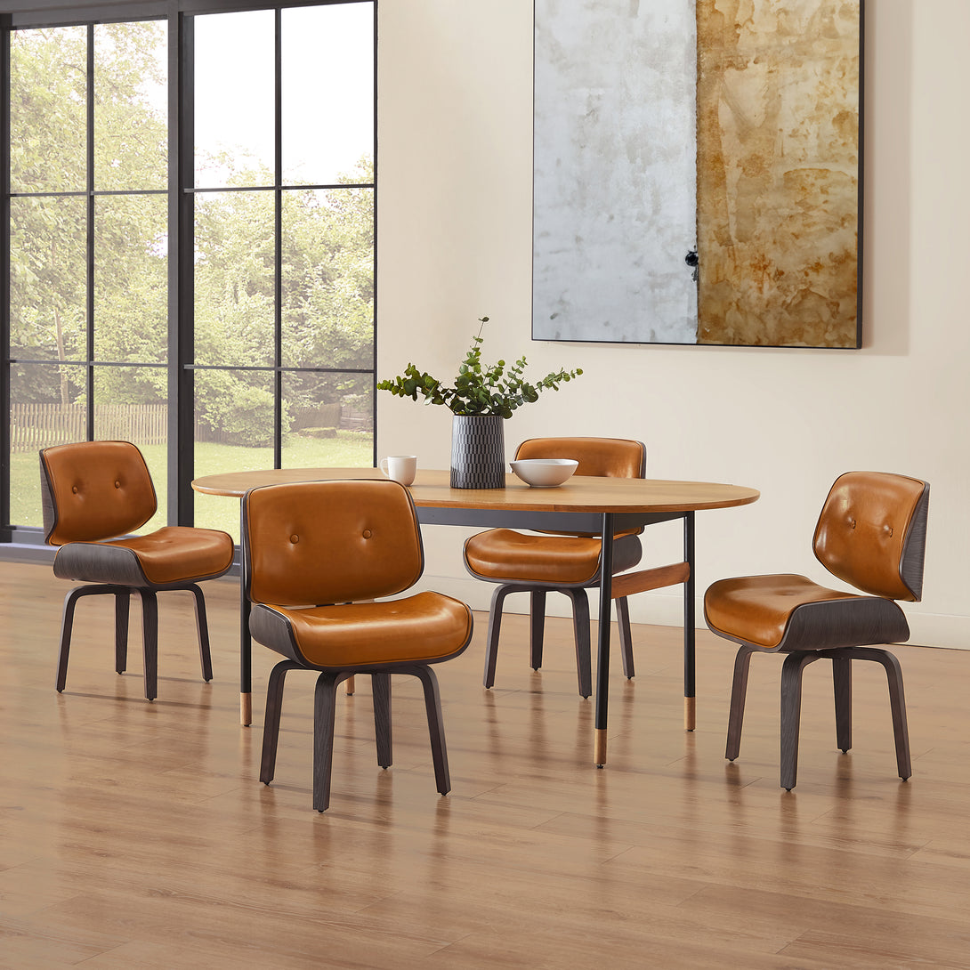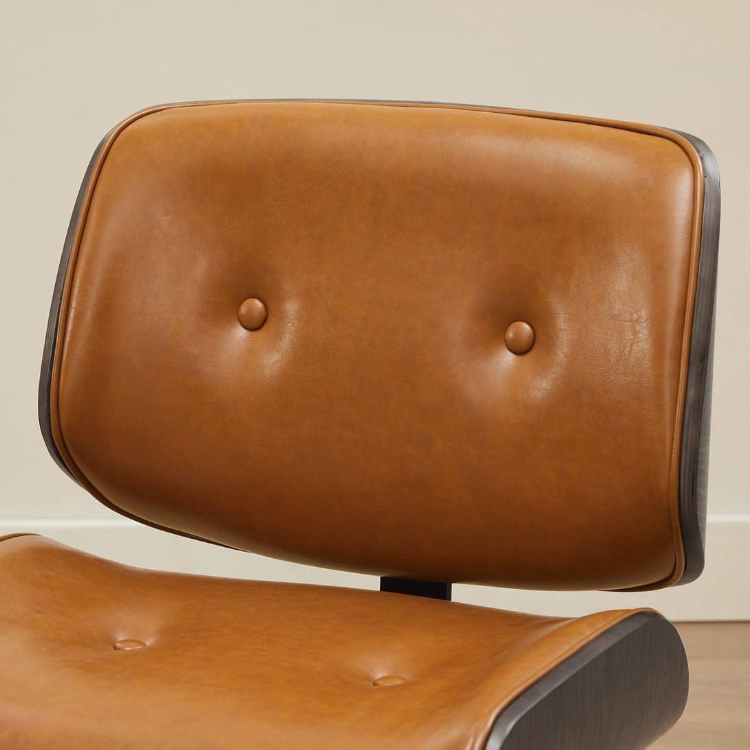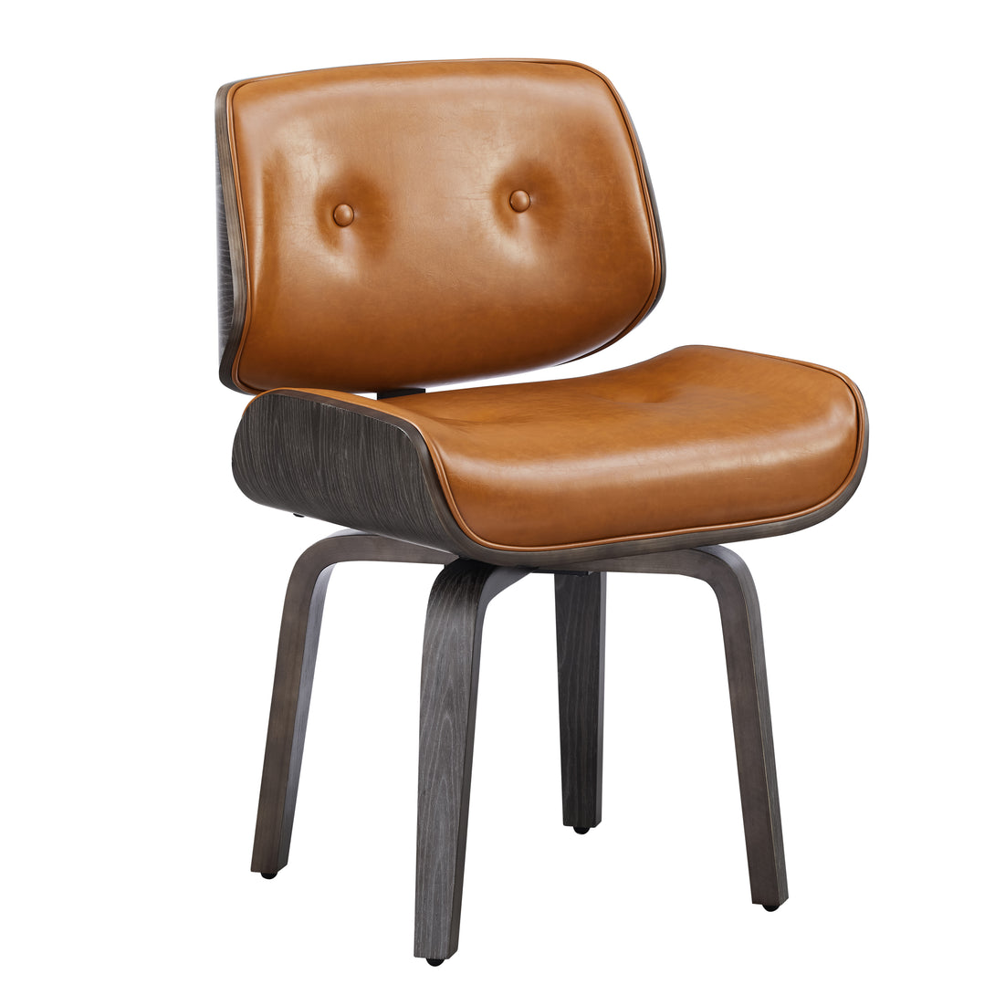 Art Poplar Swivel Desk Chair without Wheels, Leather/ Fabric Upholstery and Bentwood Craftsmanship