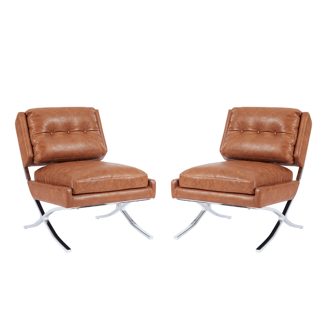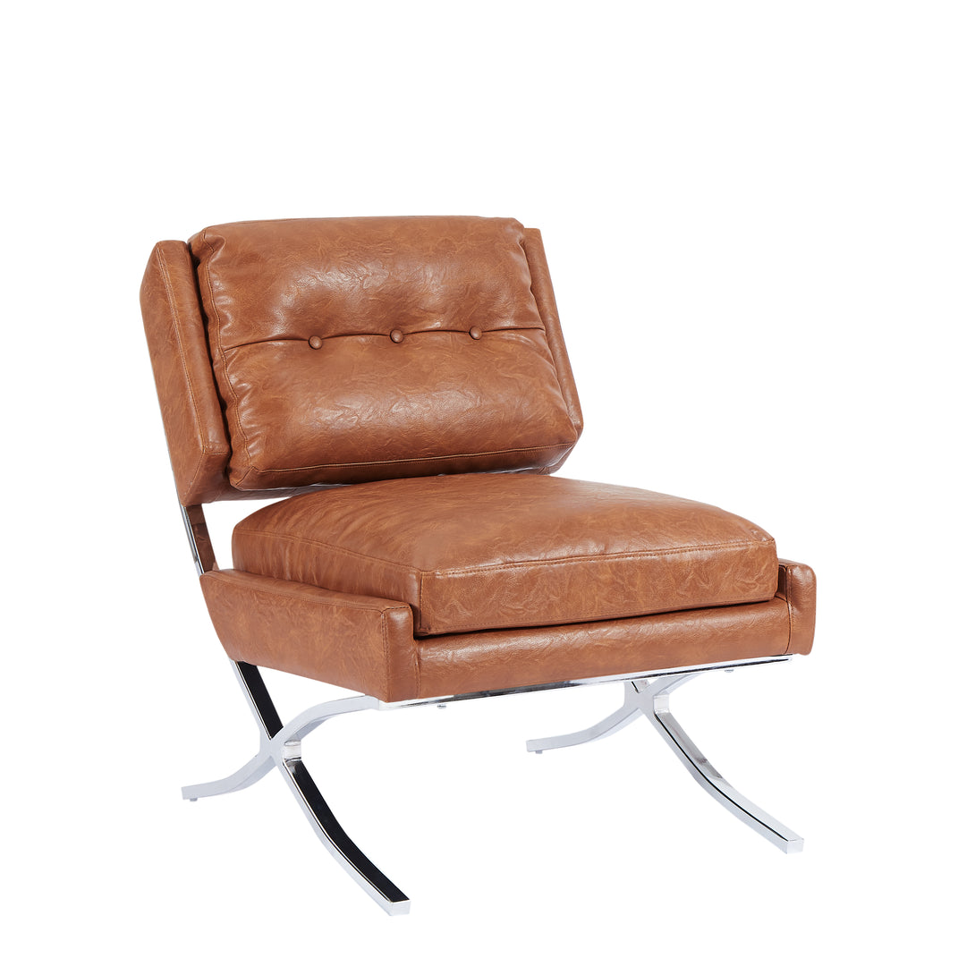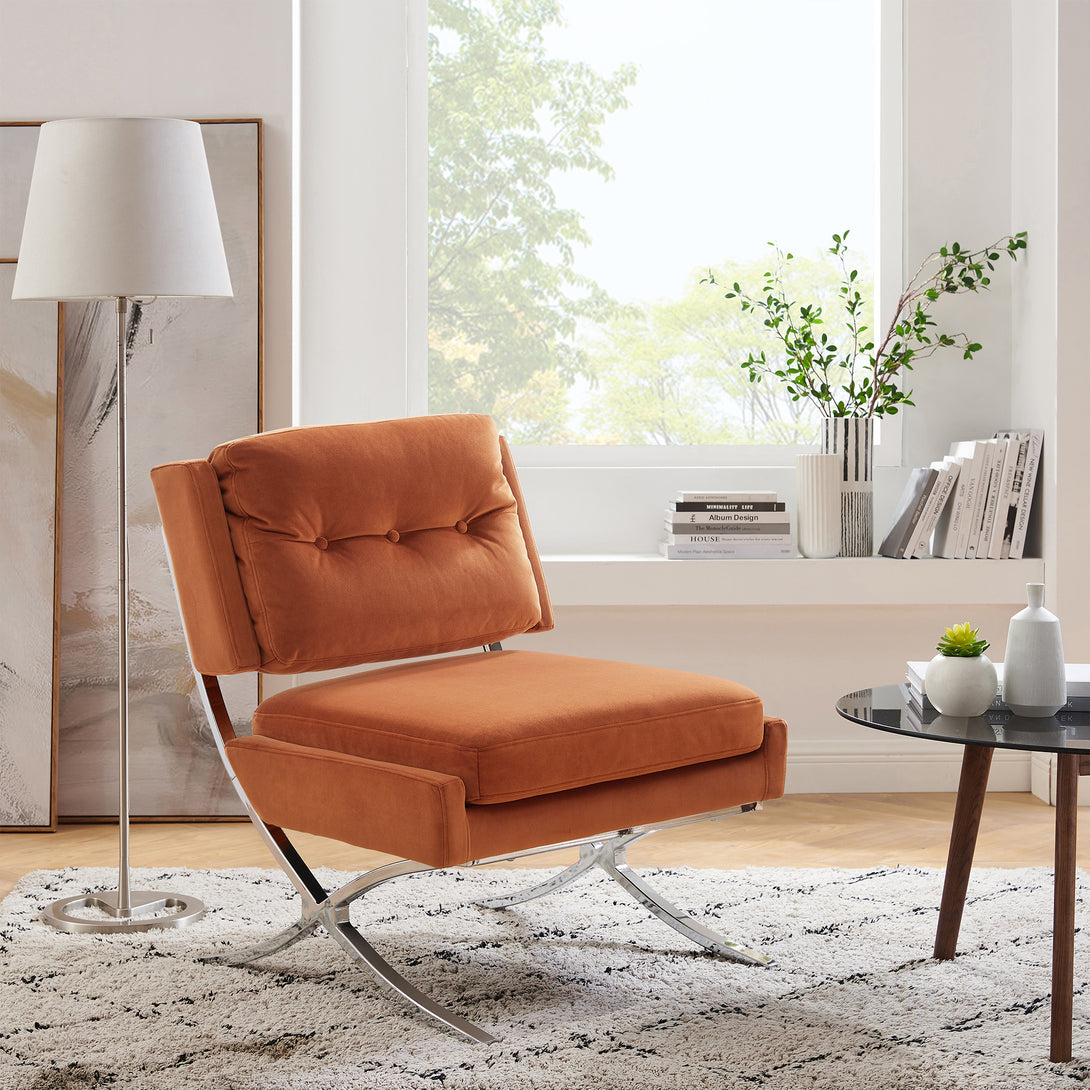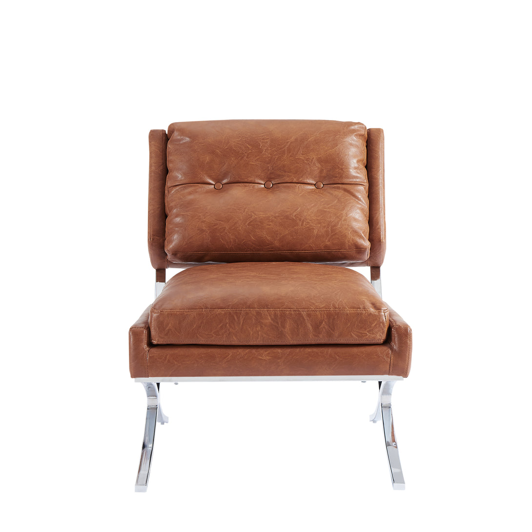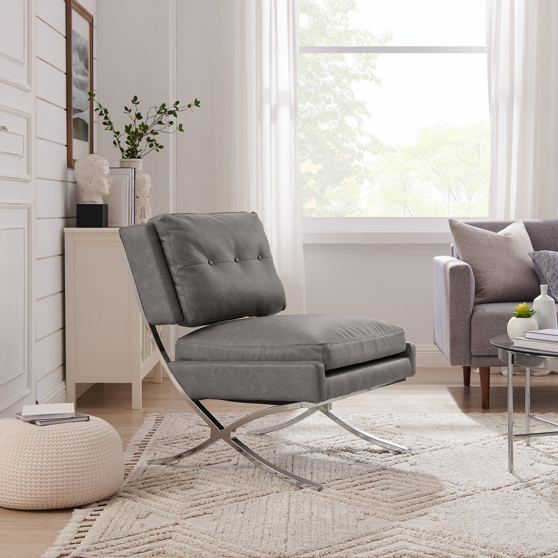 Art Leon Tufted Leather/ Velvet Upholstered Accent Slipper Chair with Cross Metal Base, Armless Design