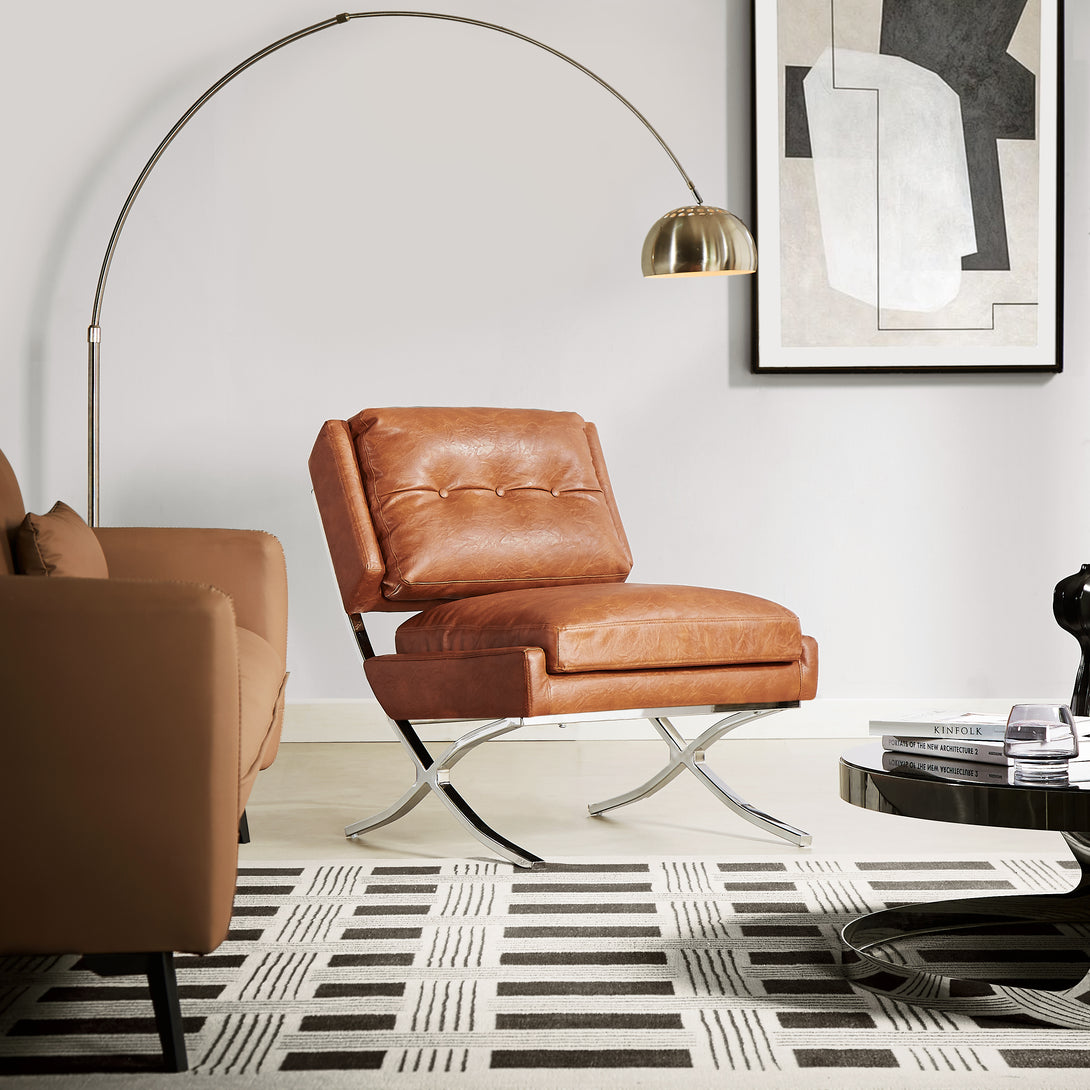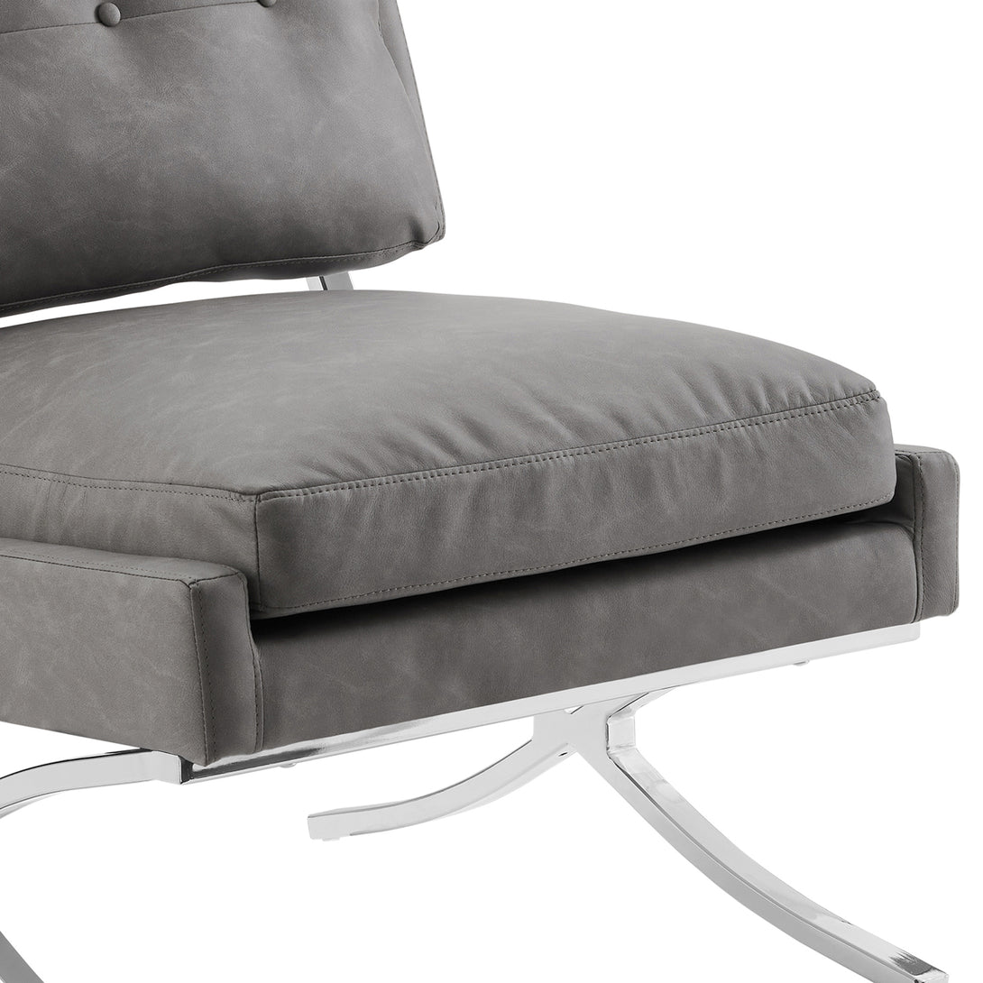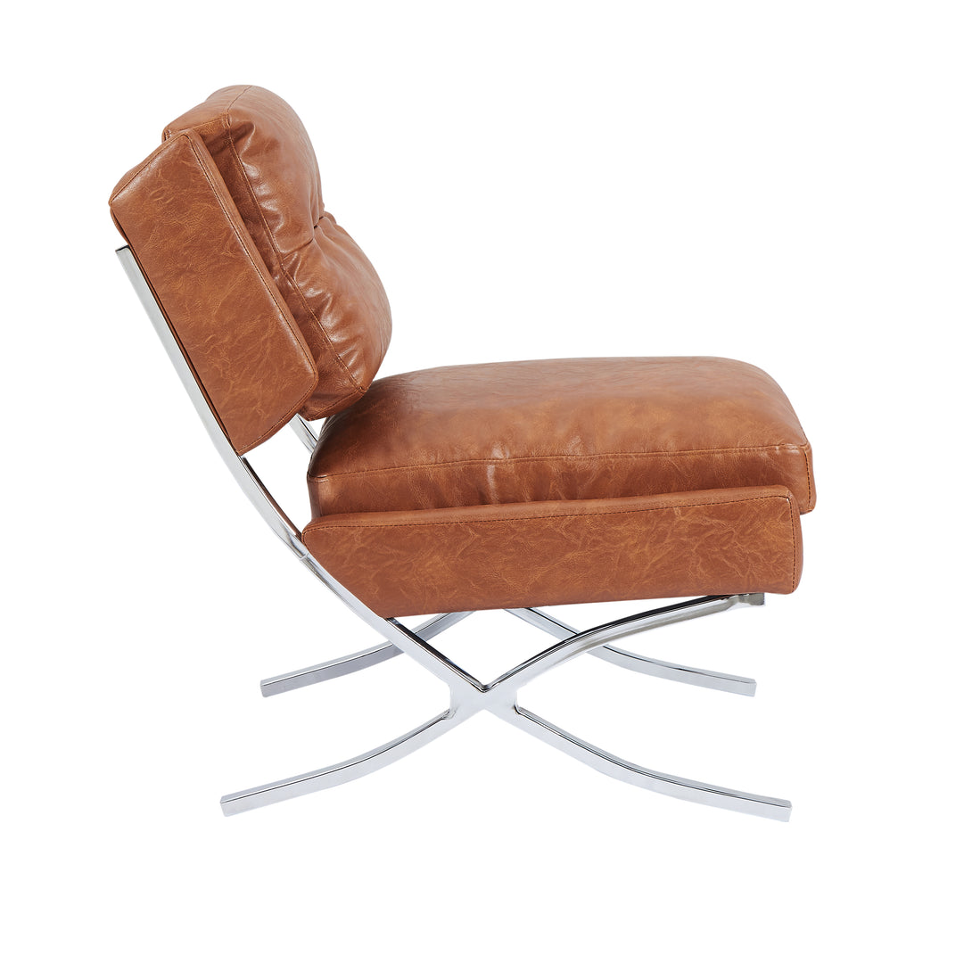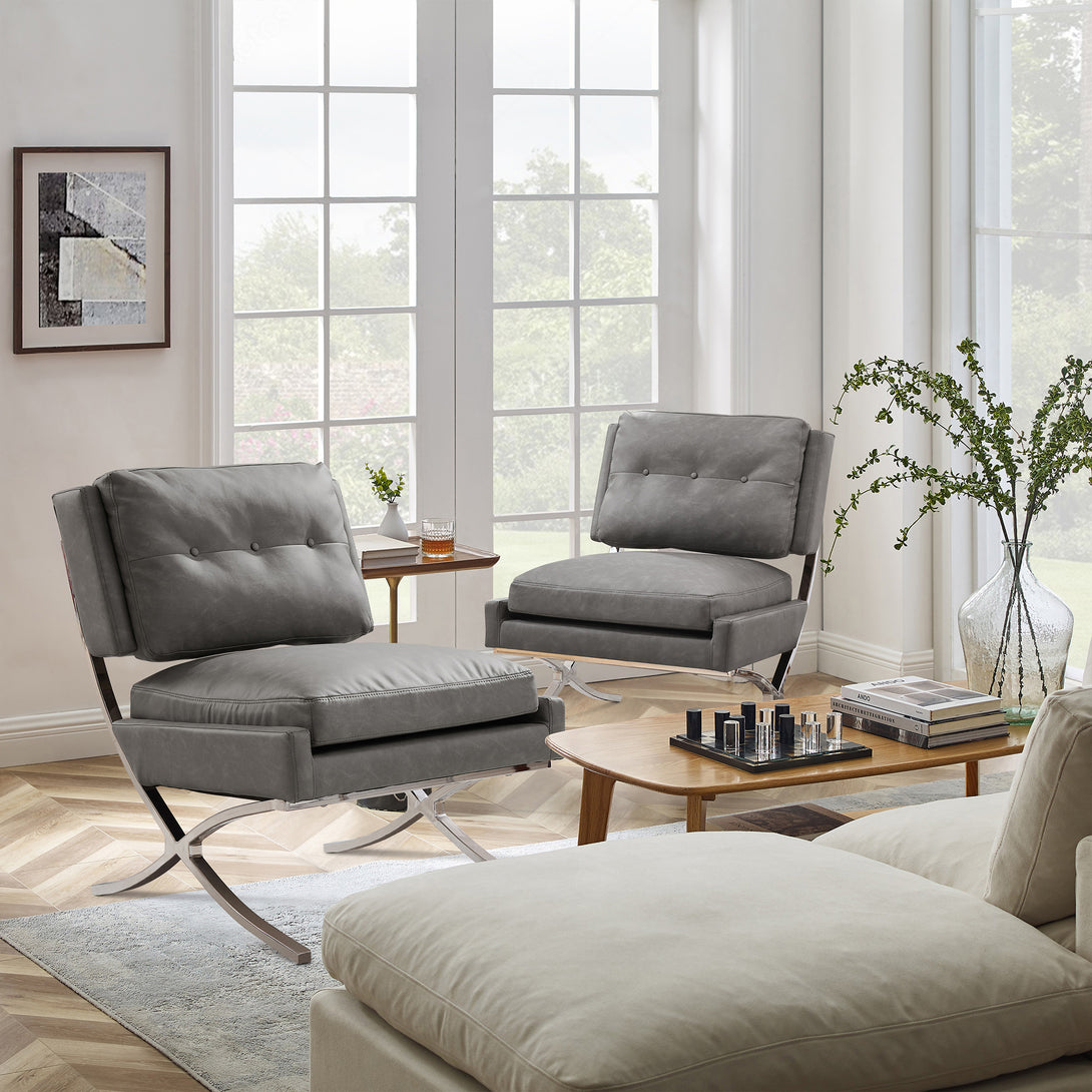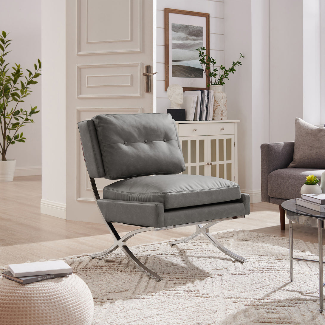 Art Leon Tufted Leather/ Velvet Upholstered Accent Slipper Chair with Cross Metal Base, Armless Design