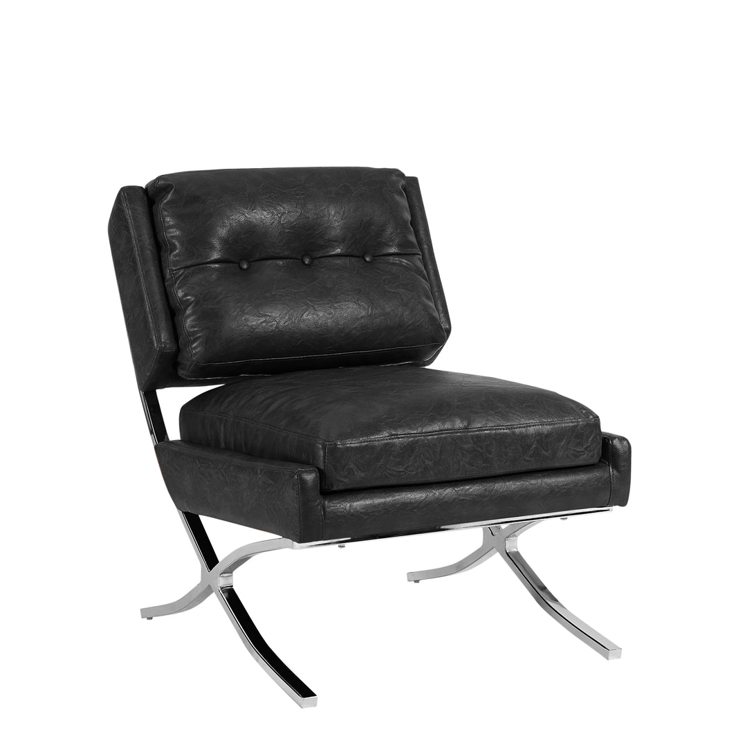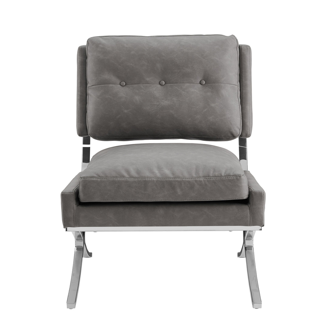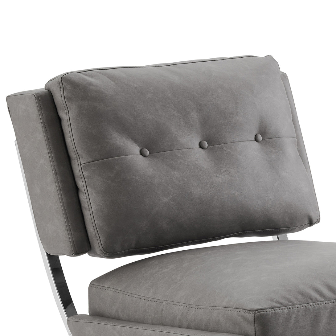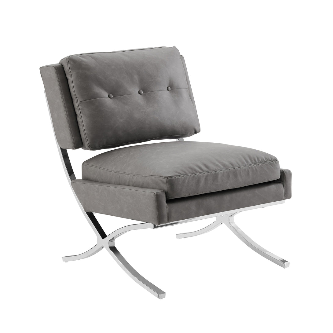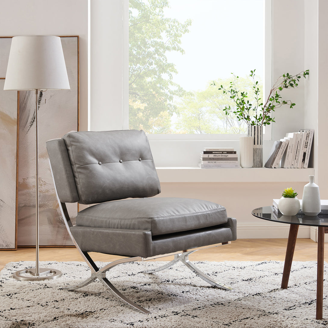 Art Leon Tufted Leather/ Velvet Upholstered Accent Slipper Chair with Cross Metal Base, Armless Design