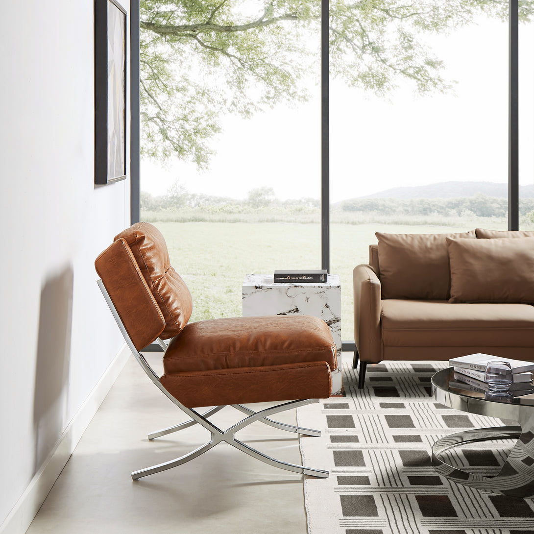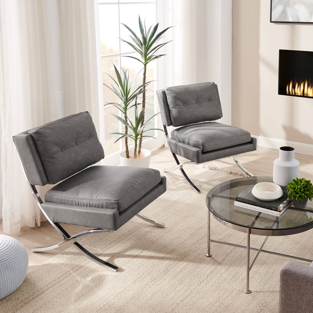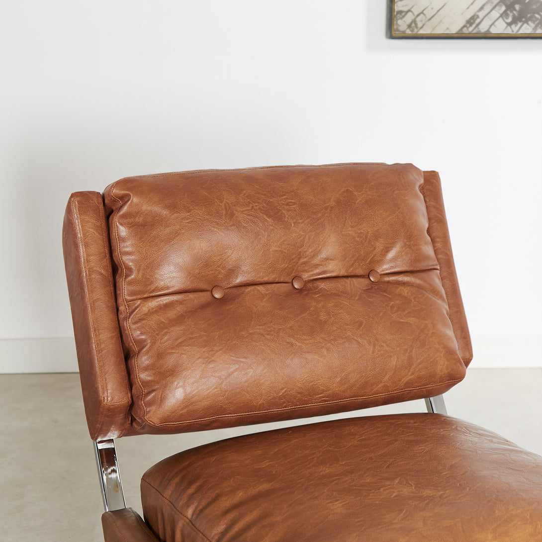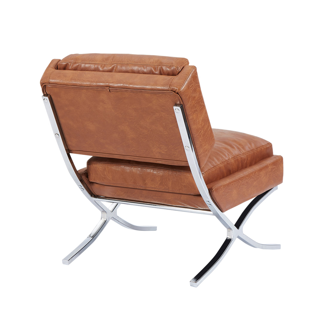 Art Leon Tufted Leather/ Velvet Upholstered Accent Slipper Chair with Cross Metal Base, Armless Design