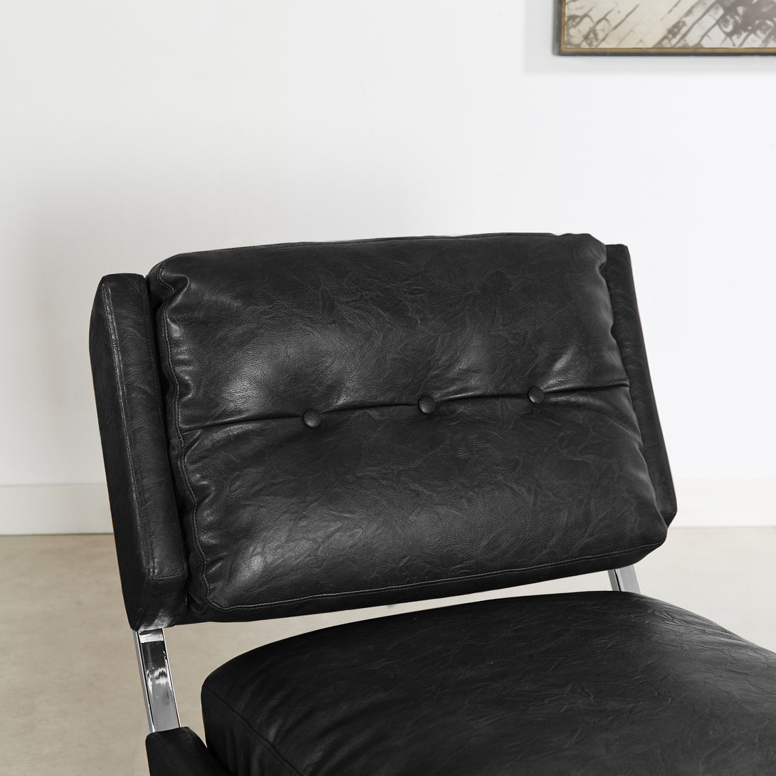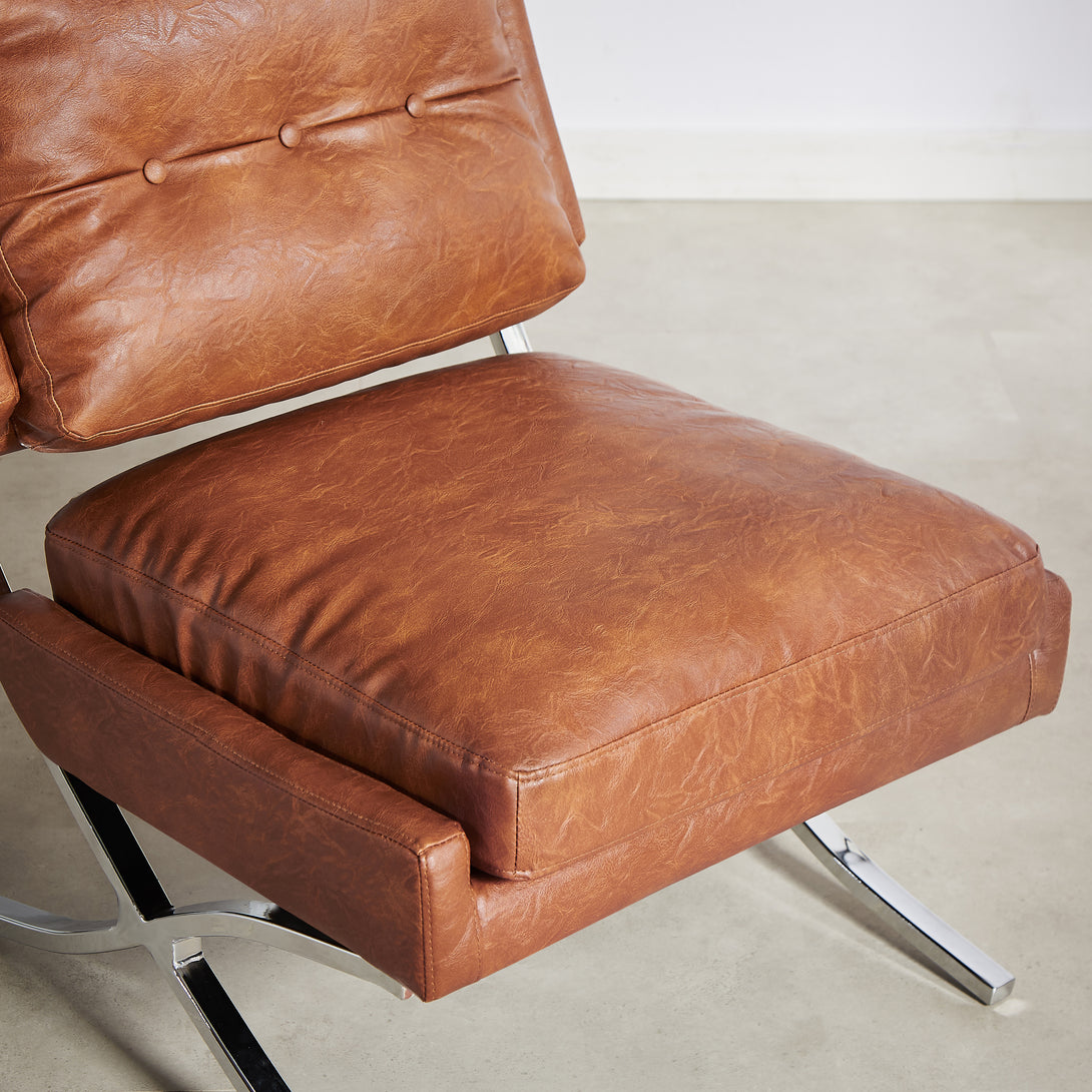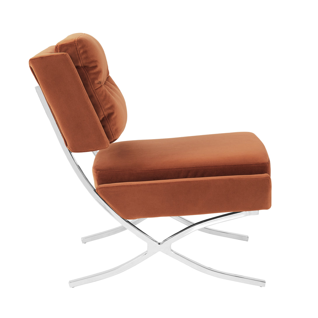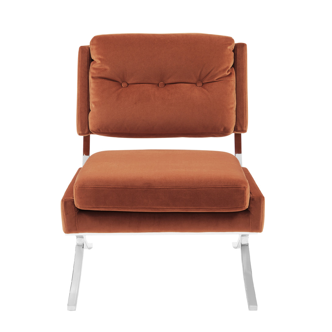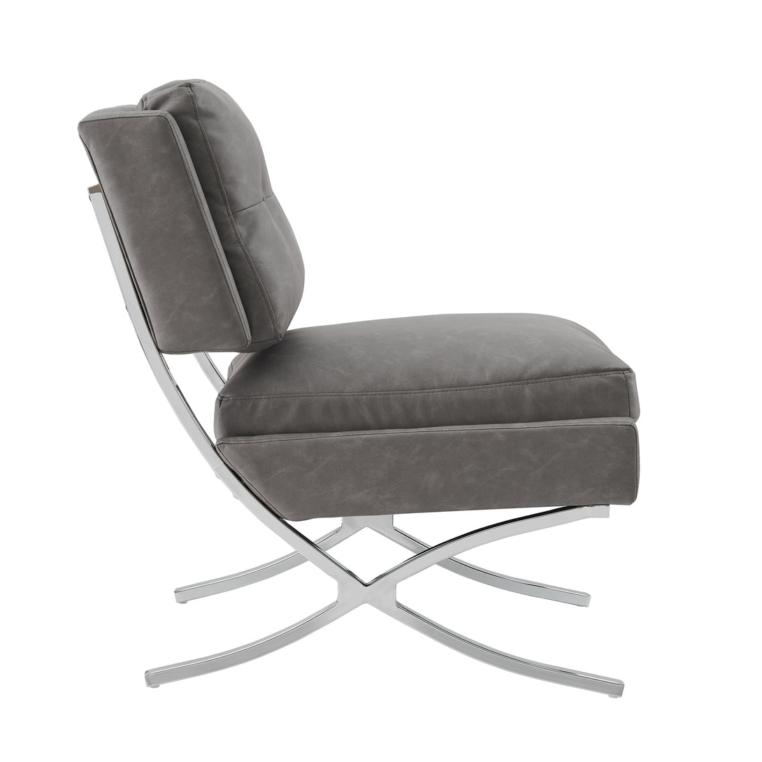 Art Leon Tufted Leather/ Velvet Upholstered Accent Slipper Chair with Cross Metal Base, Armless Design