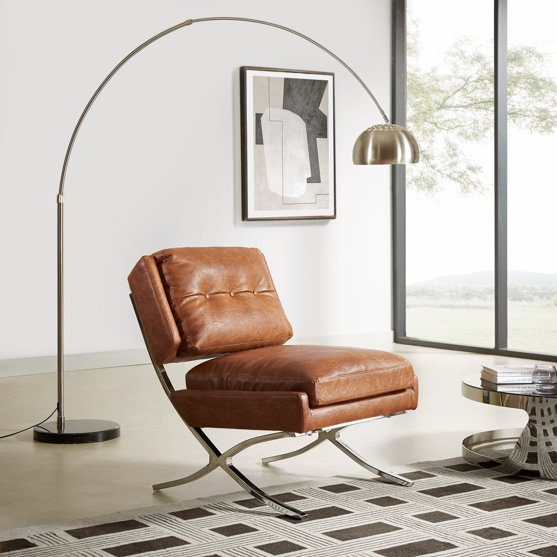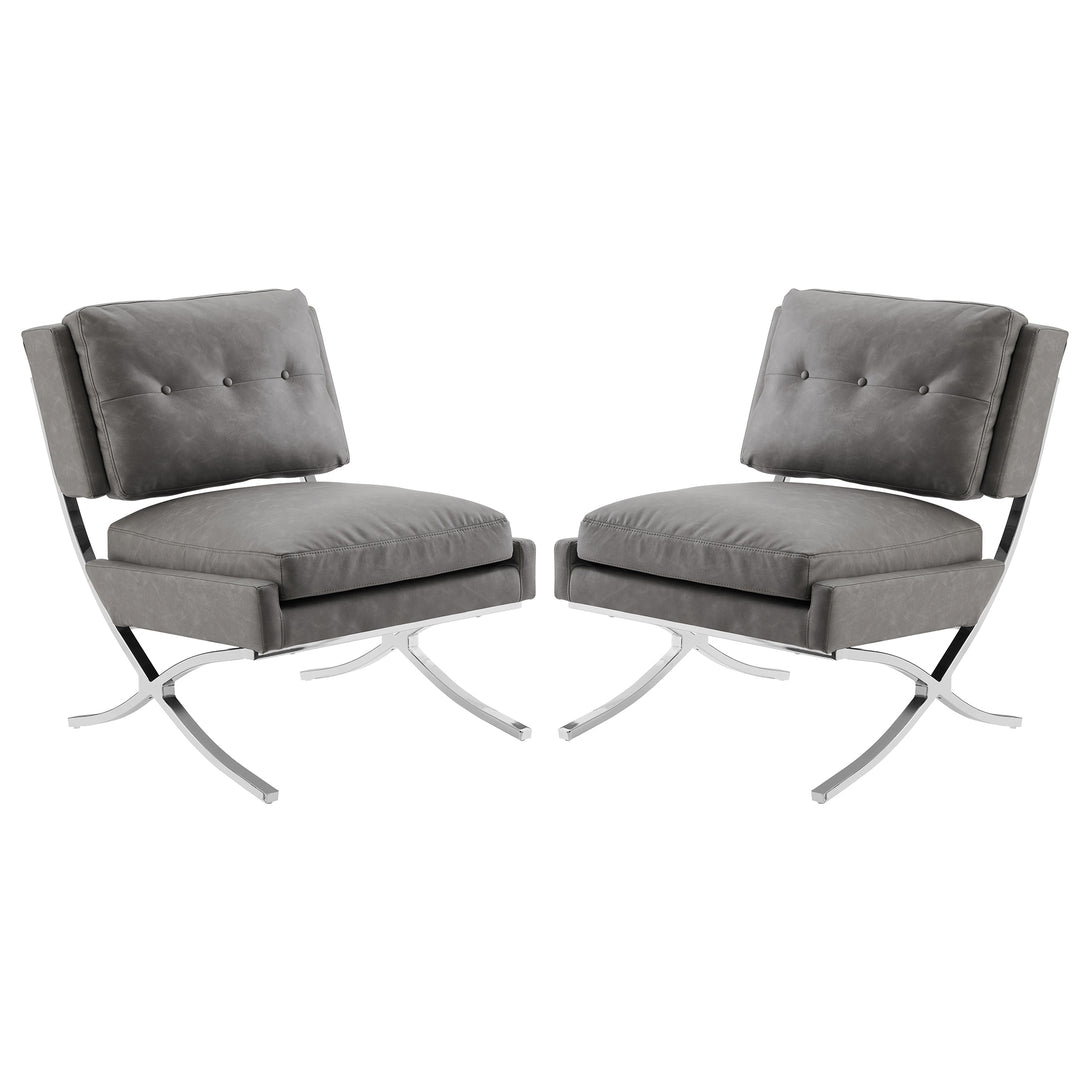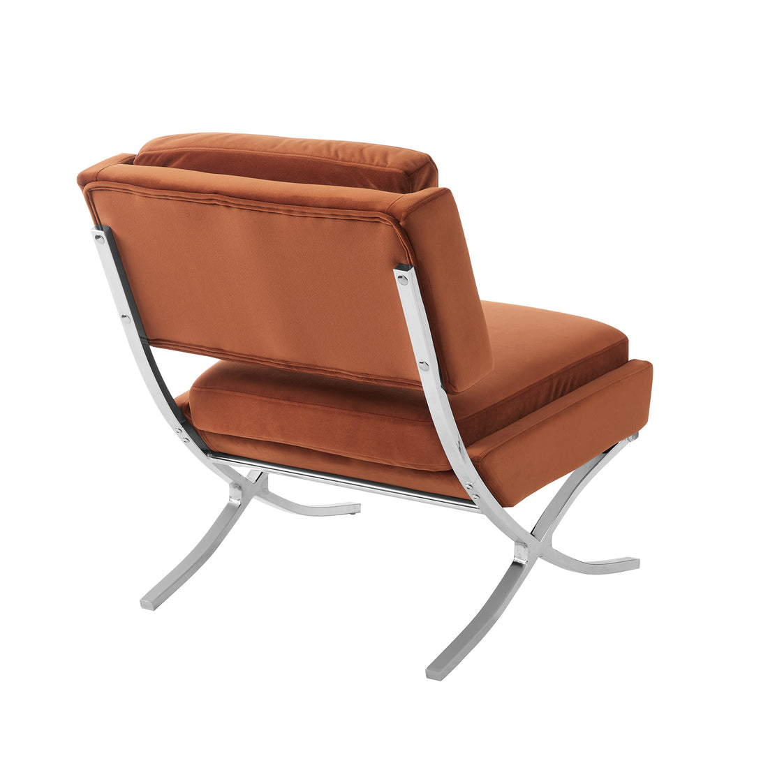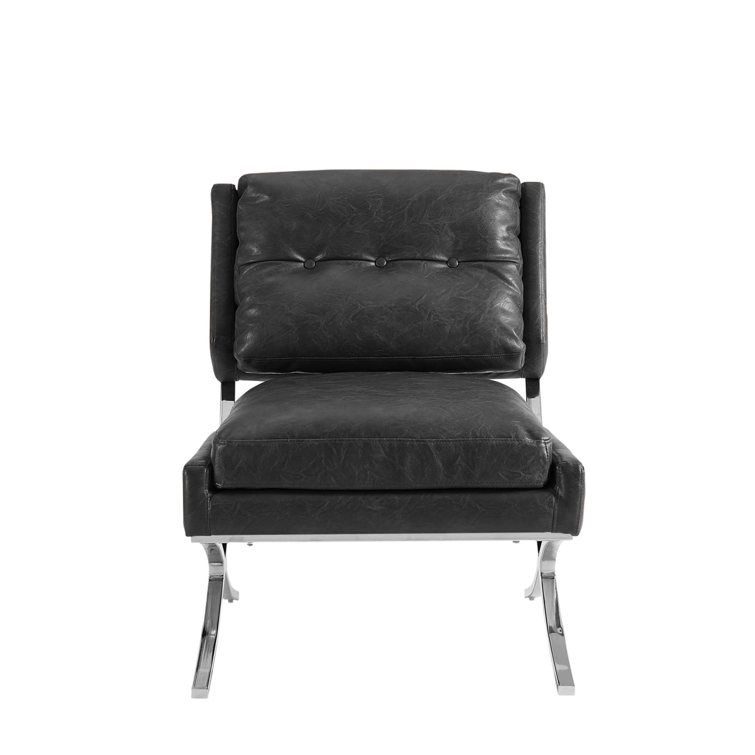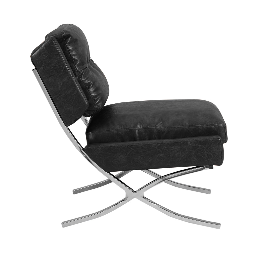 Art Leon Tufted Leather/ Velvet Upholstered Accent Slipper Chair with Cross Metal Base, Armless Design