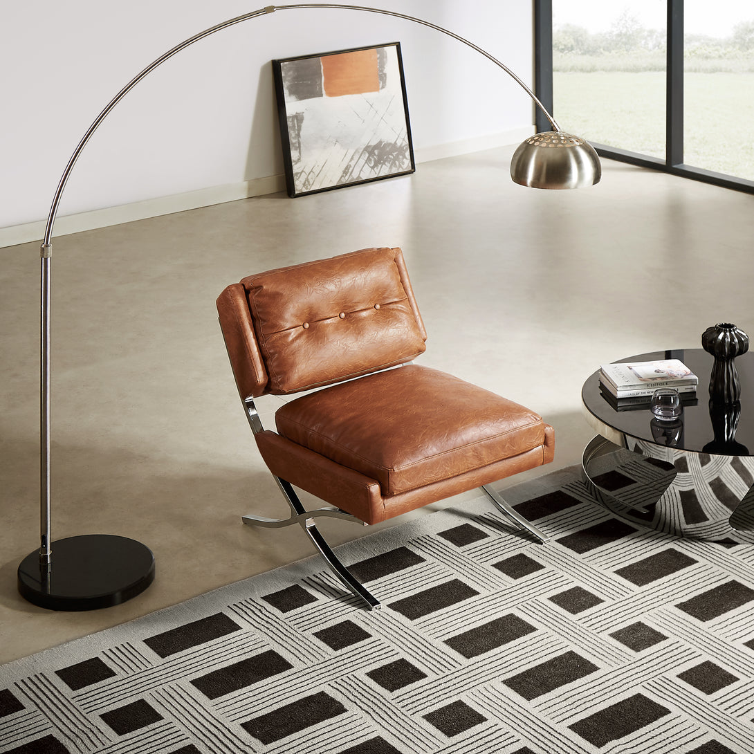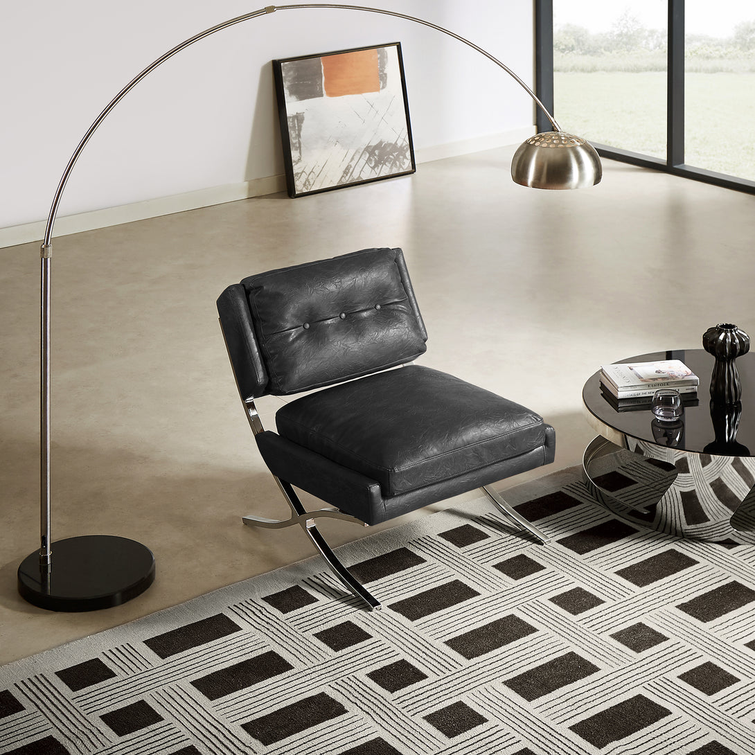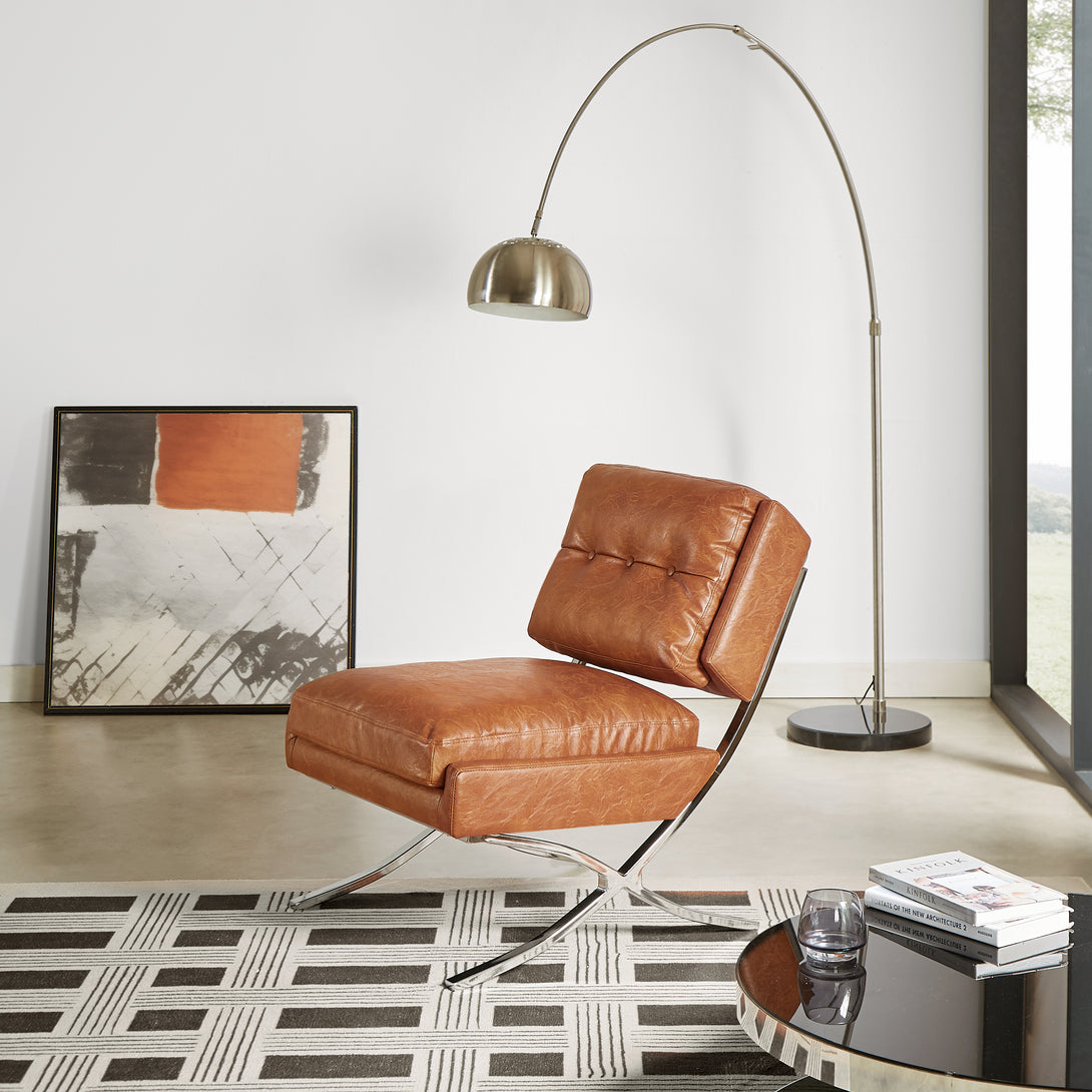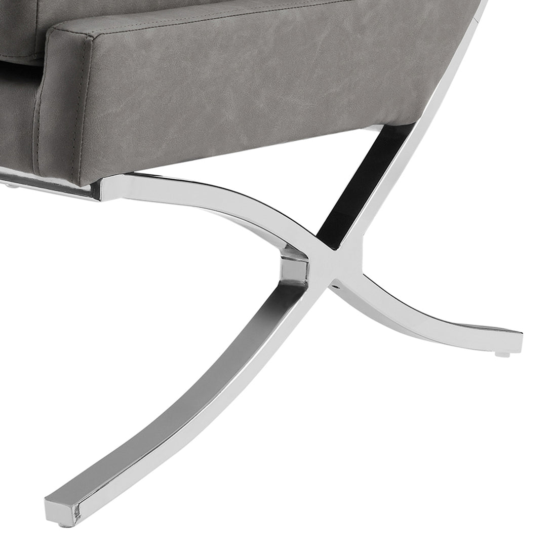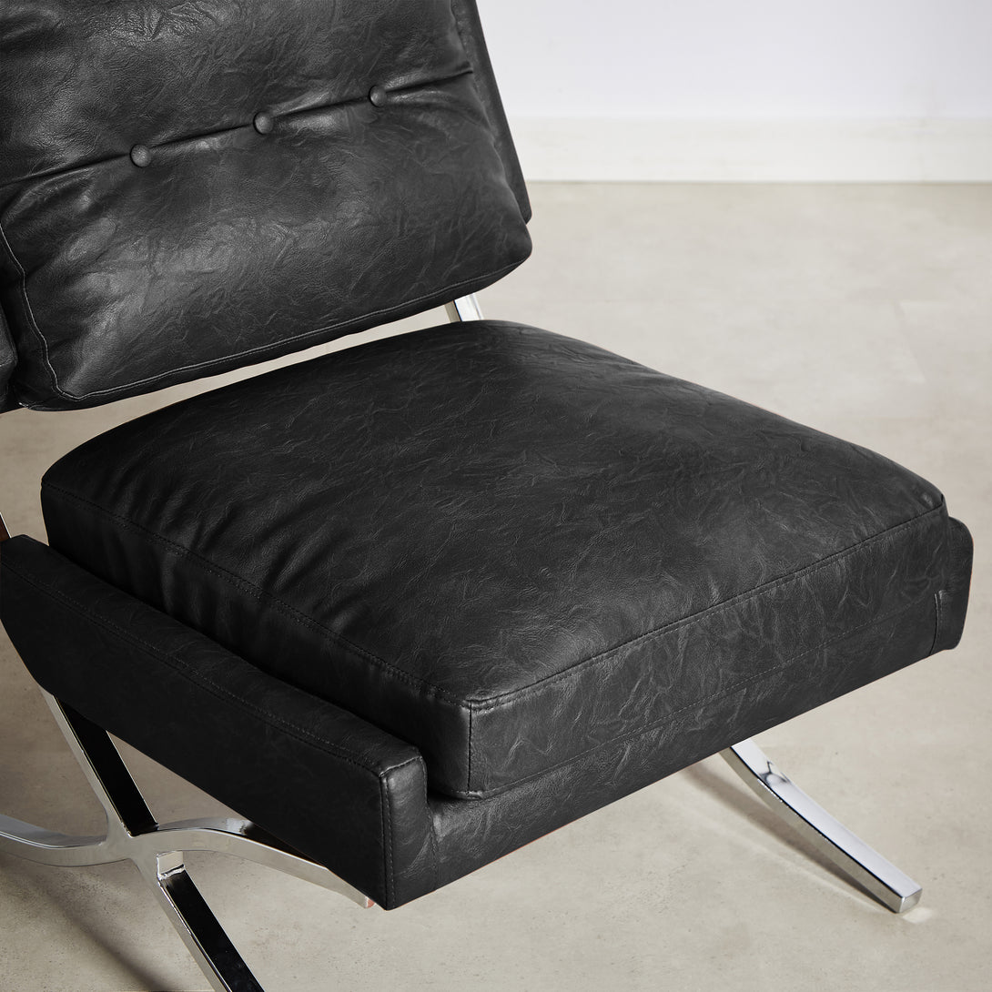 Art Leon Tufted Leather/ Velvet Upholstered Accent Slipper Chair with Cross Metal Base, Armless Design