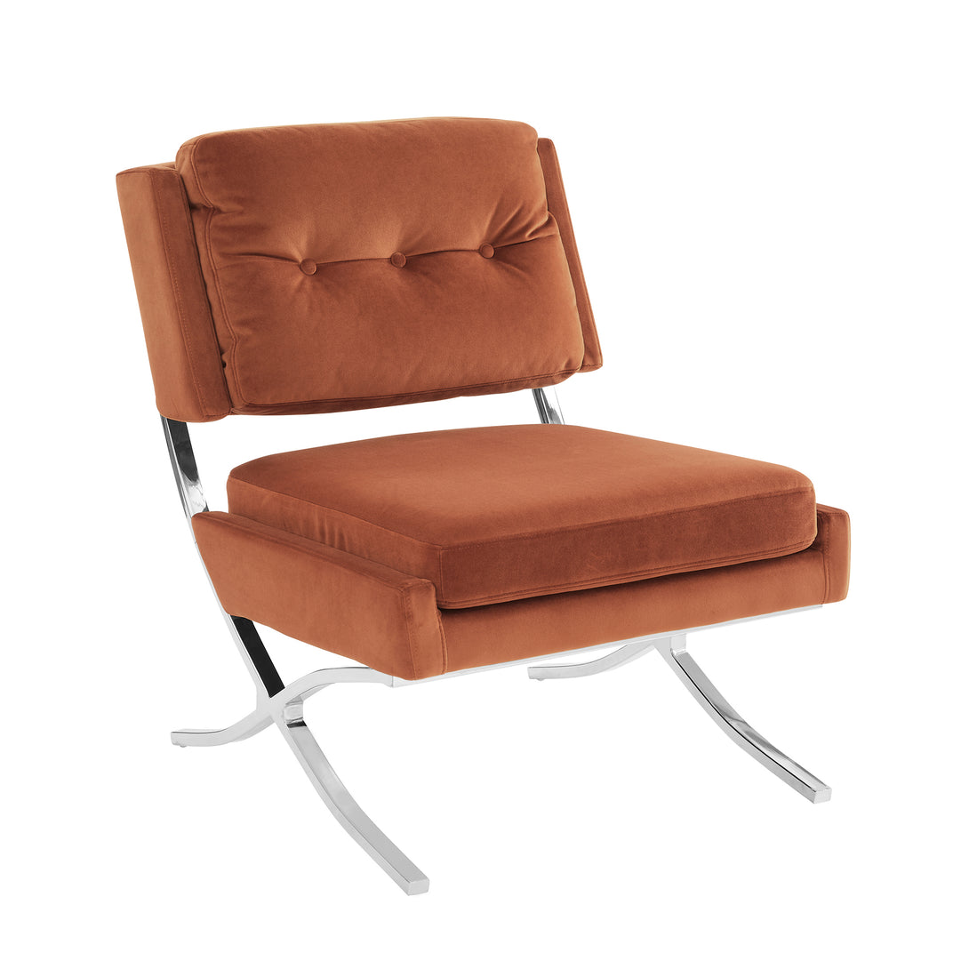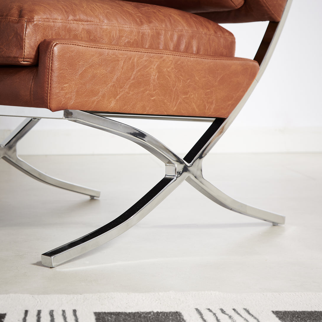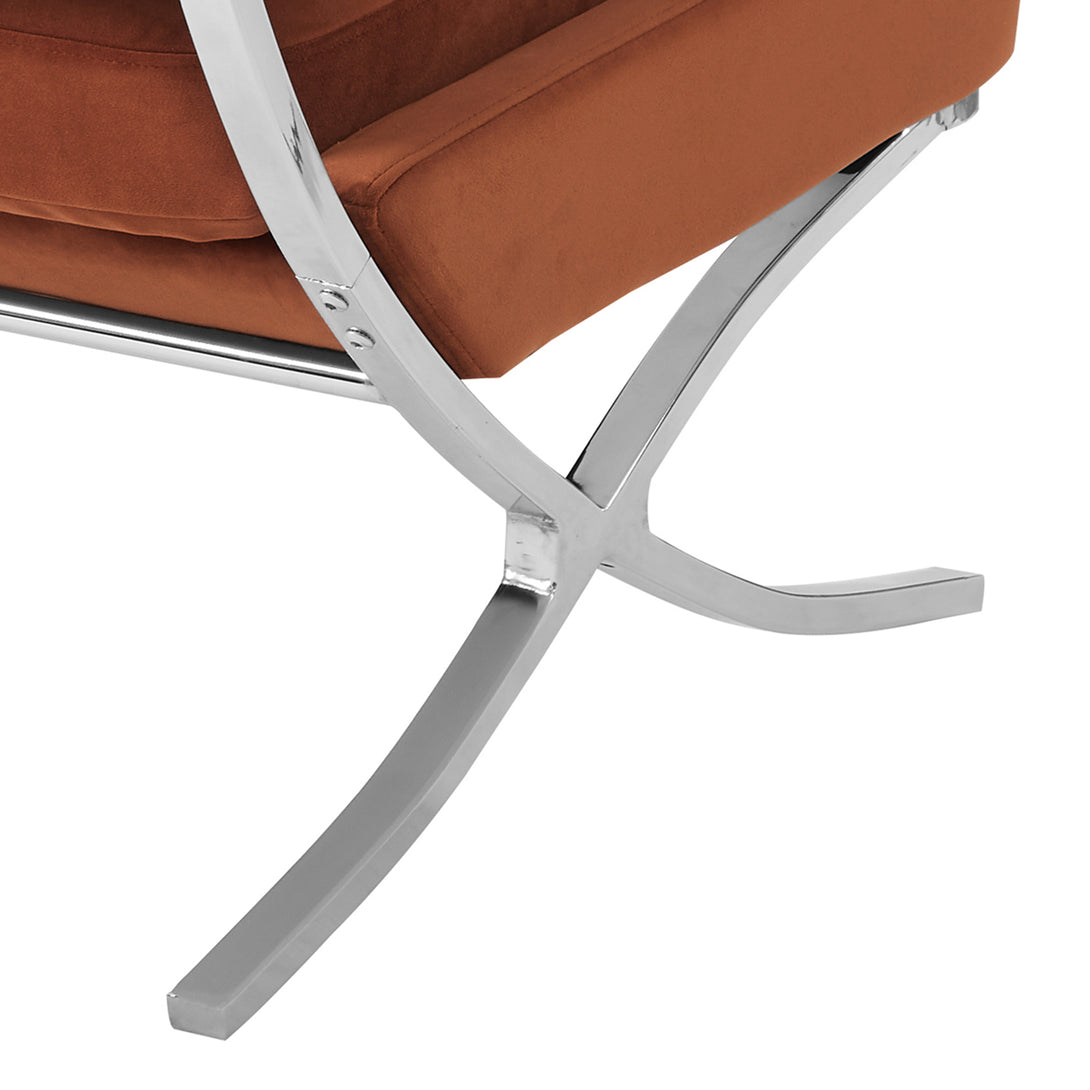 The frame is crafted from metal with a sleek chrome finish, and its curving X-cross legs provide ample sturdy support! Soft faux leather/ Velvet upholstery adds a touch of luxe appeal, while button tufting completes the vintage-inspired look.