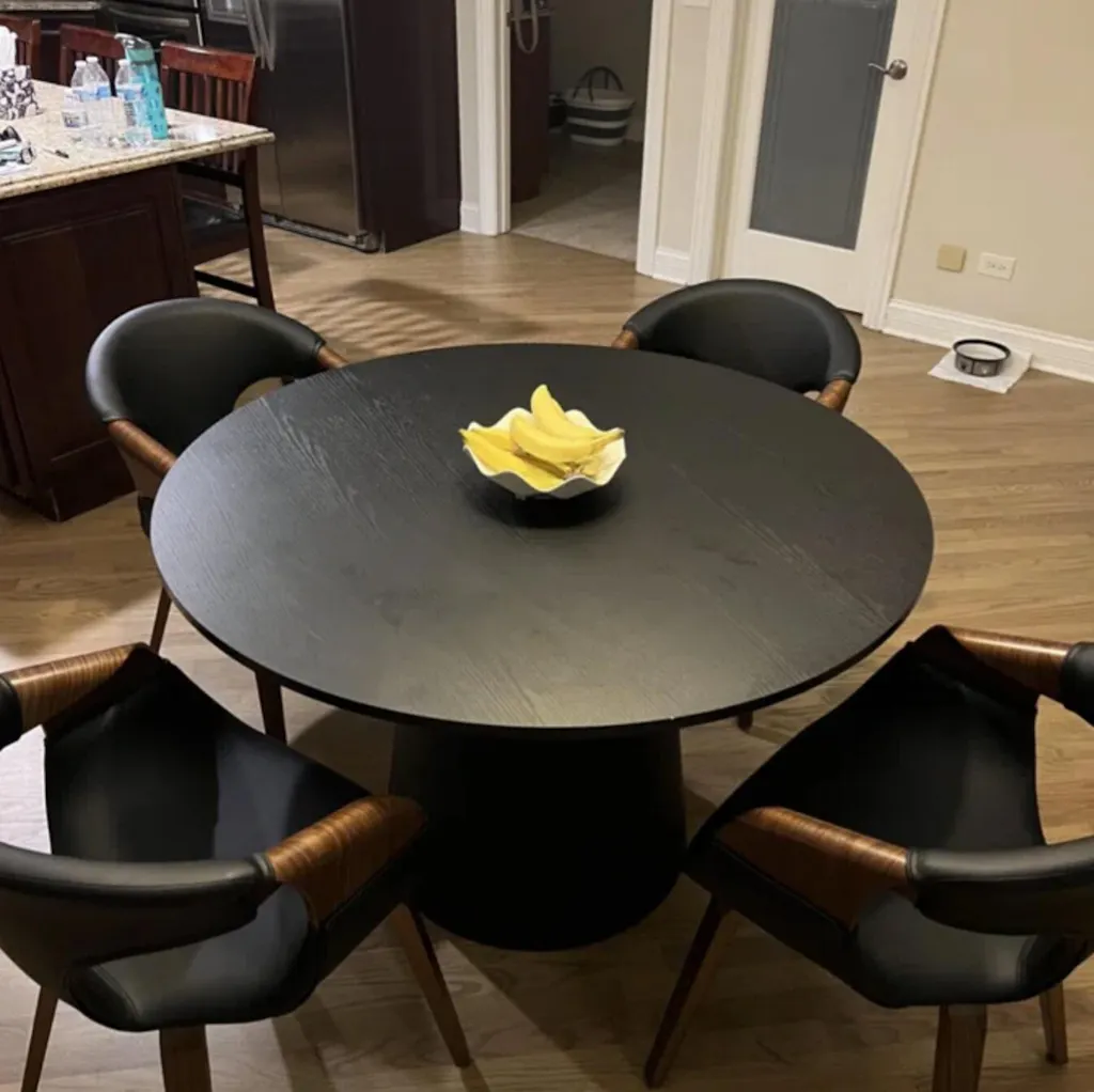 Relish in stability with the chair's outward-angled legs in a natural wood finish, complemented by adjustable feet ensuring balance and protection for your floors.
