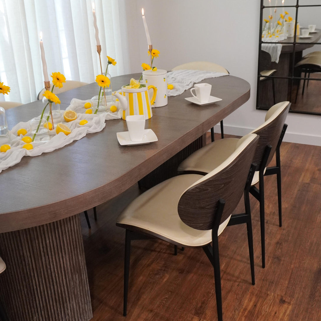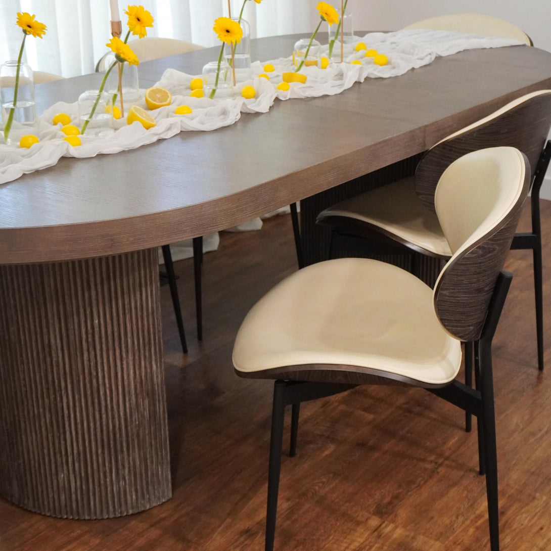 Each color Art Poplar Dining Chair is matched with a different color walnut veneer. And each piece of walnut veneer is unique and varies in color tone and pattern.
