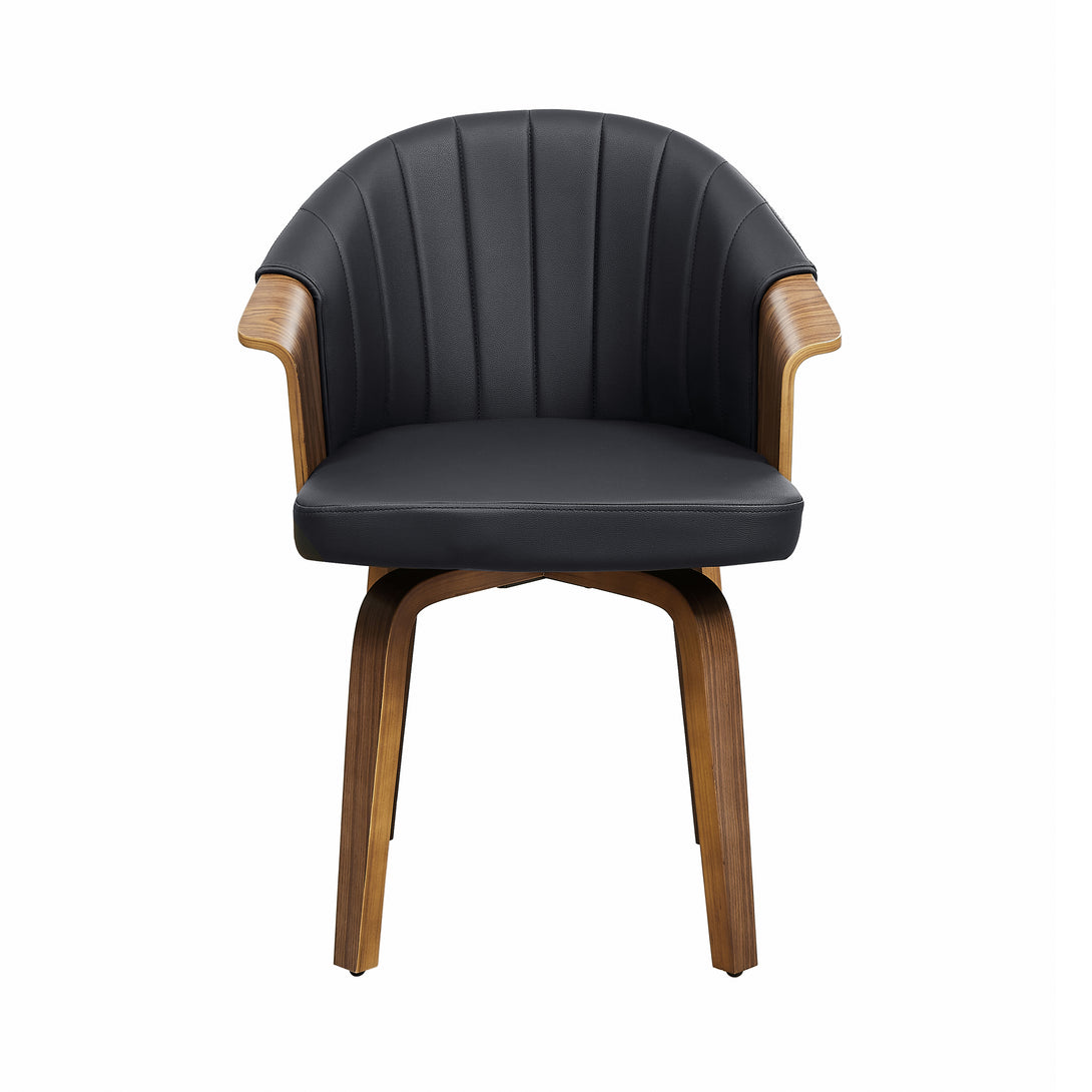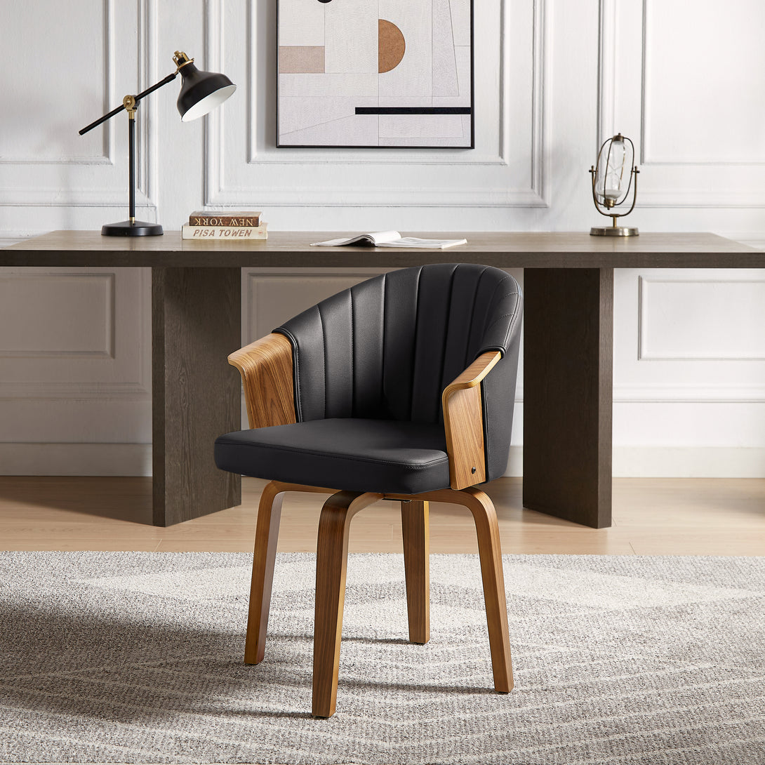Infuse your workspace with the sophistication of this sleek leather desk chair, featuring elegant wood accents, supportive channel stitching, and a sturdy, stylish frame—perfect for elevating your office's comfort & aesthetic!