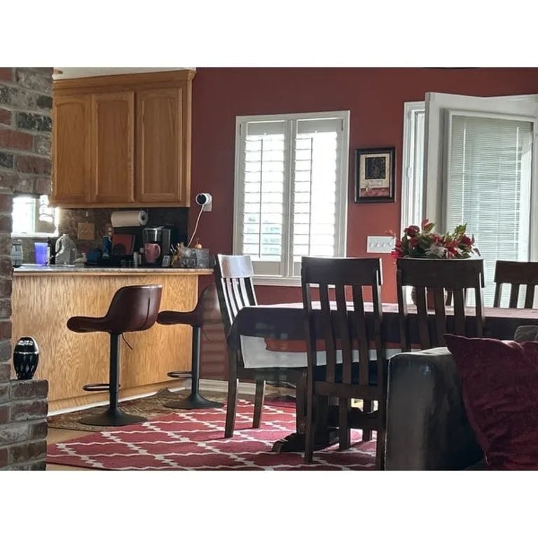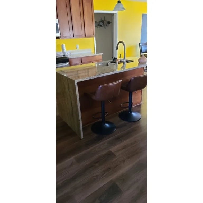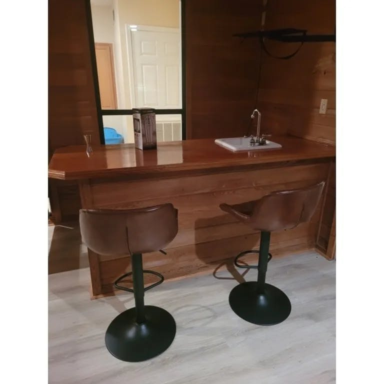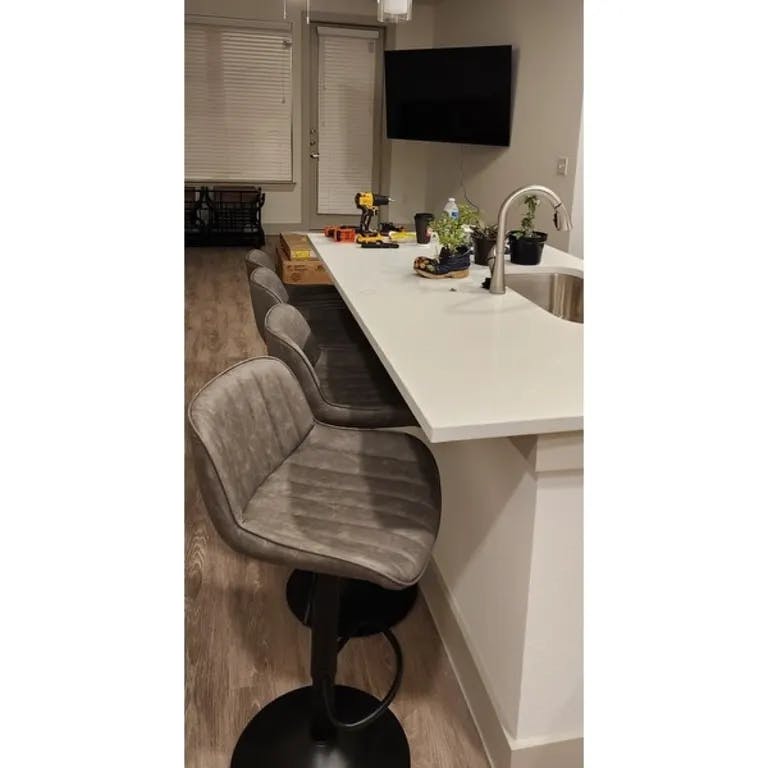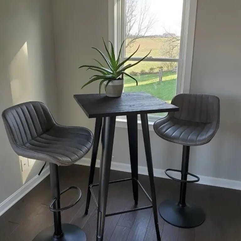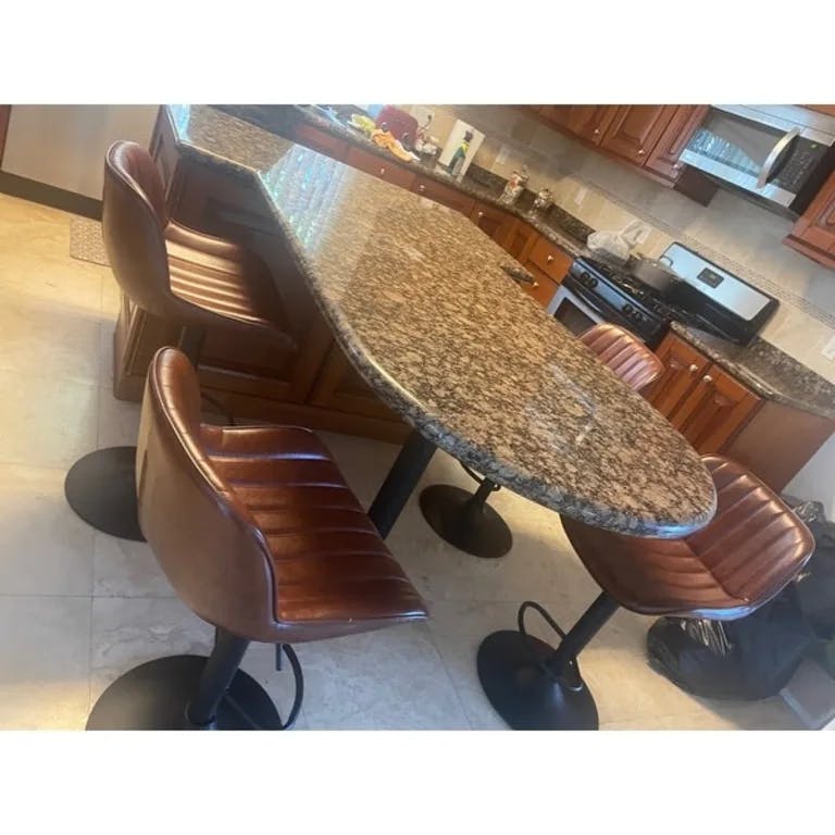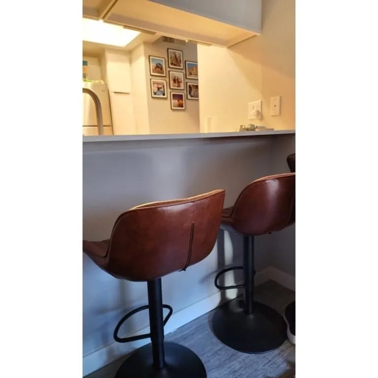 Love these adjustable bar stools! Perfect for our new kitchen, it exceeded my expectations! The color and the black base matches the foot of the kitchen island and perfectly harmonious. The back has good support and I enjoyed having coffee ?? around this set-up and eating as well!
