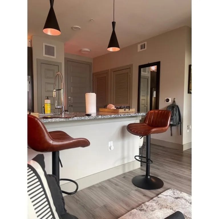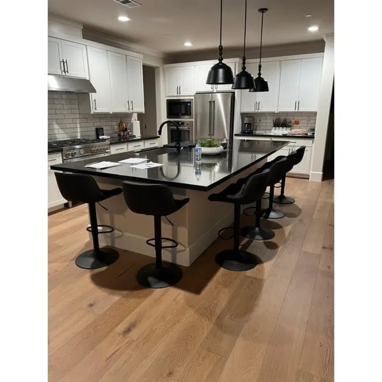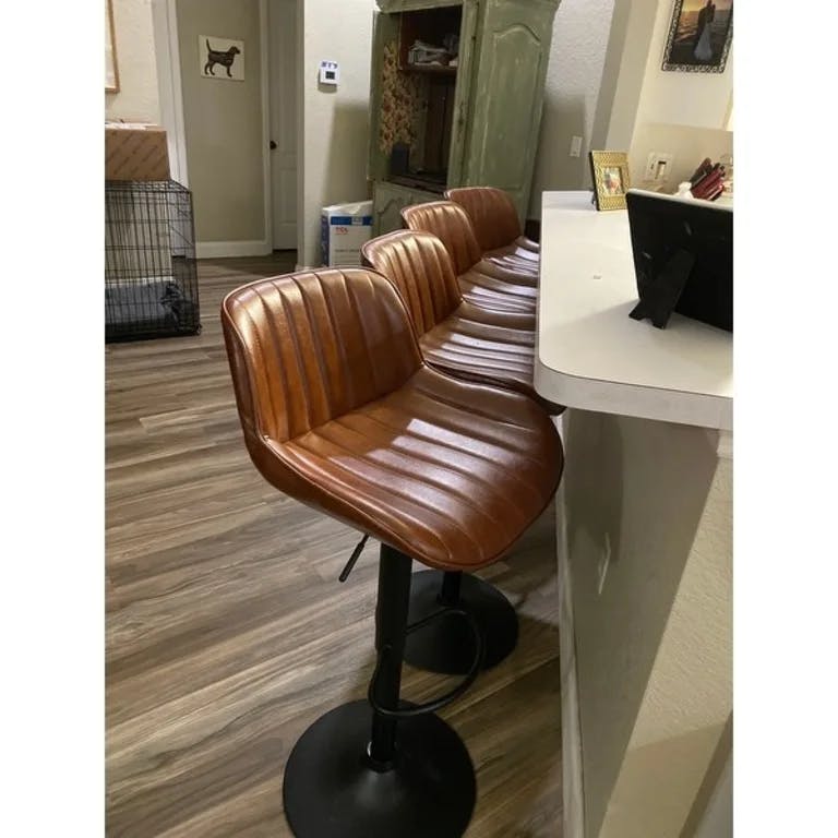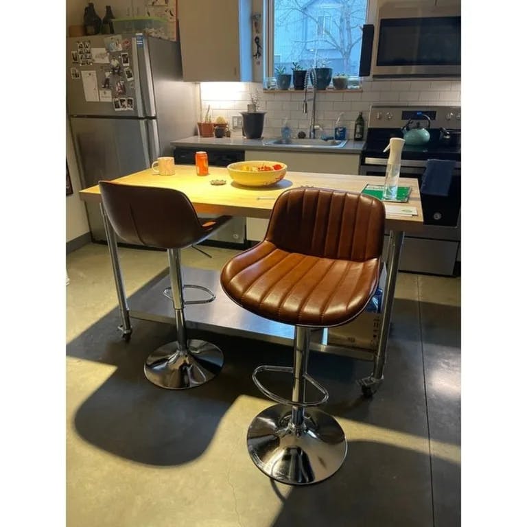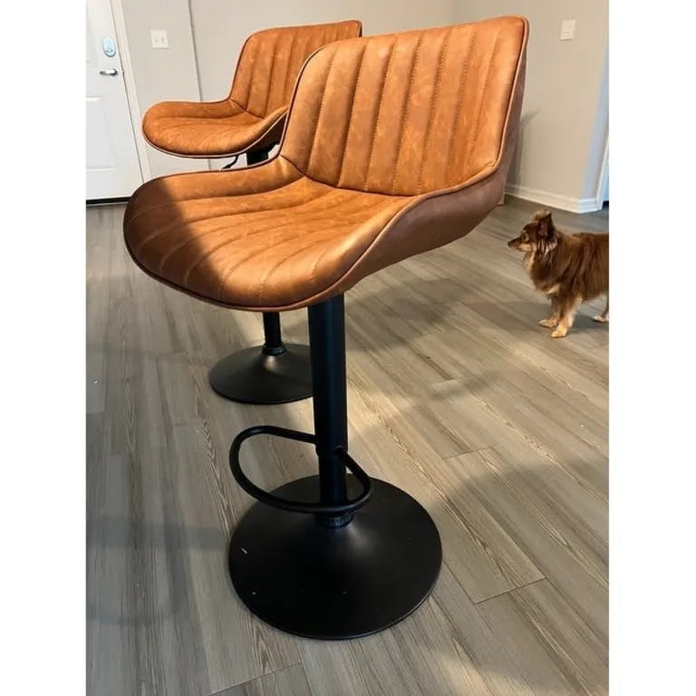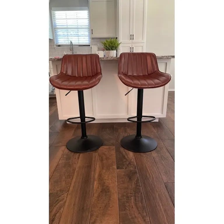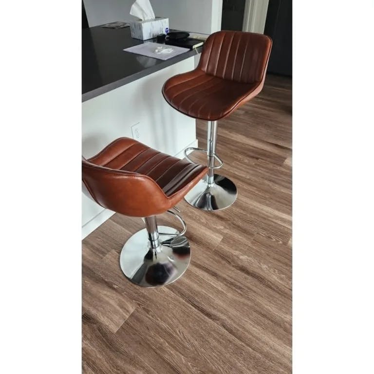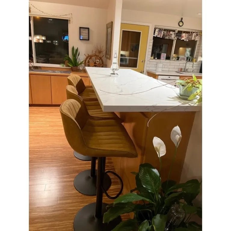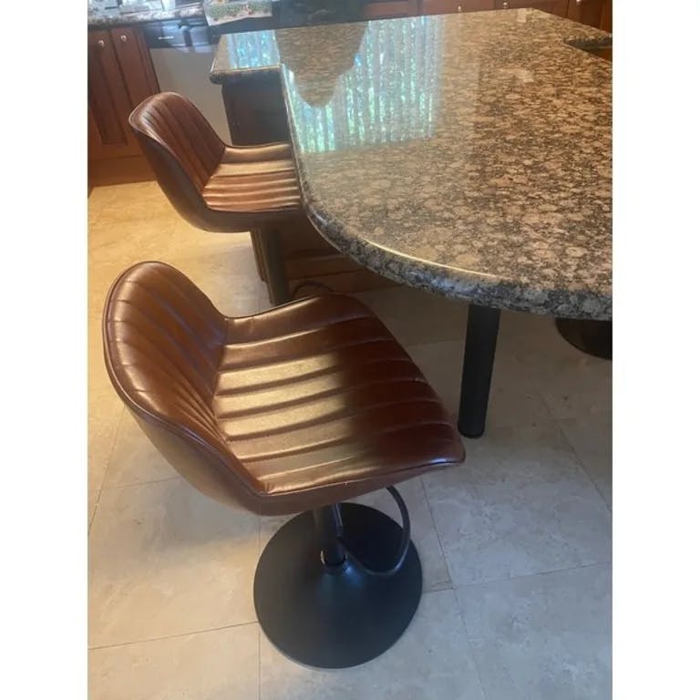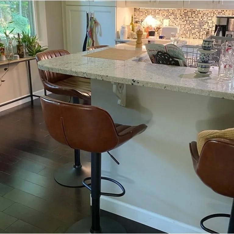 These stools have a beautiful color and feel, clean easily, are comfortable and accommodate guests and family members of all sizes with a generous seat. I have been looking for something comfortable and durable enough to survive a household of 3 teenagers and dogs and these tick every box at a reasonable price. Very happy I did not settle for something else. The swivel is also ideal for larger gatherings so those seated at the breakfast bar can engage with those at the table. If on the edge about the quality vs price—— I would buy these as they are even better than advertised.