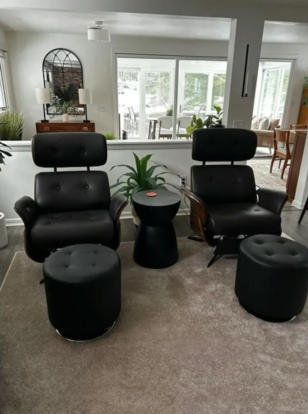 This chair has a split design with memory foam padding for comfort and an extendable footrest for added relaxation!