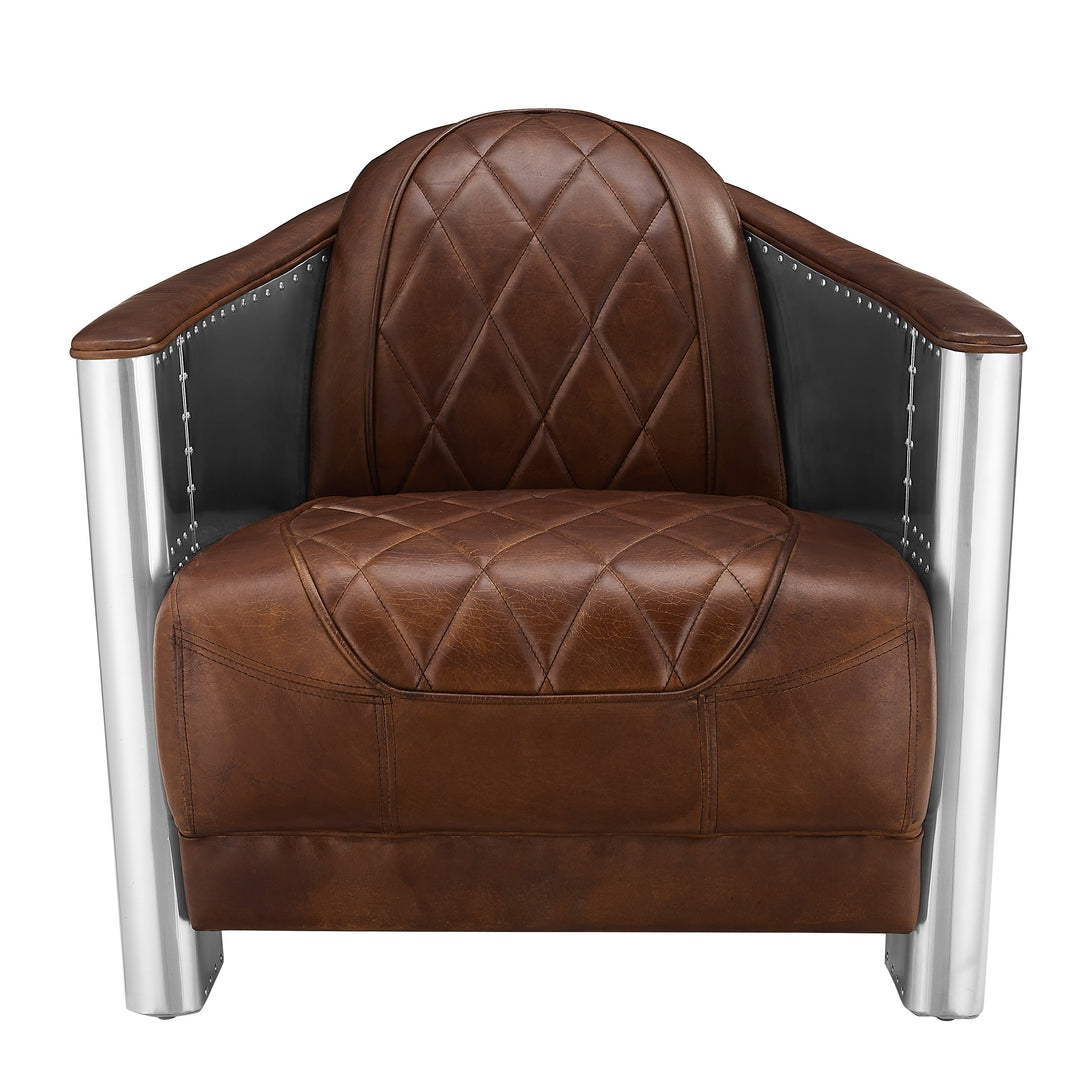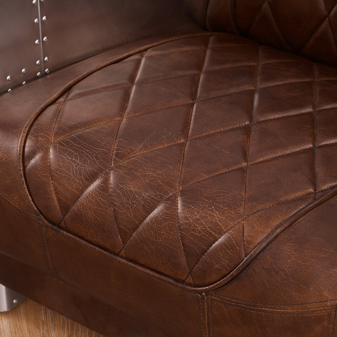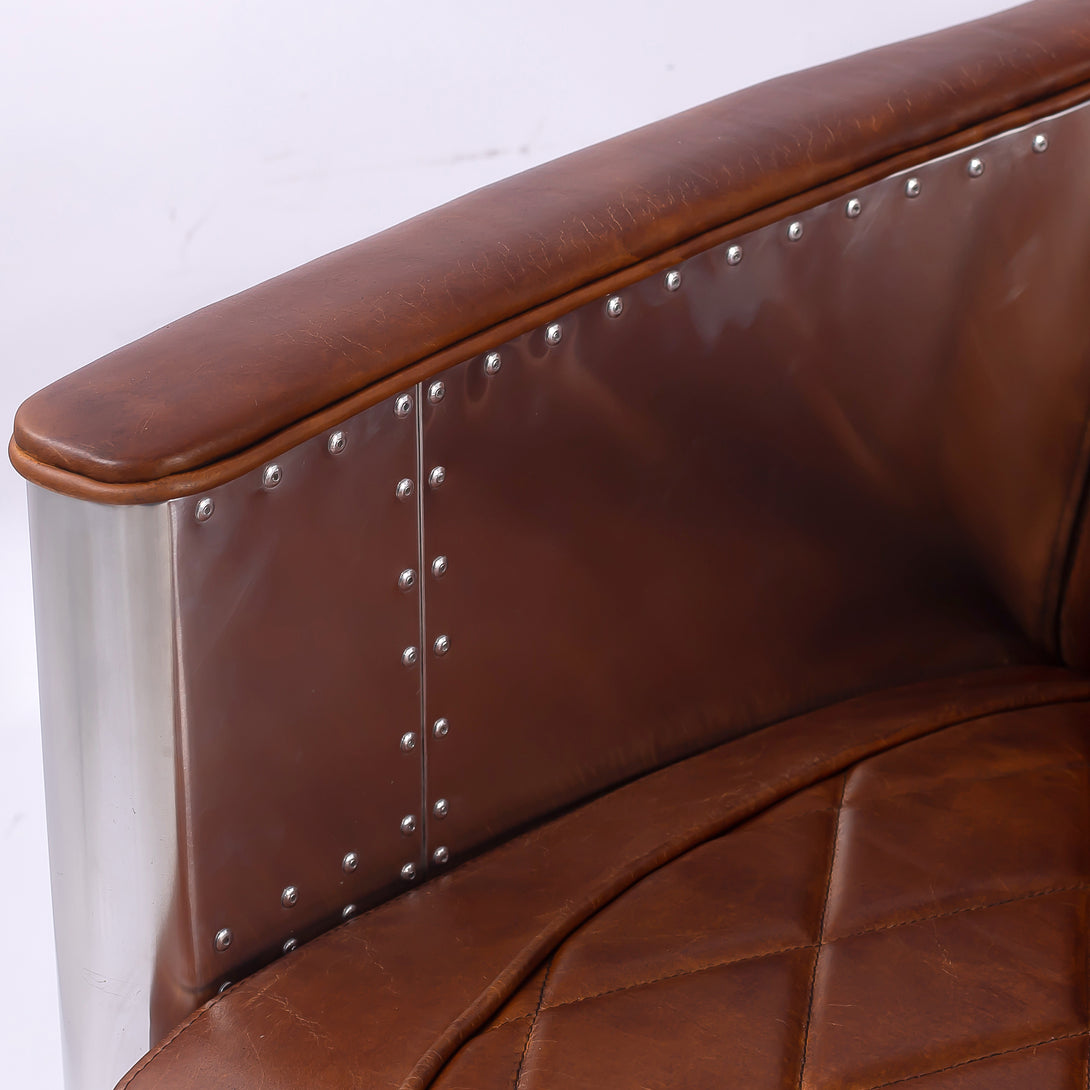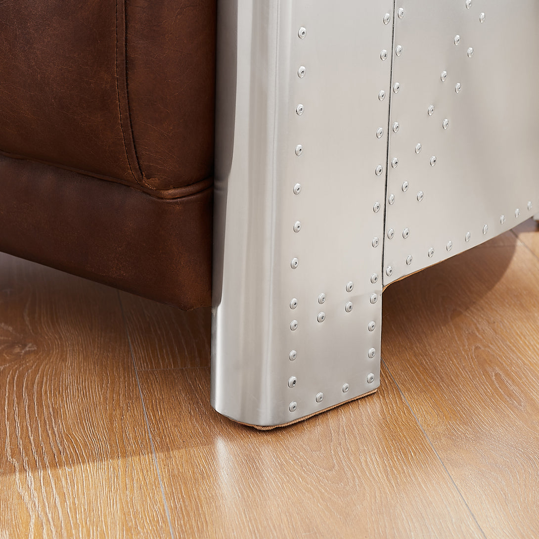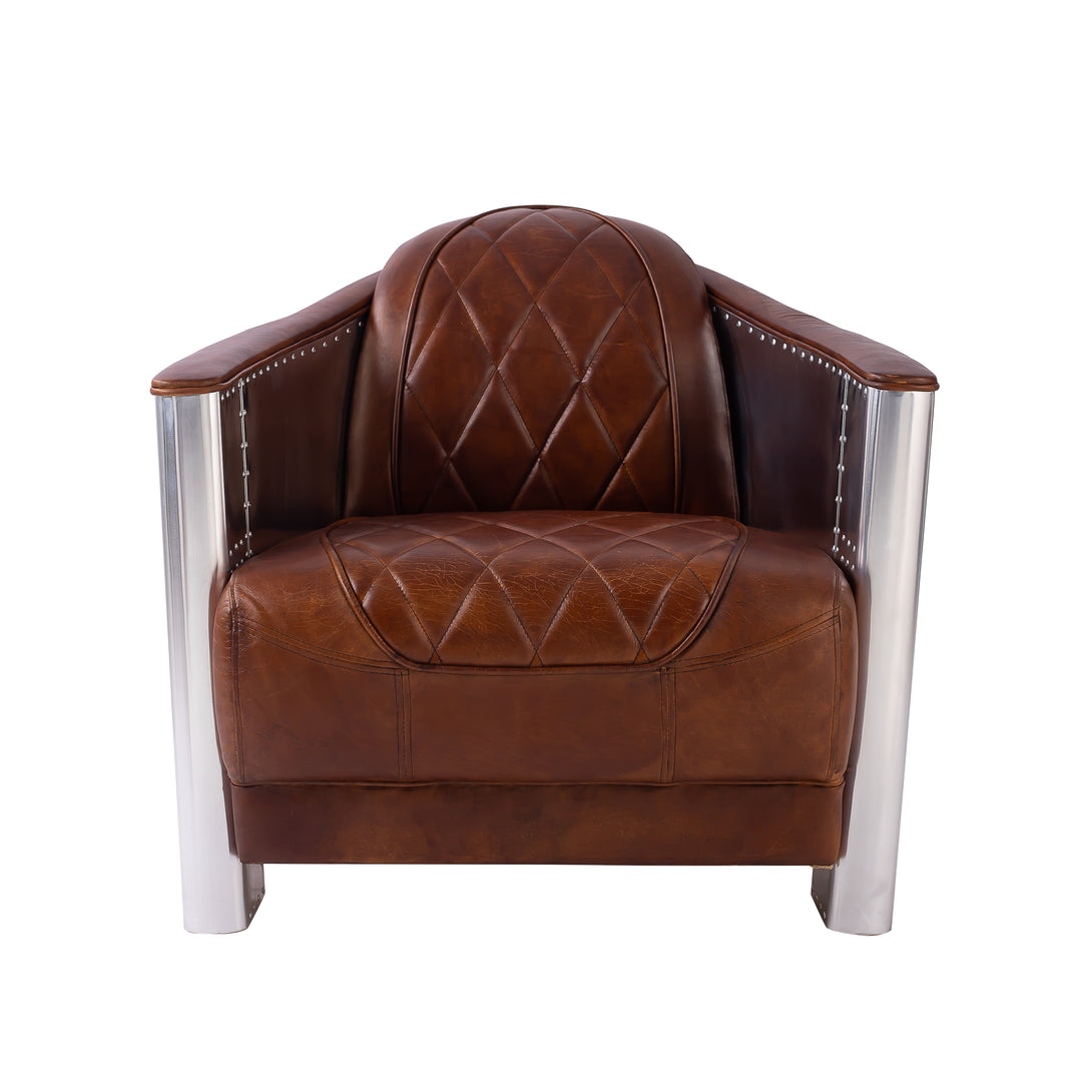 Art Leon Top Grain Aviator Genuine Leather Accent Chair with Aluminum Patchwork, Medieval Industrial Design