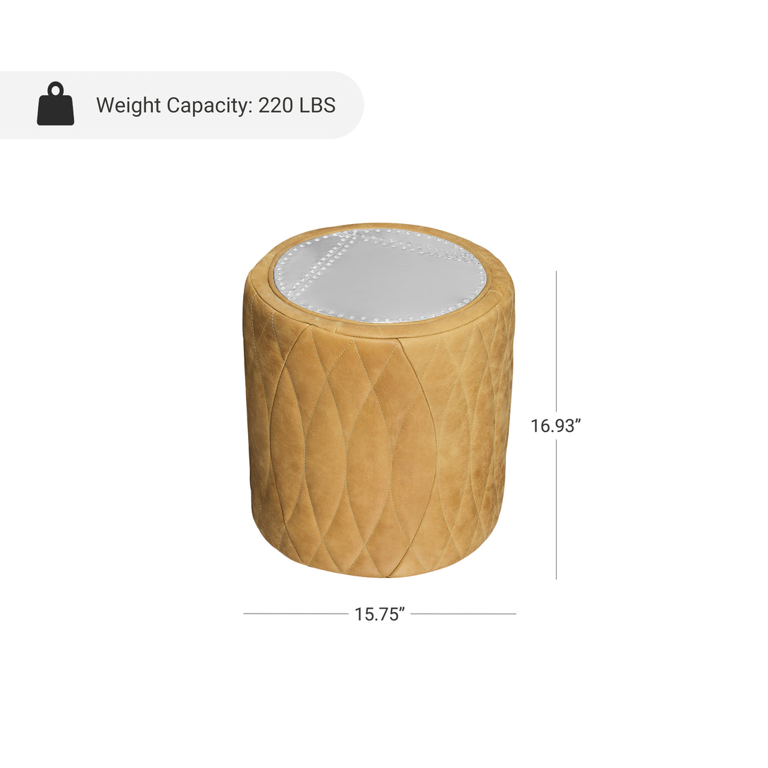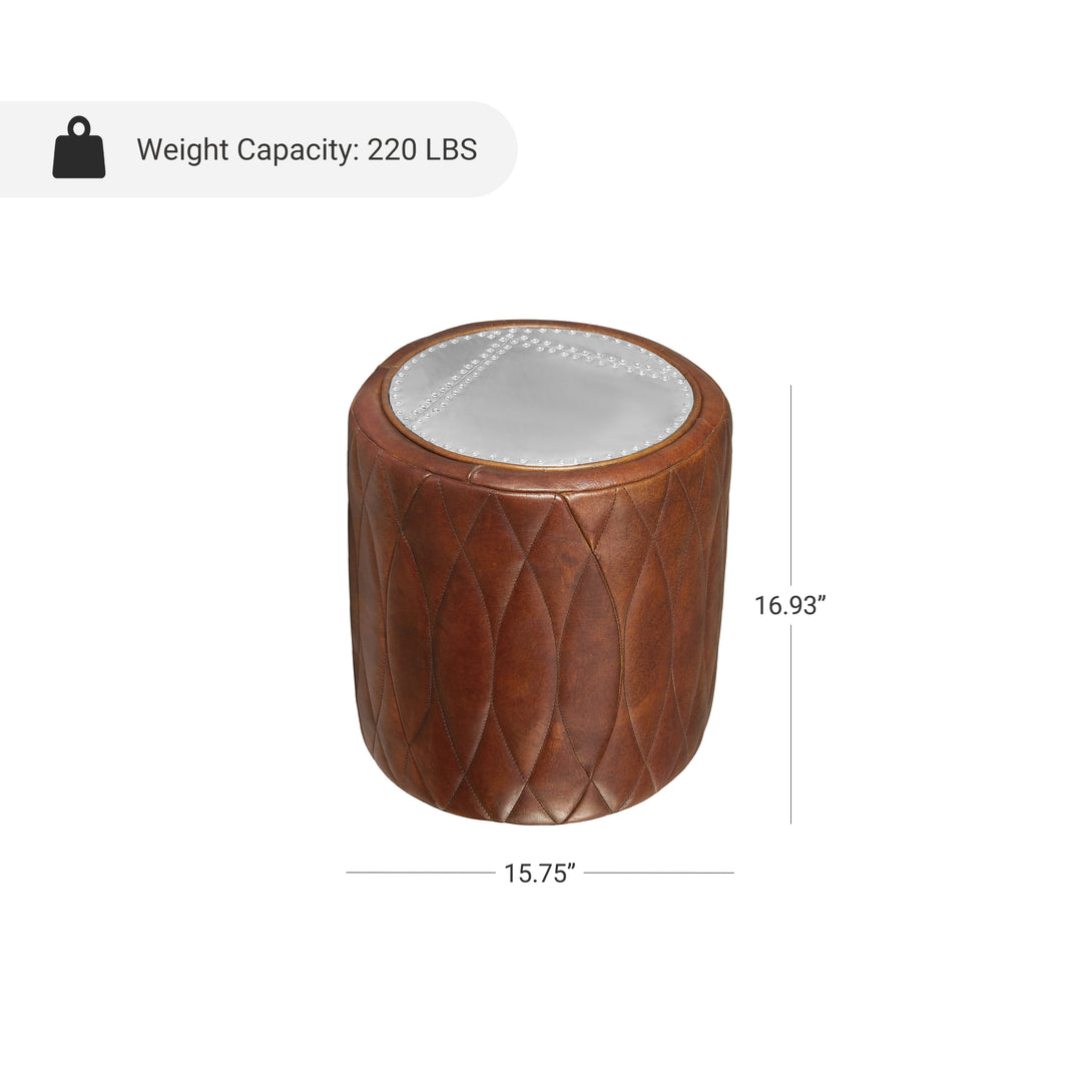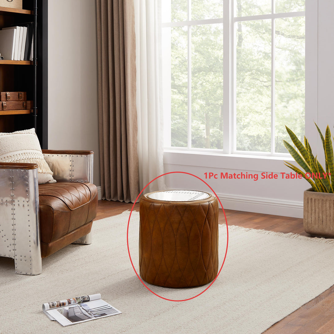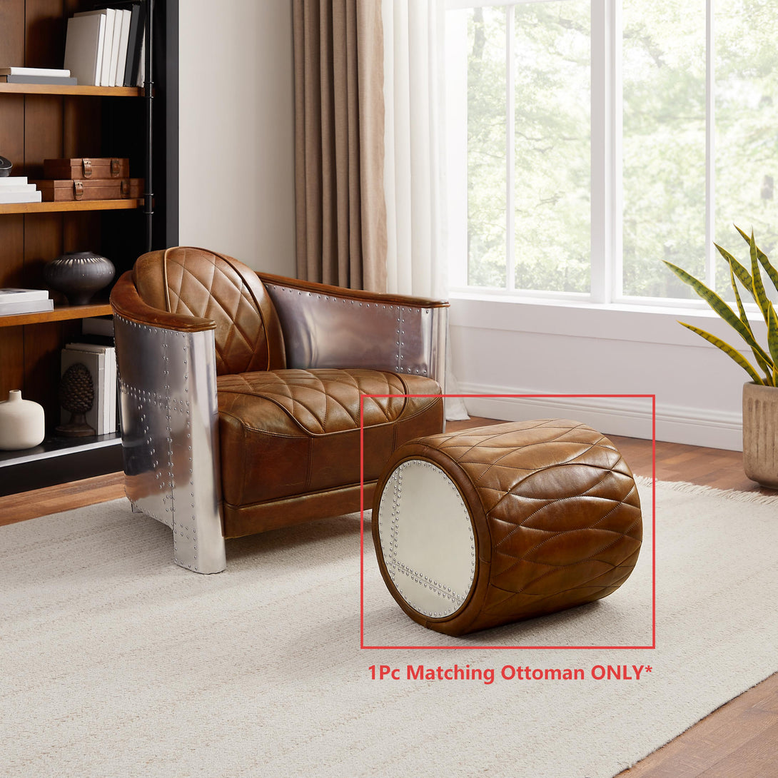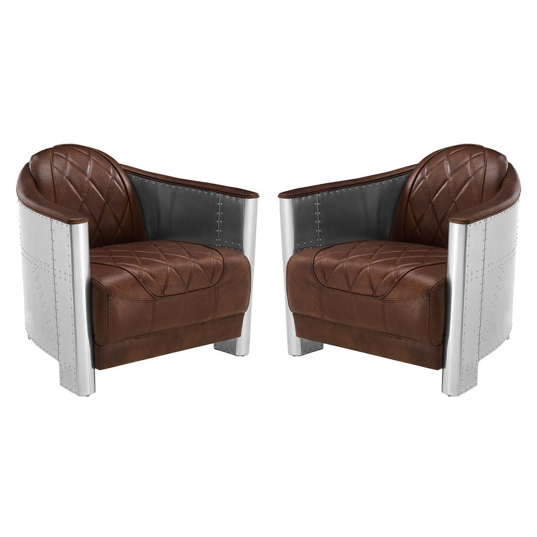 Art Leon Top Grain Aviator Genuine Leather Accent Chair with Aluminum Patchwork, Medieval Industrial Design