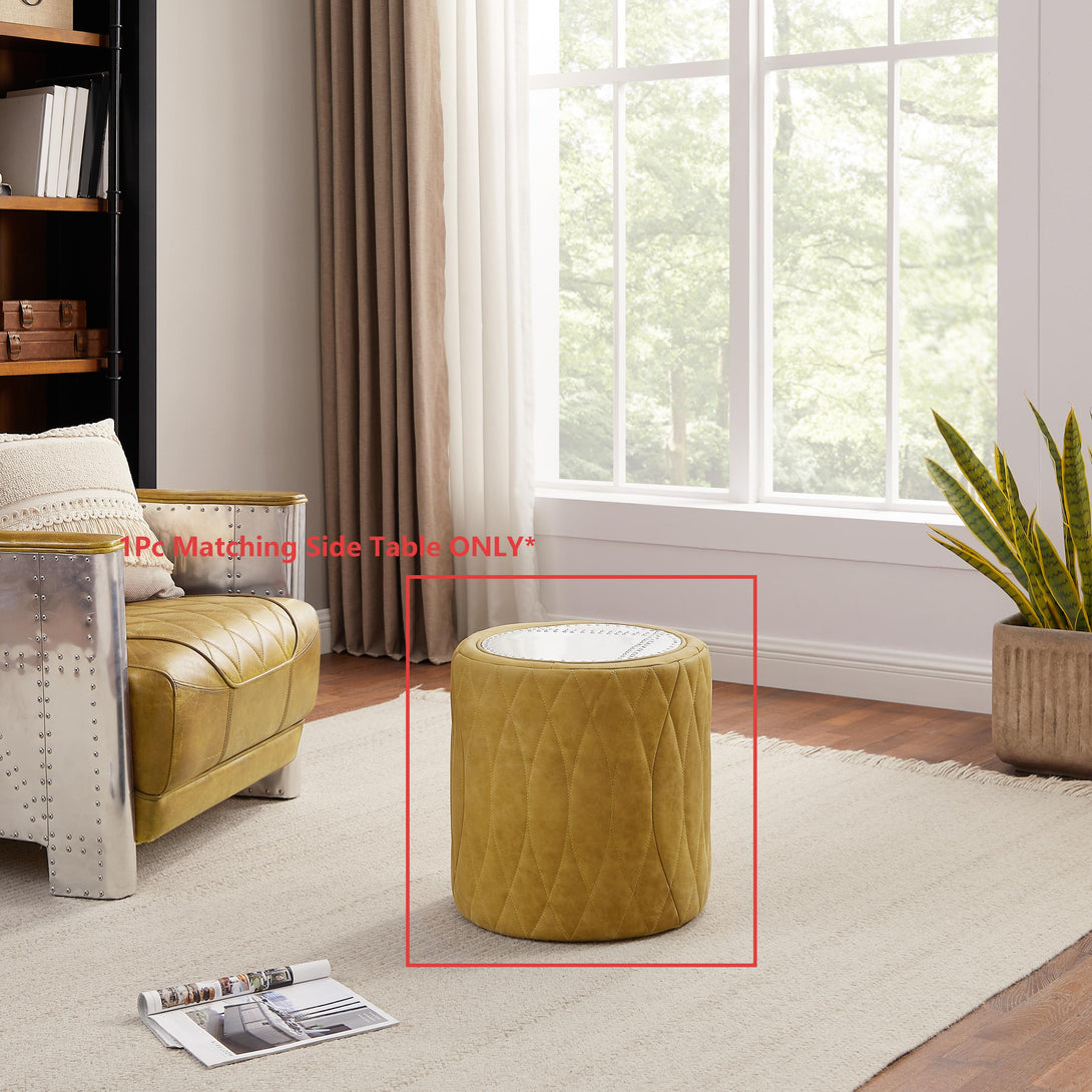 Vintage Industrial Charm: Revel in the chair's classic tufted leather, offering a timeless allure to your living space.