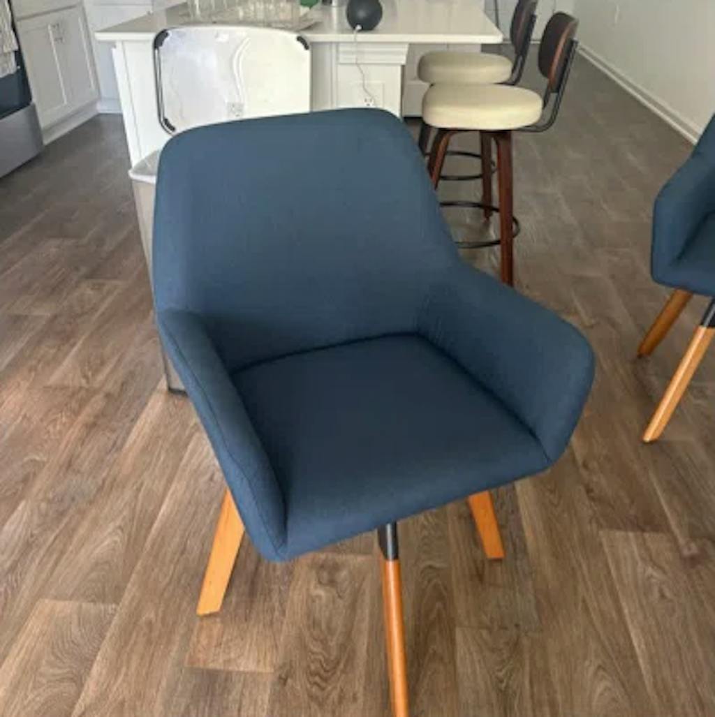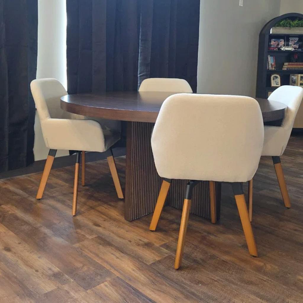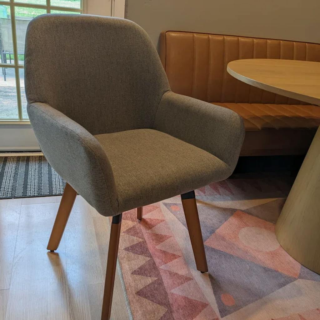 The legs of the chair are made of solid beech wood, which gives them a sturdy and robust feel. It also has a natural light brown color and a smooth finish that adds a touch of elegance to the chair's overall design. Due to the strength and durability of beech wood, the chair can support up to 256 lbs.