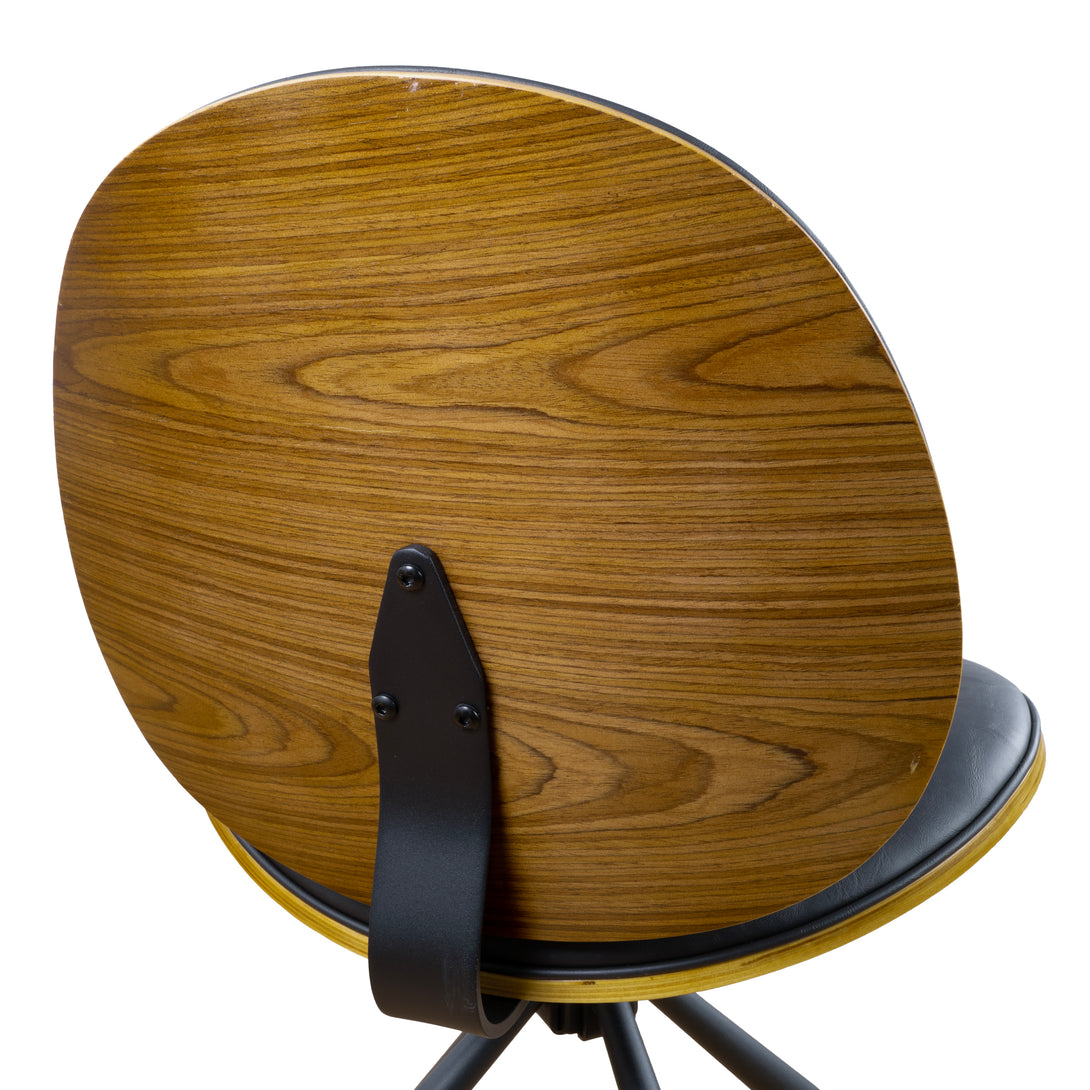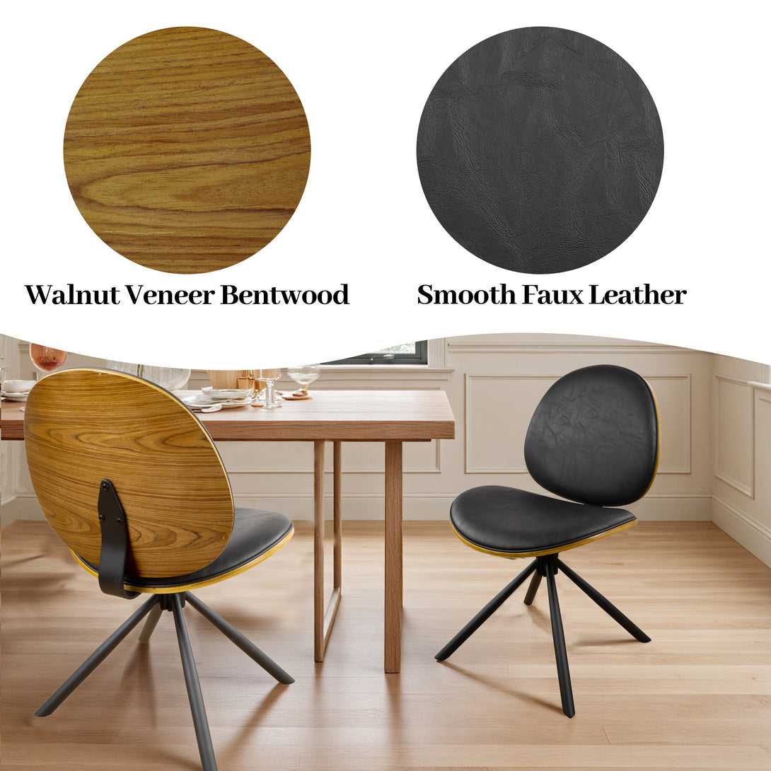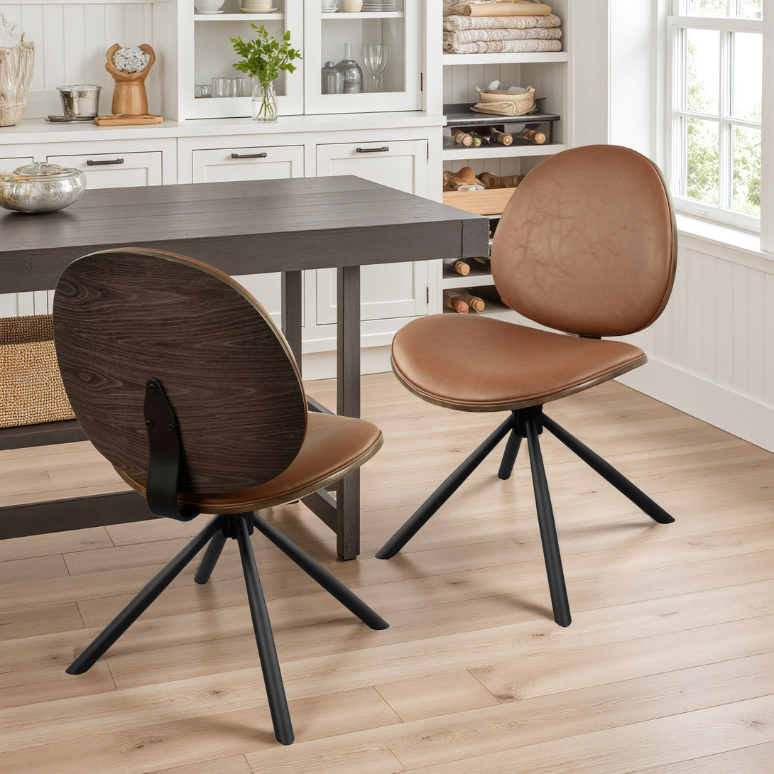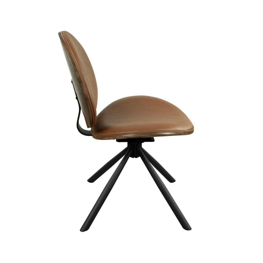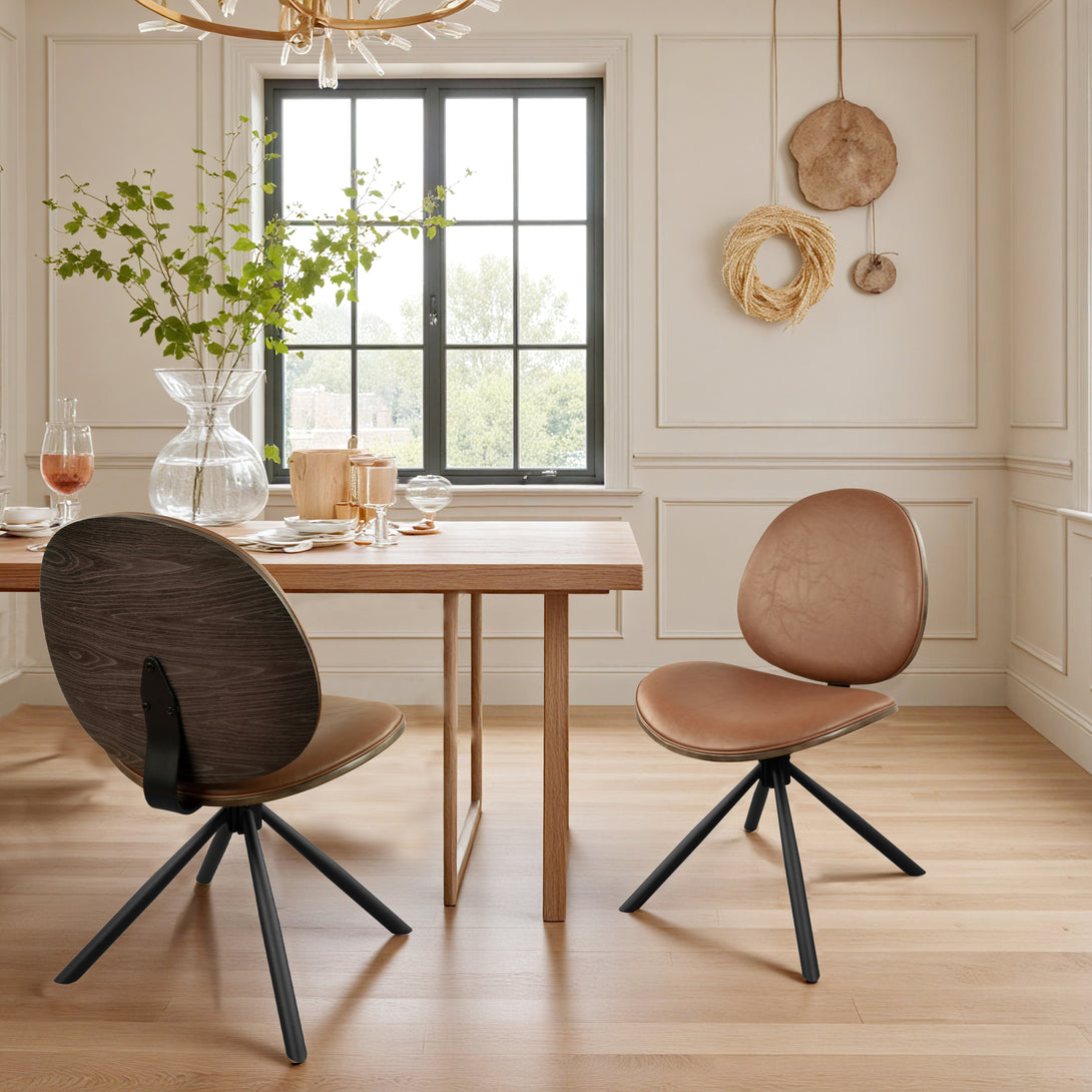 Art Leon Bentwood Leather Swivel Dining Chair - Birch Veneer, Curved Backrest and Upholstery, Metal Legs