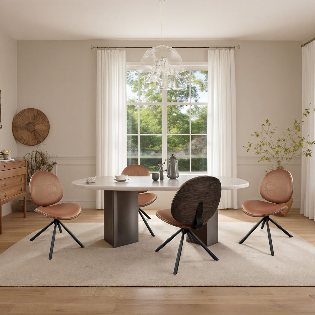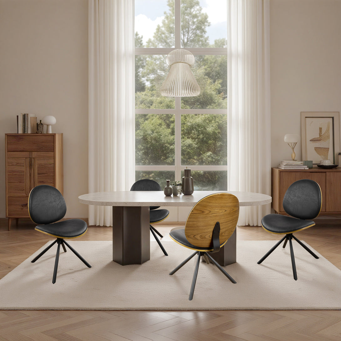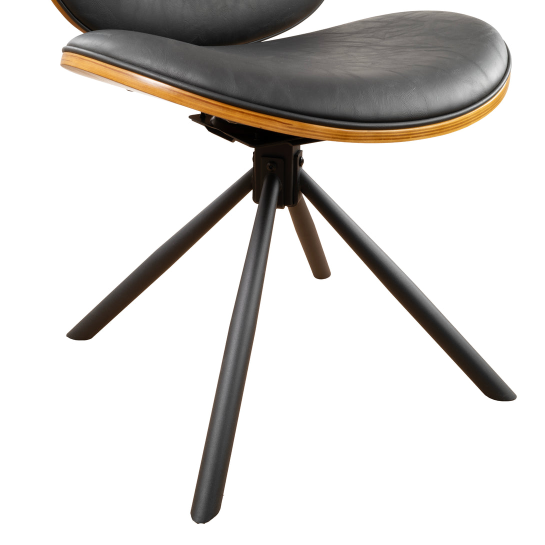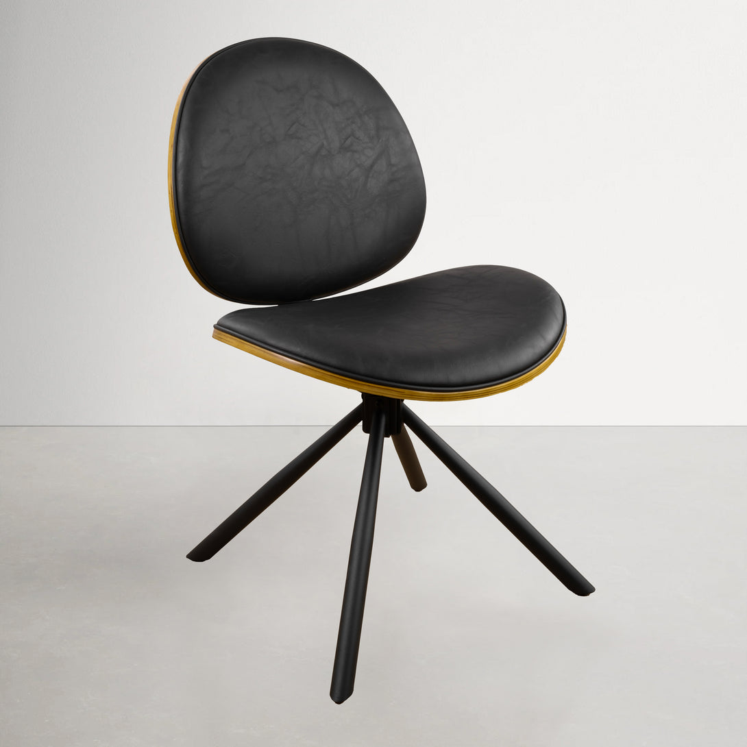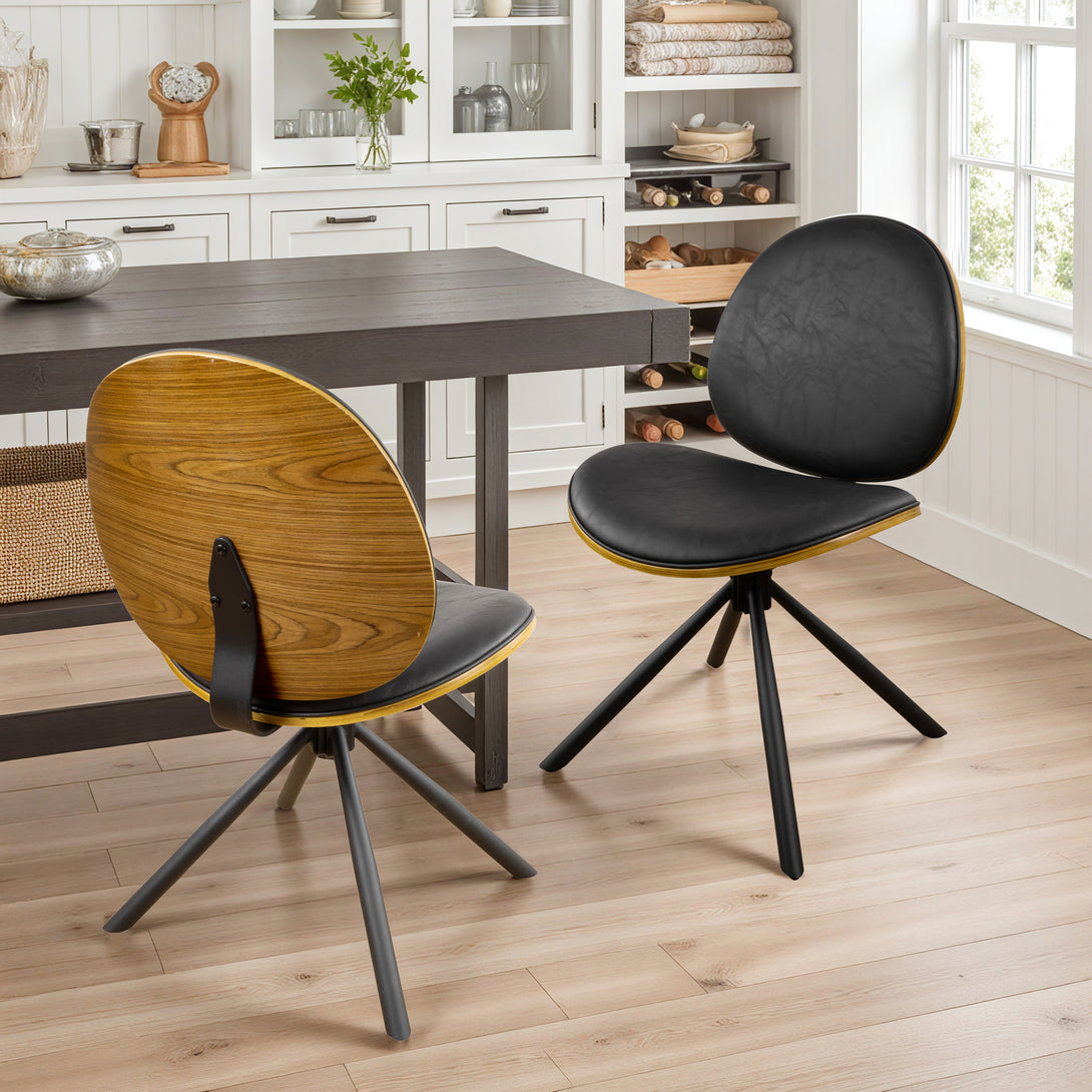 Art Leon Bentwood Leather Swivel Dining Chair - Birch Veneer, Curved Backrest and Upholstery, Metal Legs