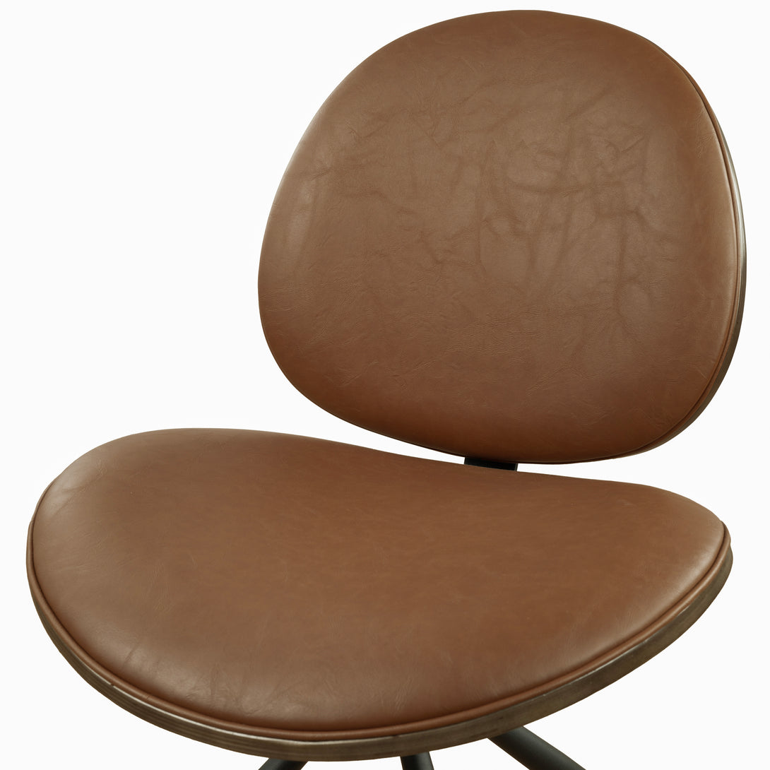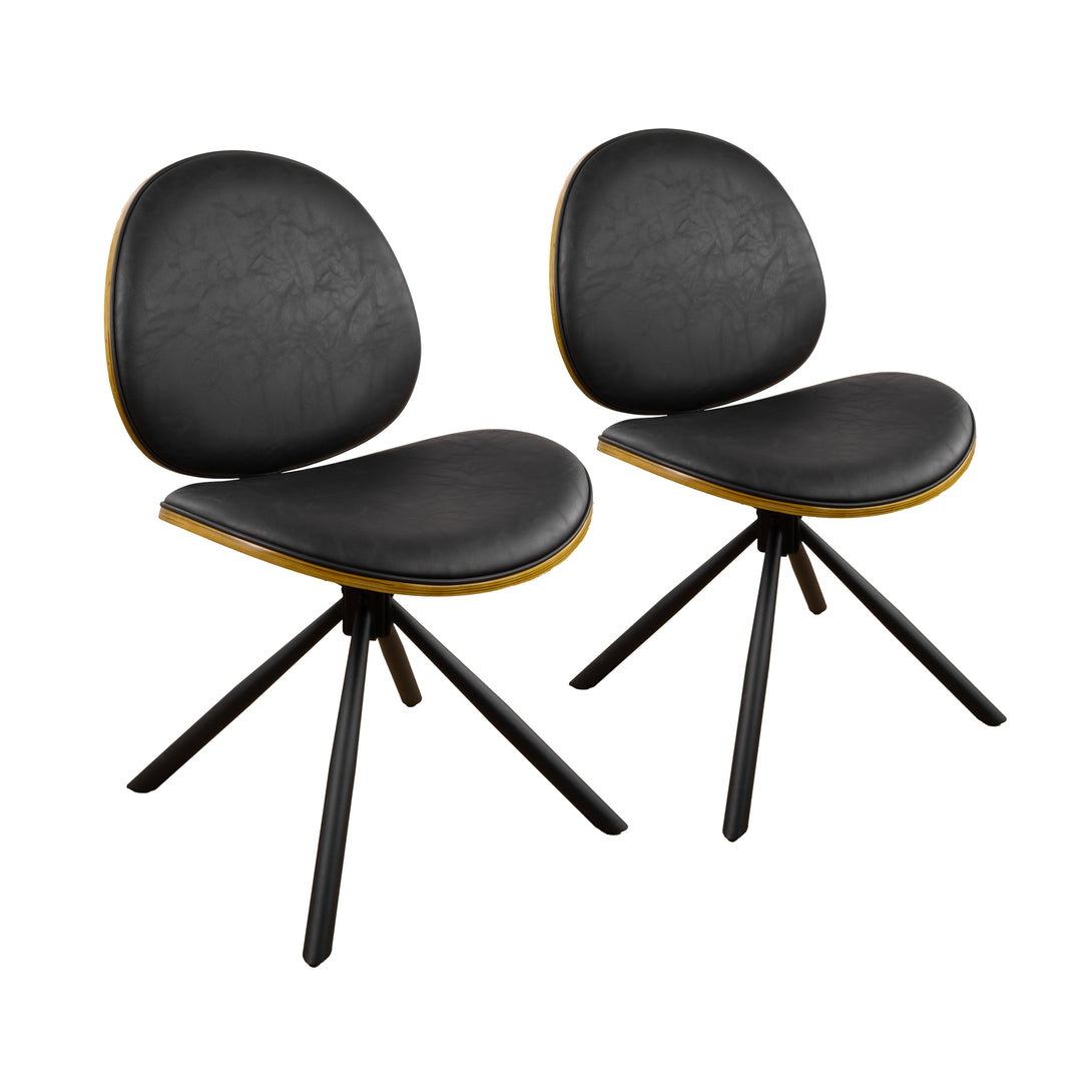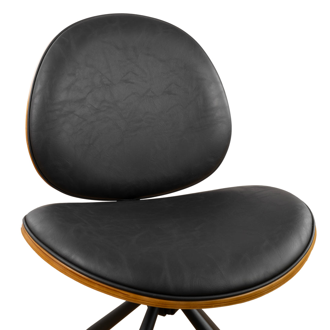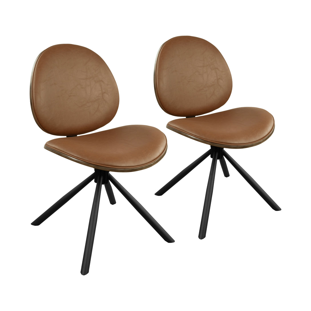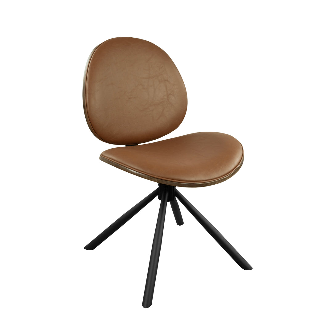 Art Leon Bentwood Leather Swivel Dining Chair - Birch Veneer, Curved Backrest and Upholstery, Metal Legs