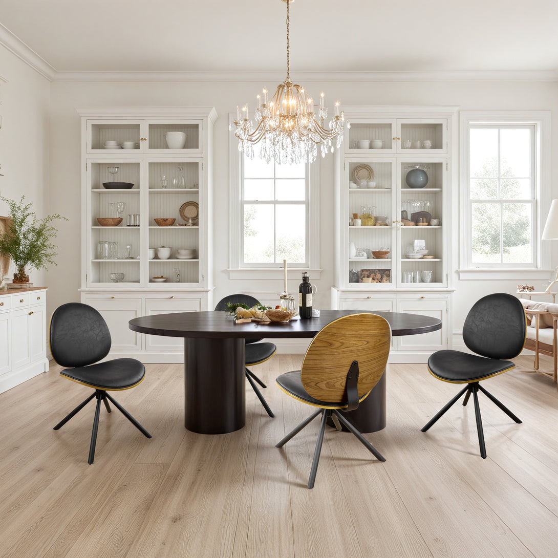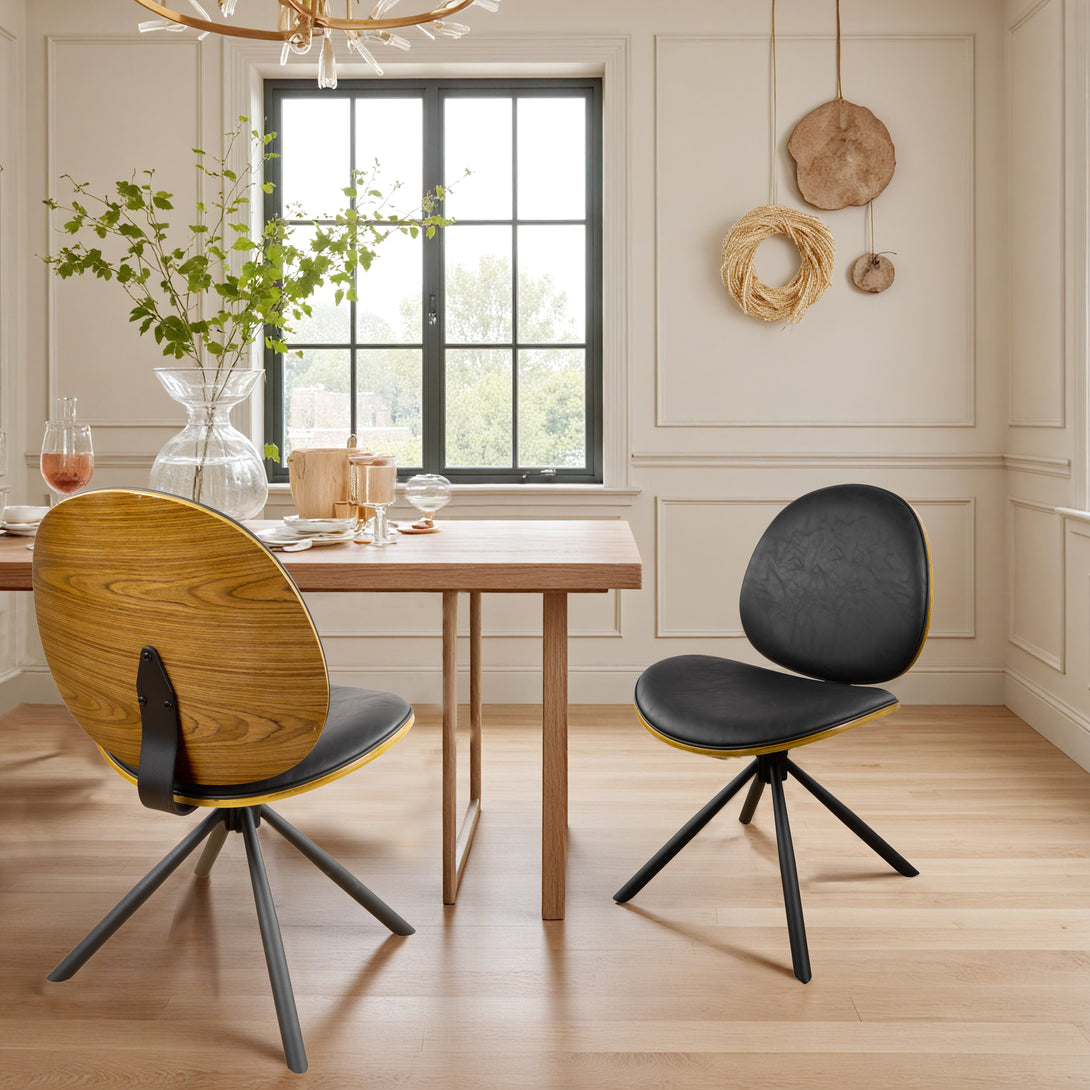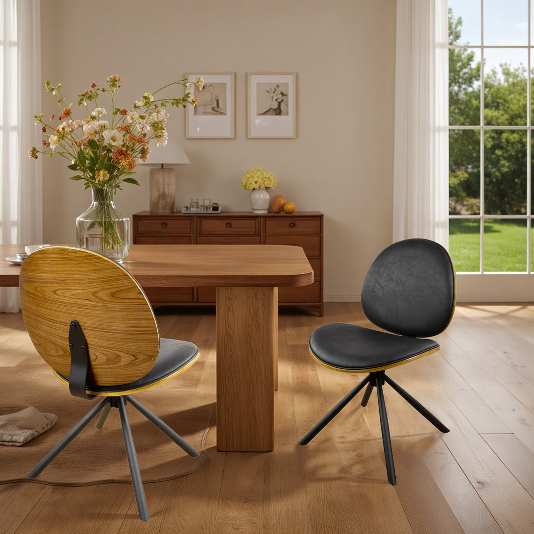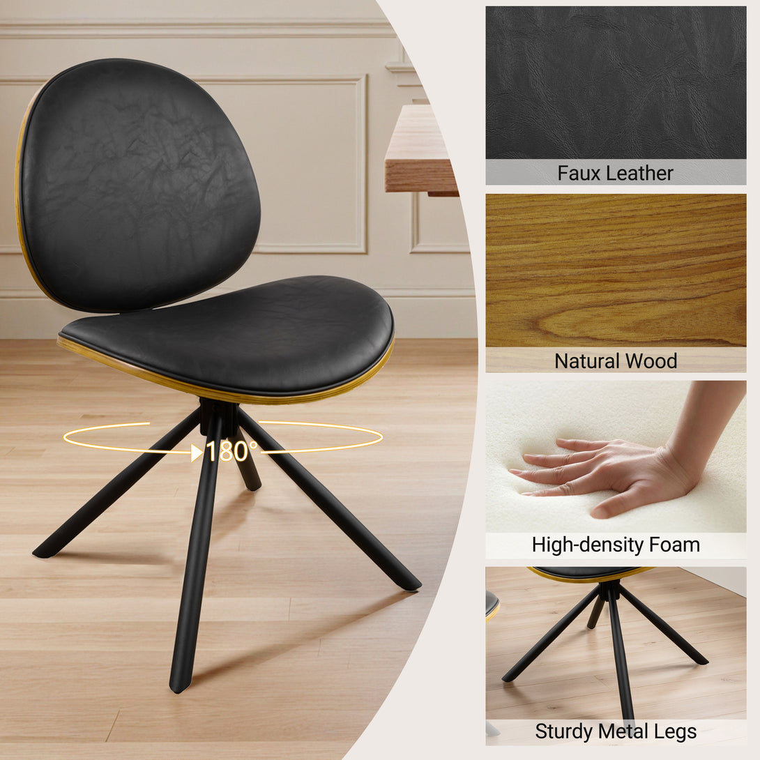 Modern Design: The 180° Rotation Dining Chairs feature a softly curved back and the backside in polished birch wood veneer, and are upholstered with soft faux leather. Our kitchen chairs match any furniture decoration, adding a modern touch to your home!