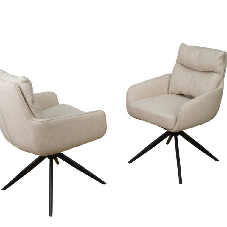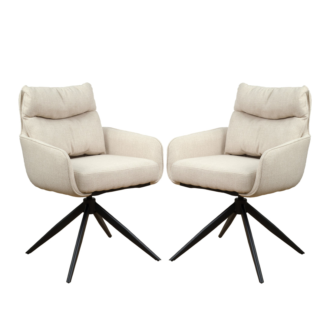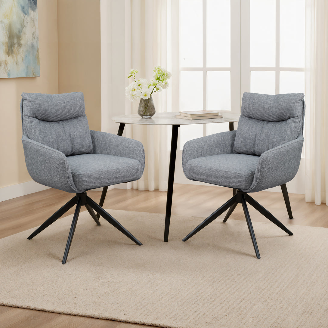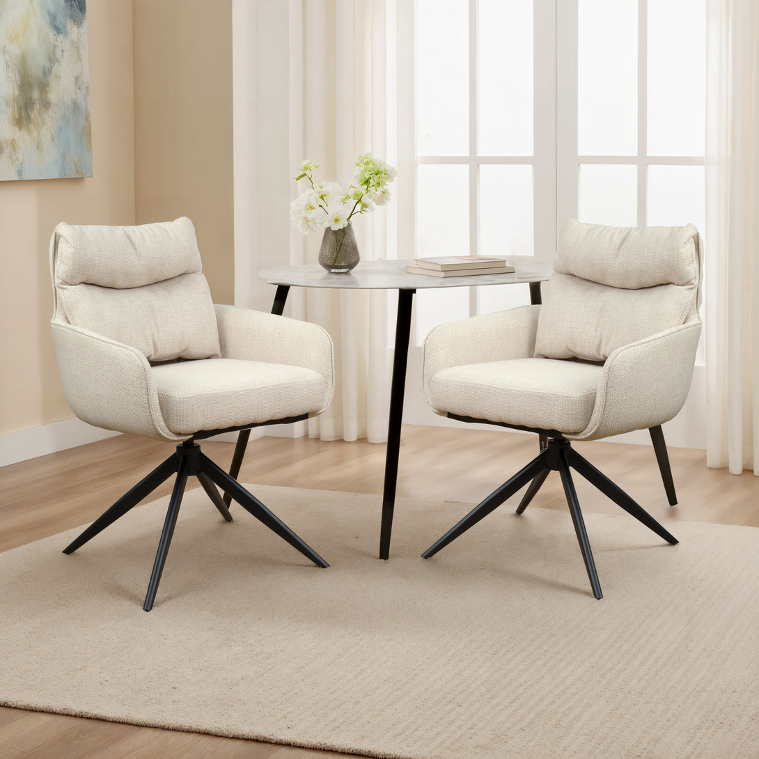 Art Leon Swivel Accent Dining Chairs Set, Fabric Upholstery and Armrest Design with Metal Legs