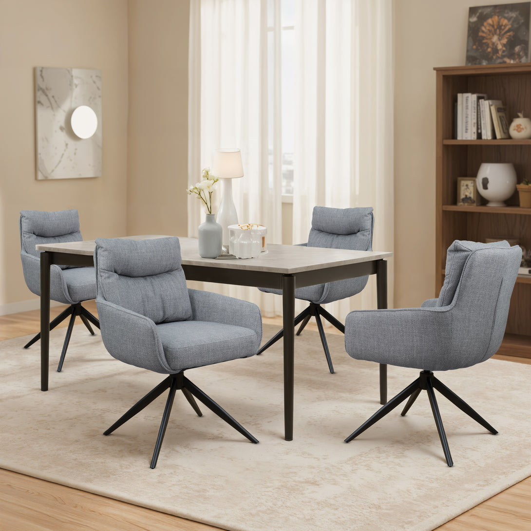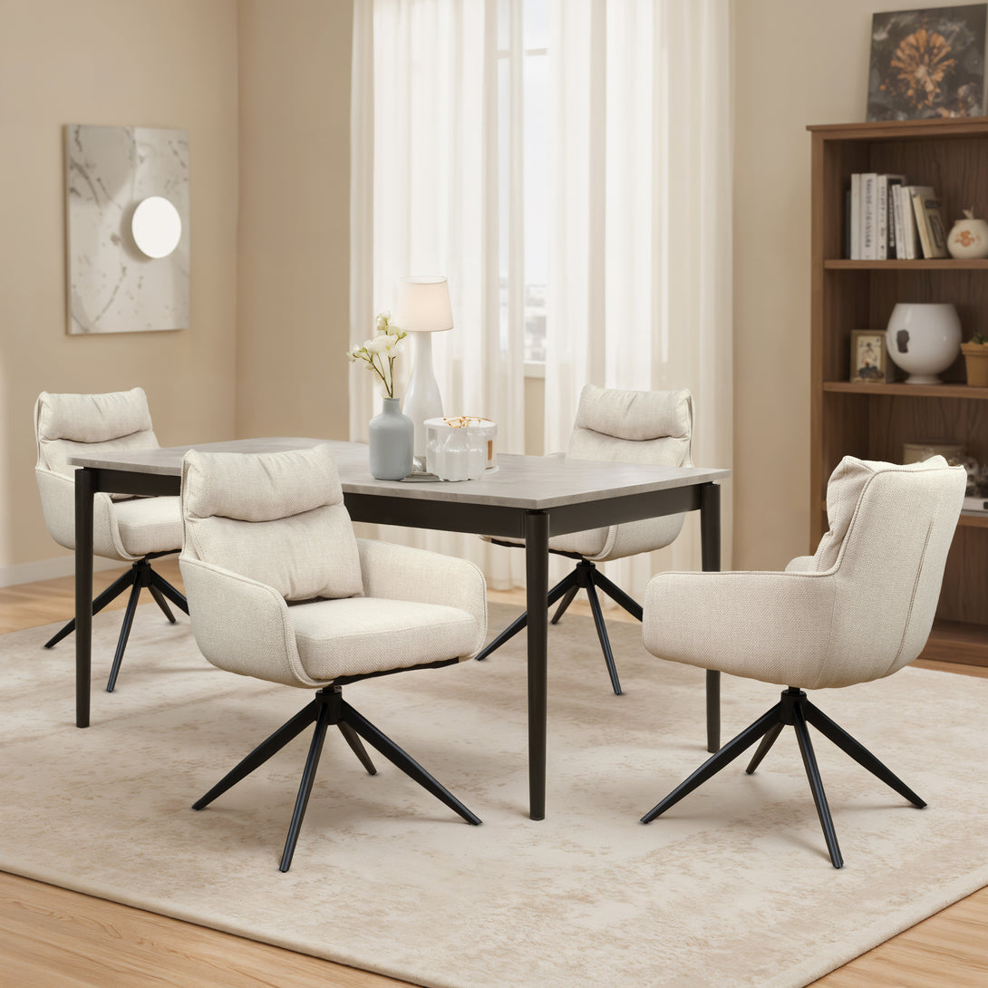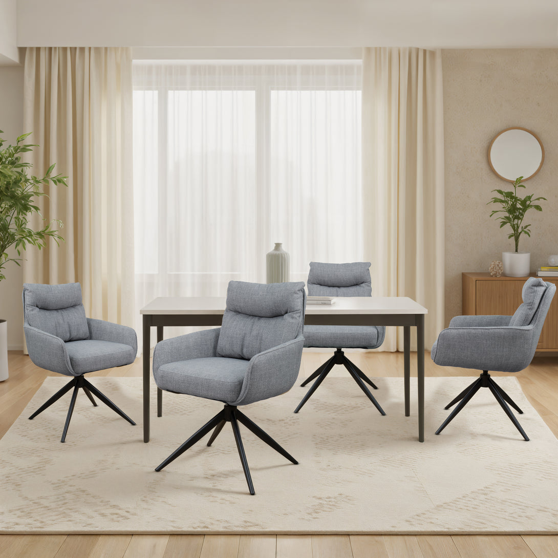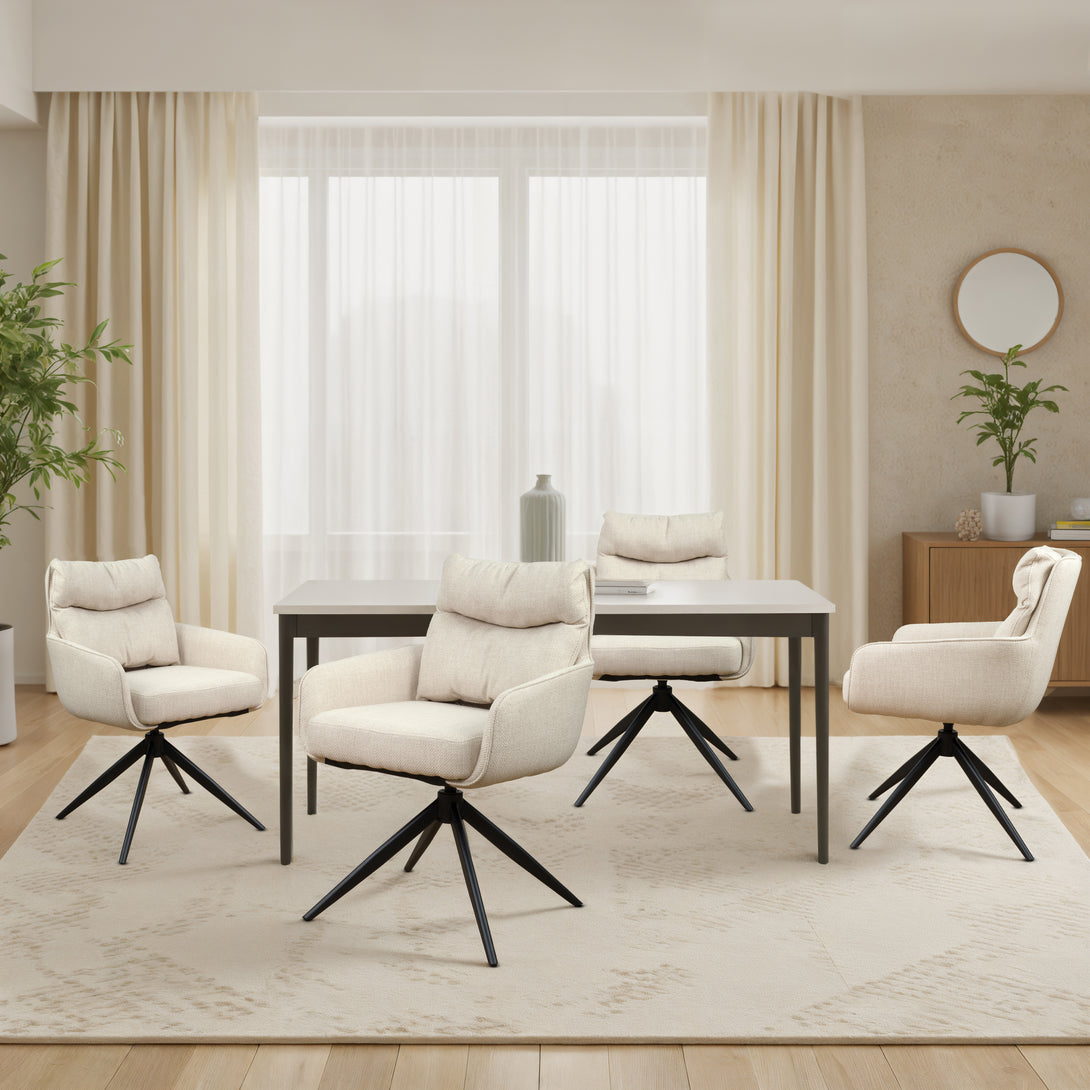 Comfort: This swivel dining chair features soft polyester upholstery and a 3.93-inch-thick high-density foam cushion, complemented by a plush backrest for ultimate comfort & a luxurious seating experience.