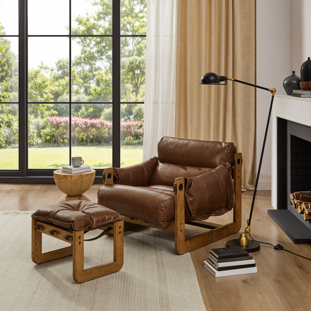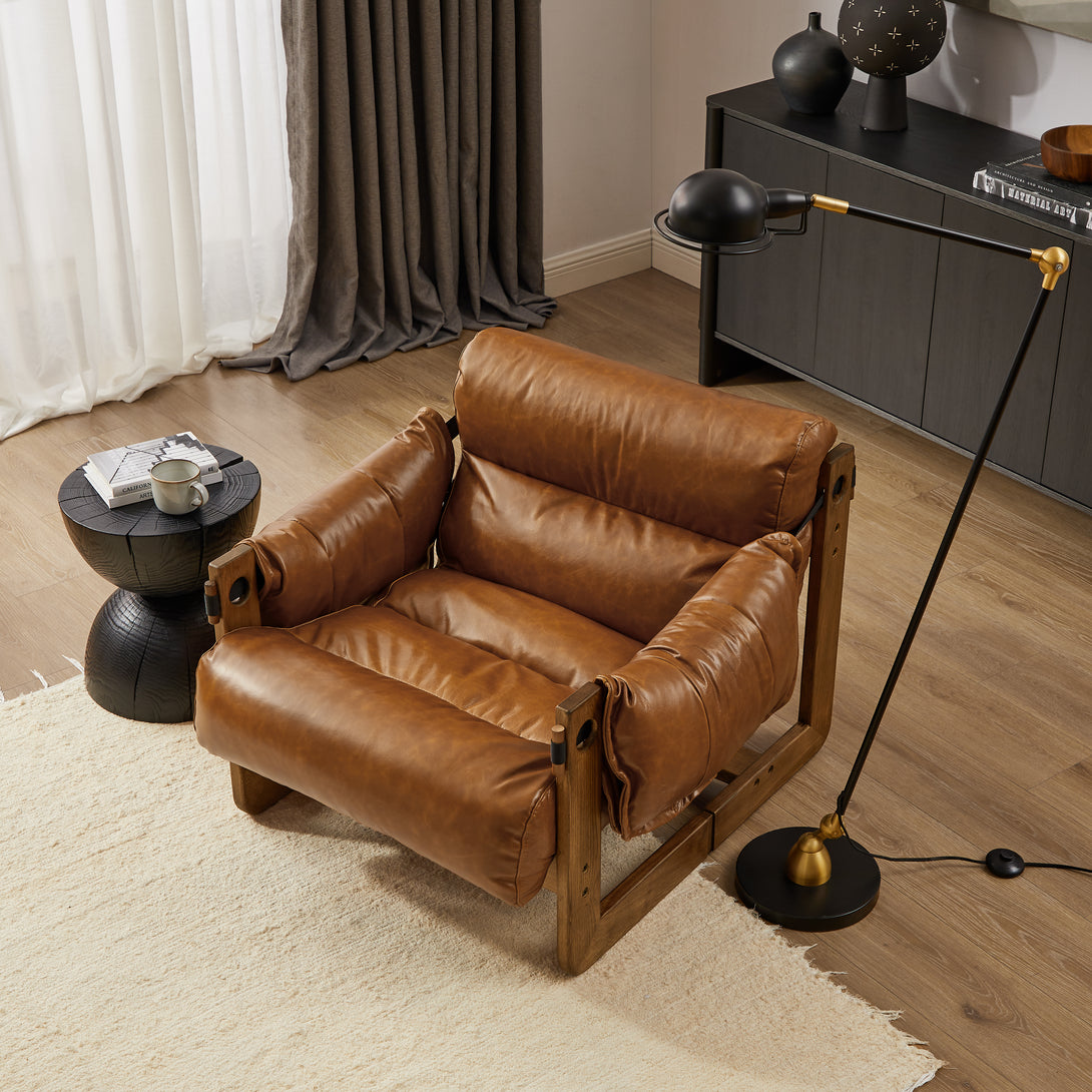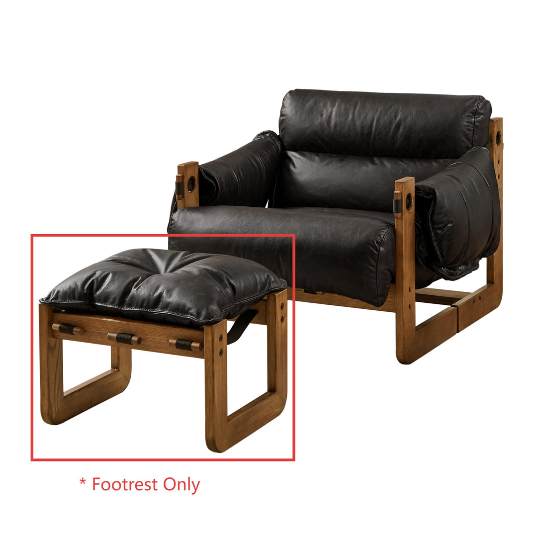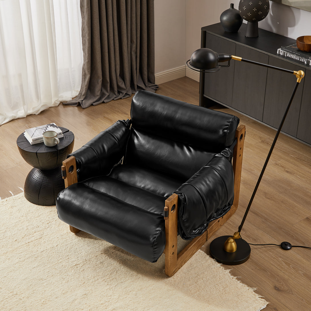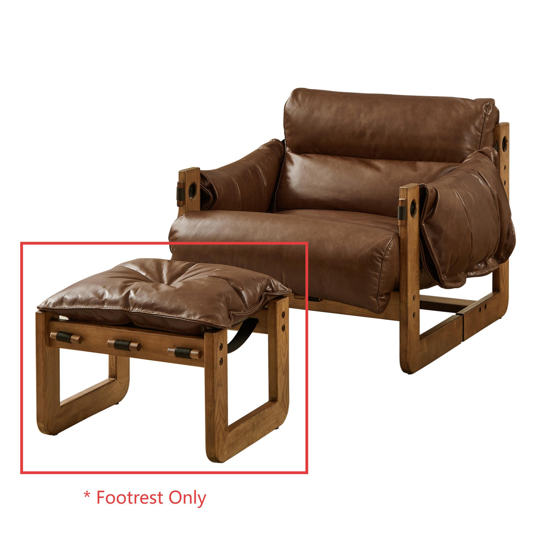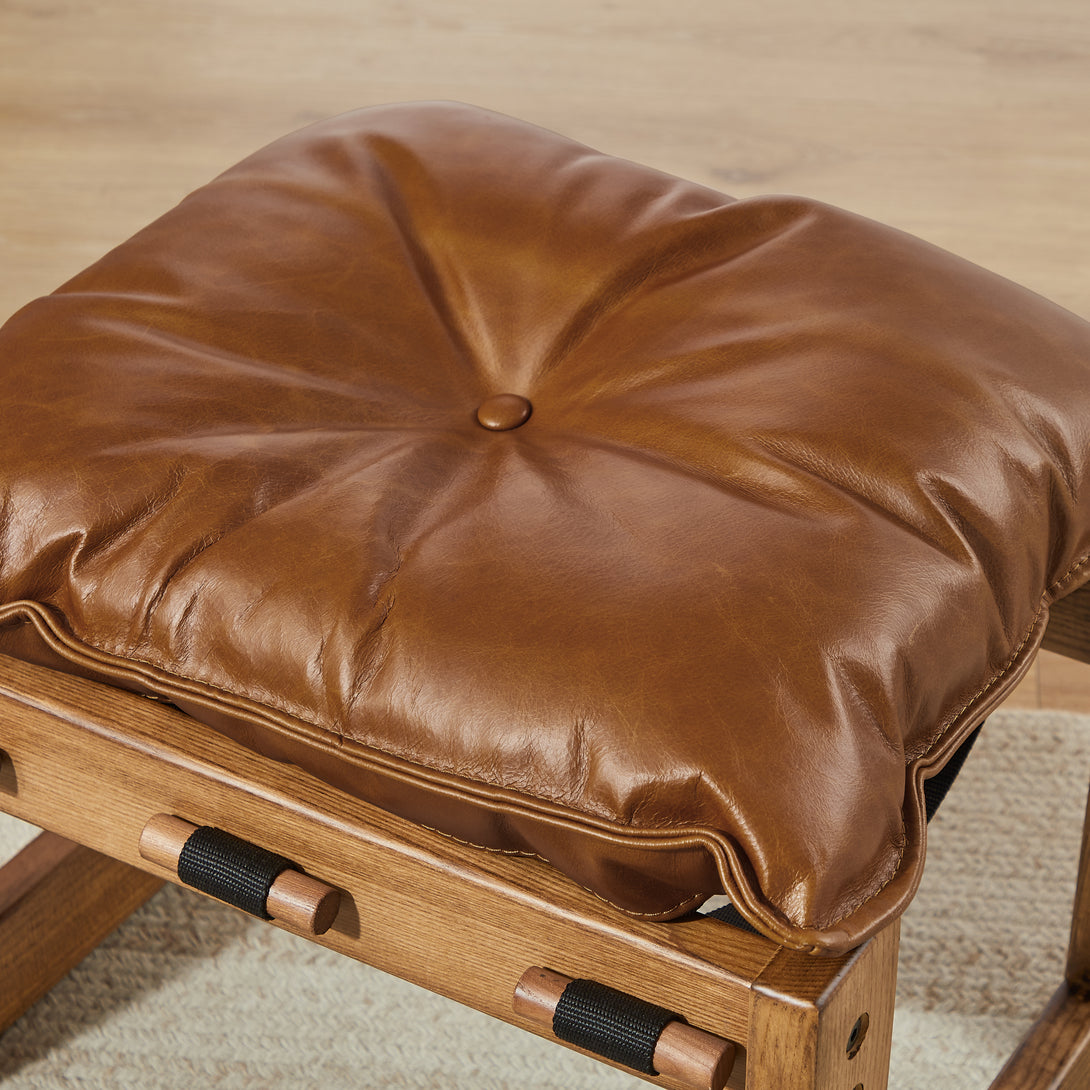 Art Leon Solid Ash Wood Leisure Chair, Top-Grain Leather Lounge Sofa with Strapped-on Cushions