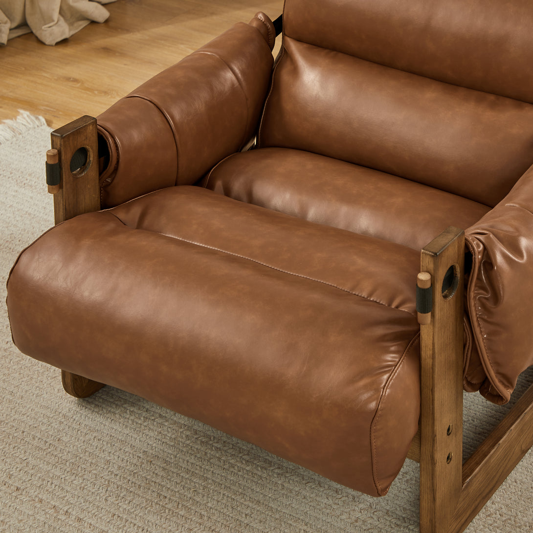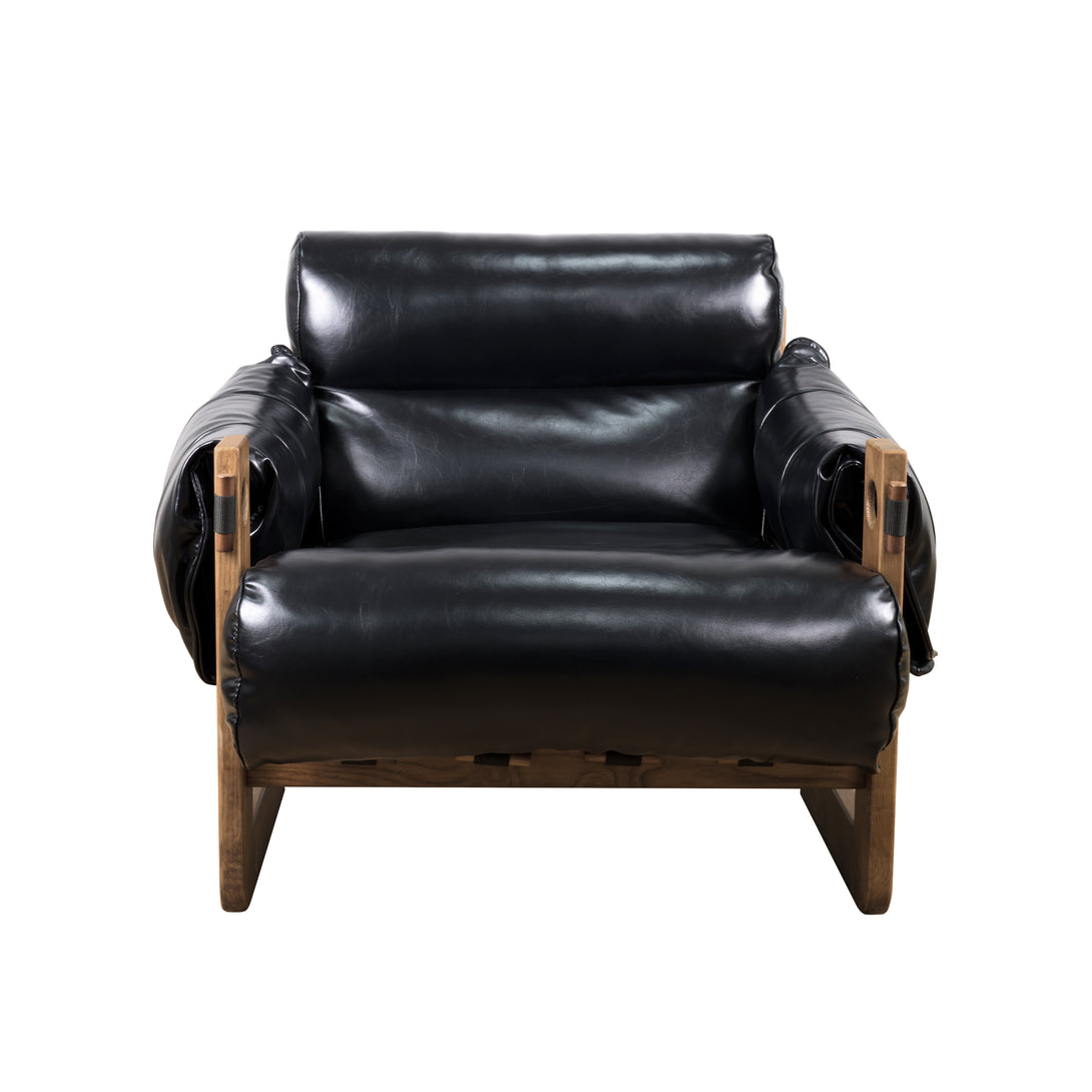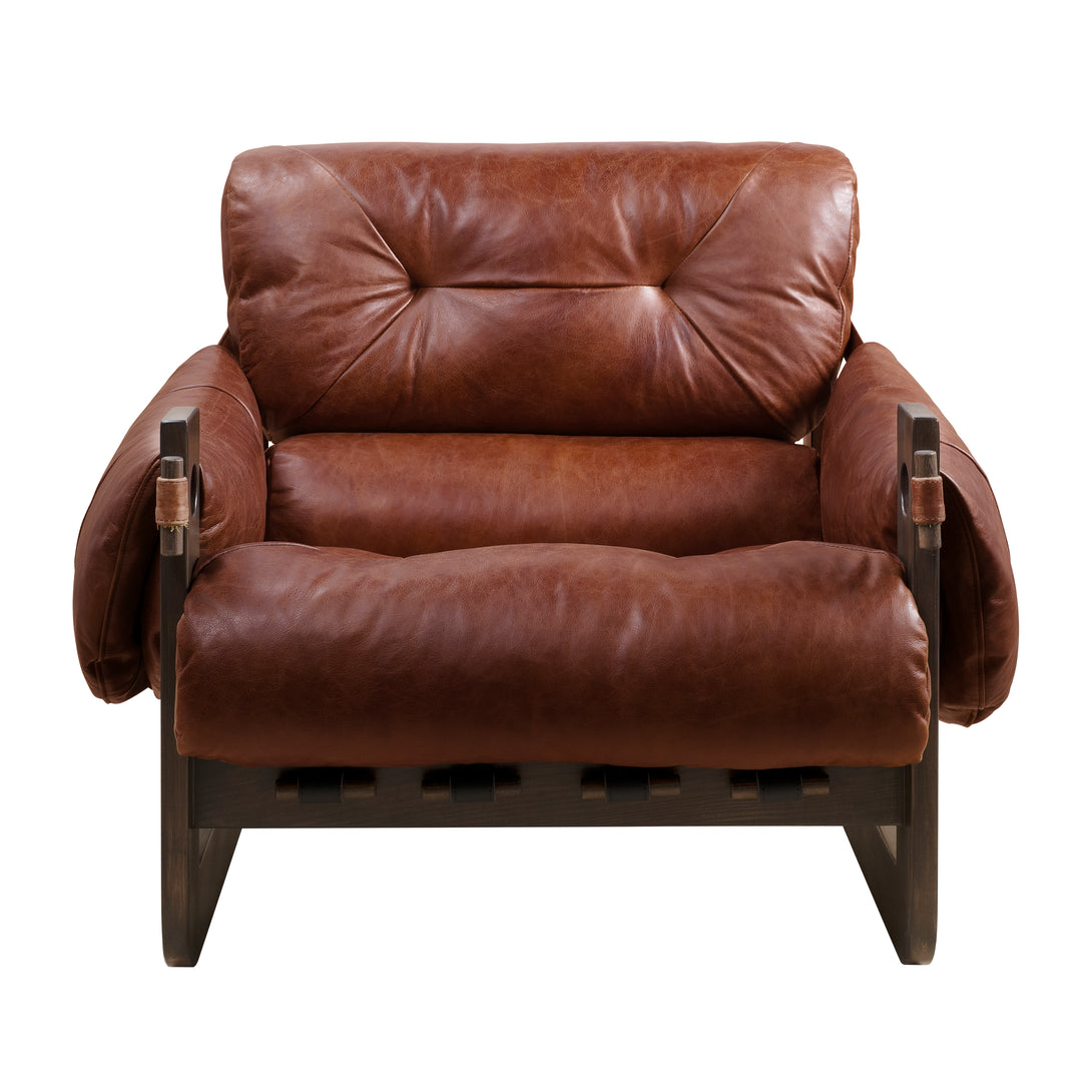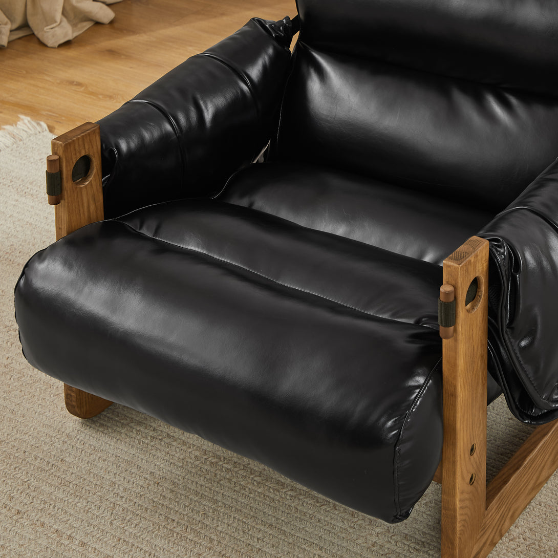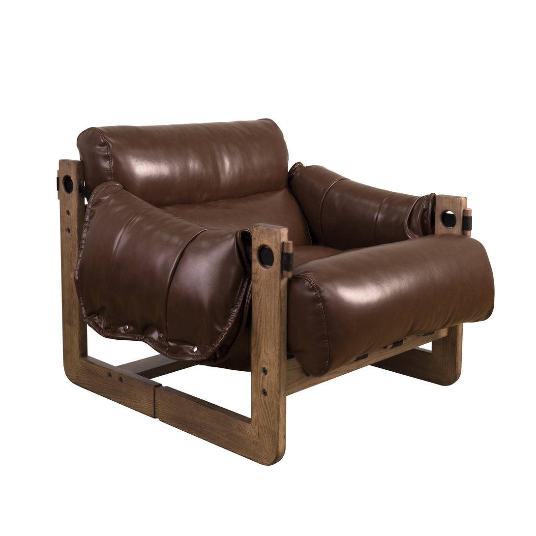 Art Leon Solid Ash Wood Leisure Chair, Top-Grain Leather Lounge Sofa with Strapped-on Cushions