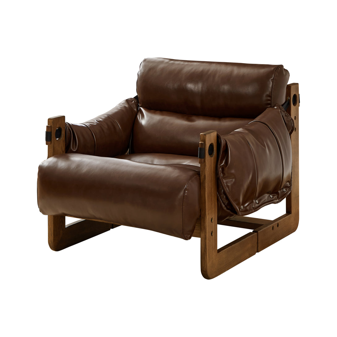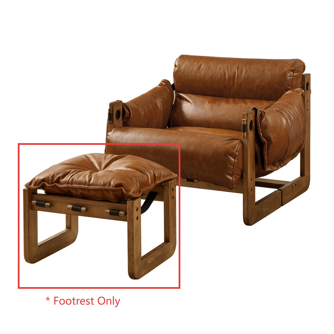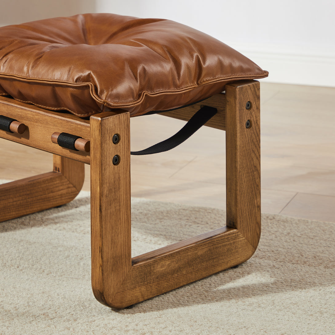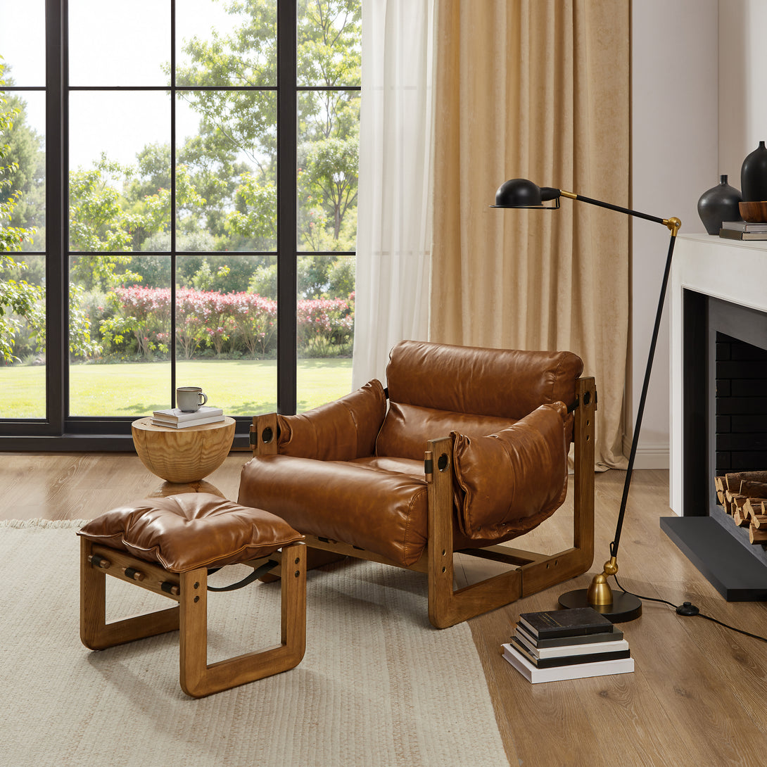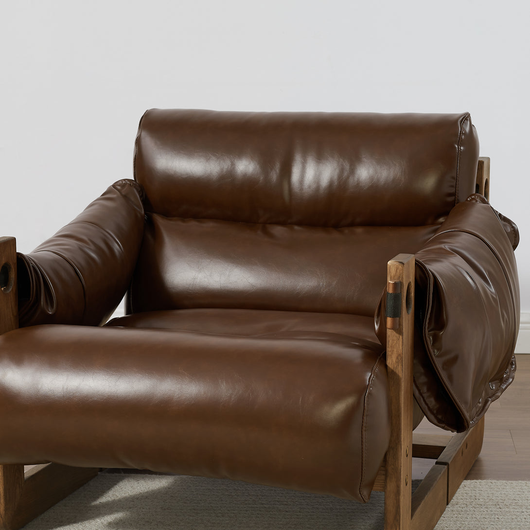 Art Leon Solid Ash Wood Leisure Chair, Top-Grain Leather Lounge Sofa with Strapped-on Cushions