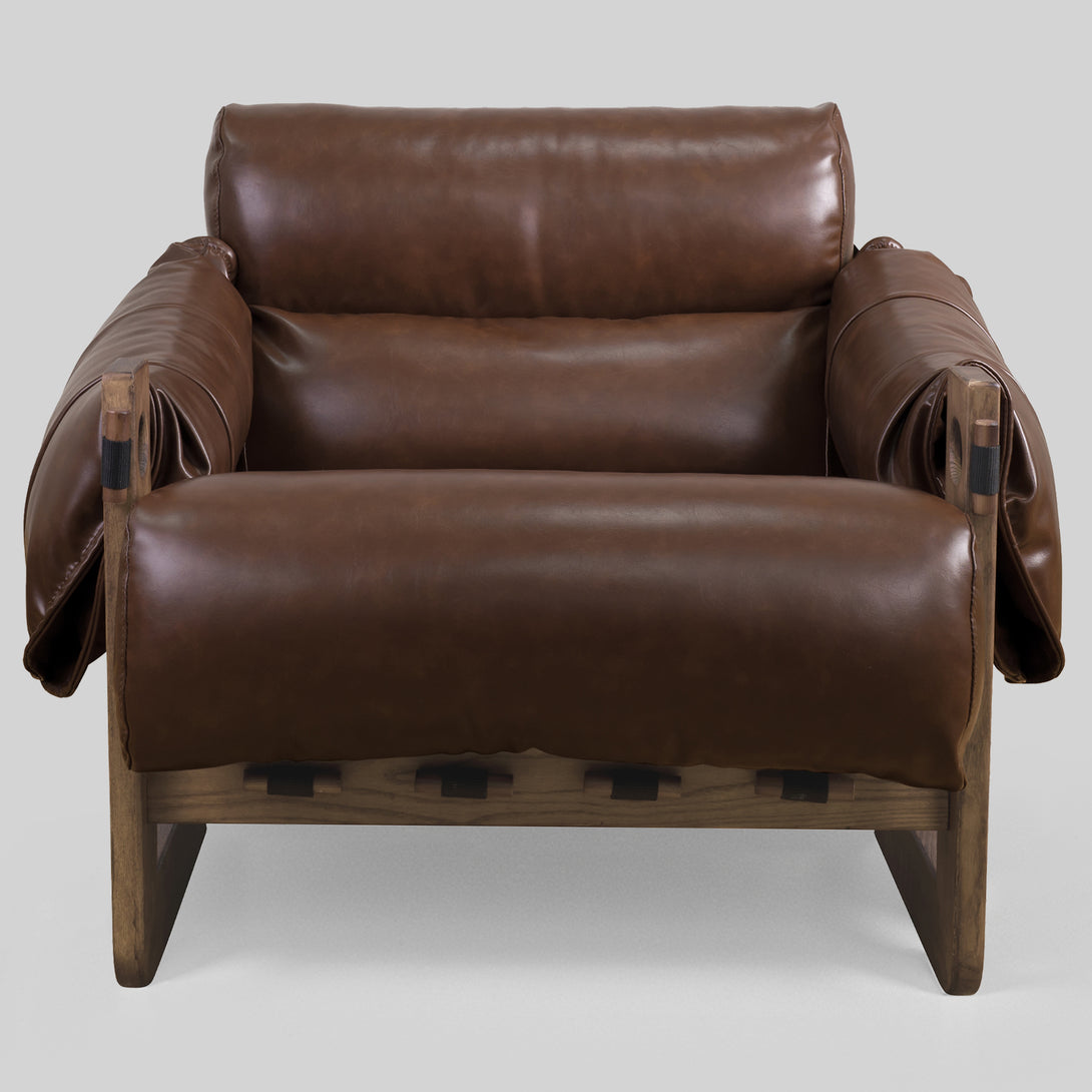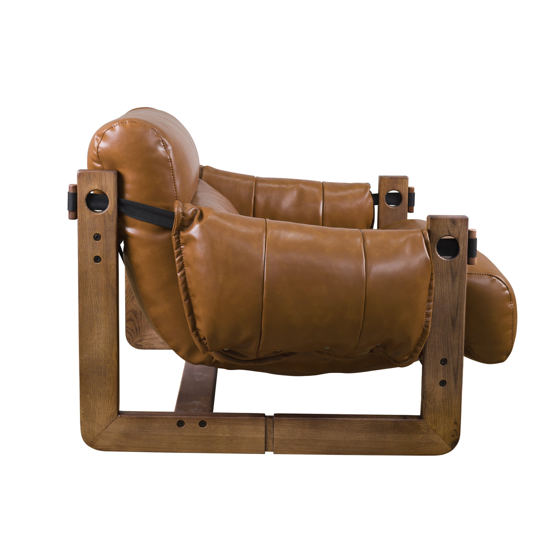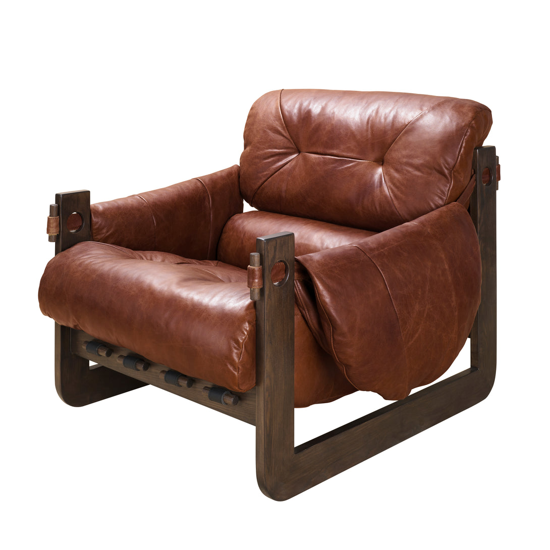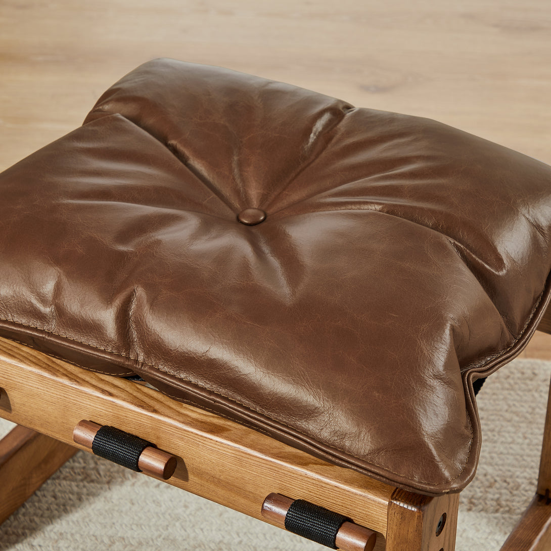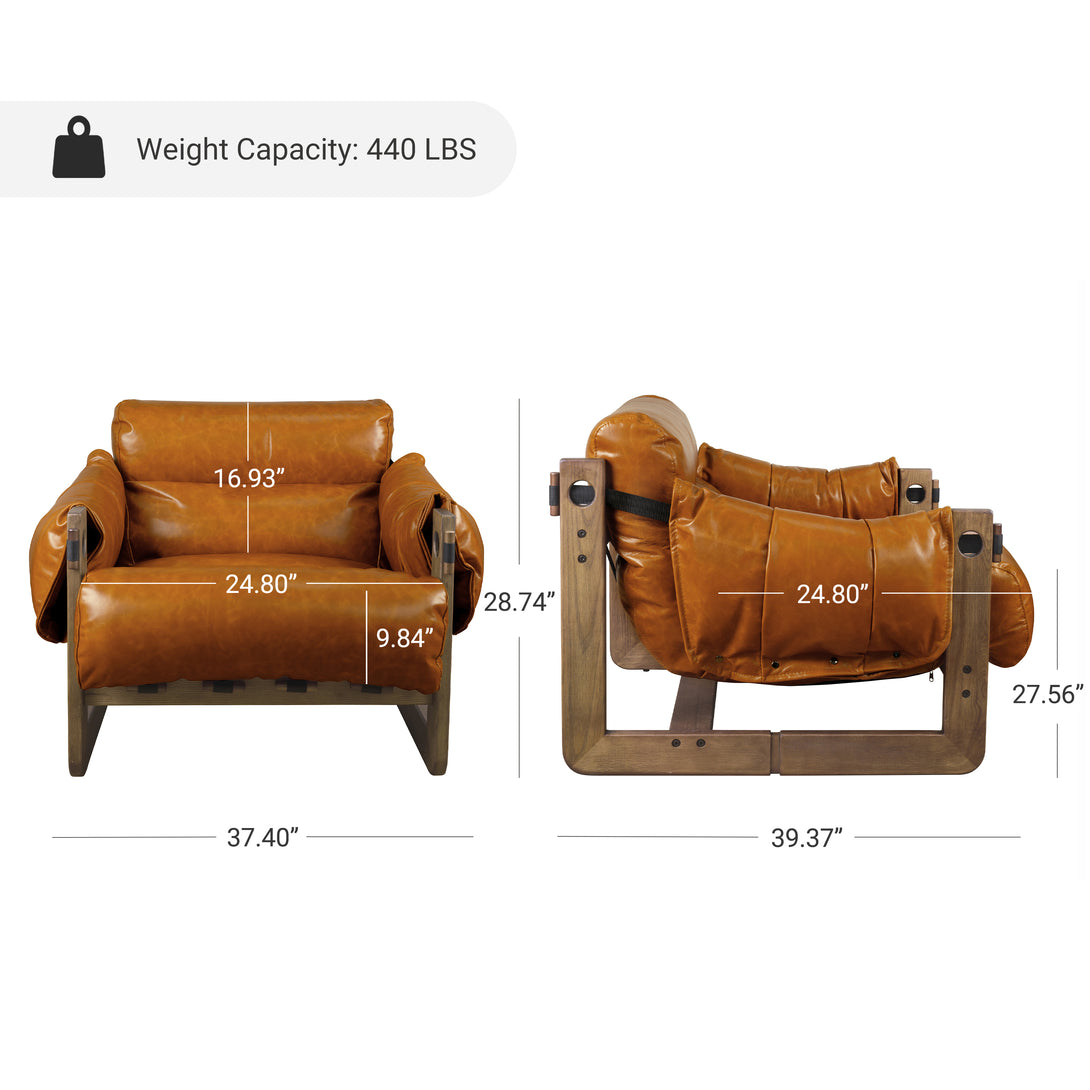 Art Leon Solid Ash Wood Leisure Chair, Top-Grain Leather Lounge Sofa with Strapped-on Cushions