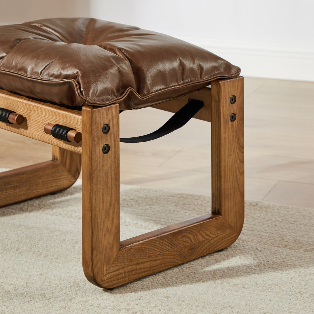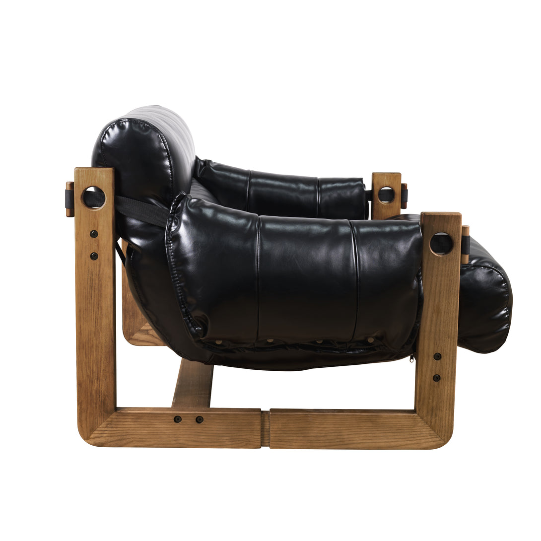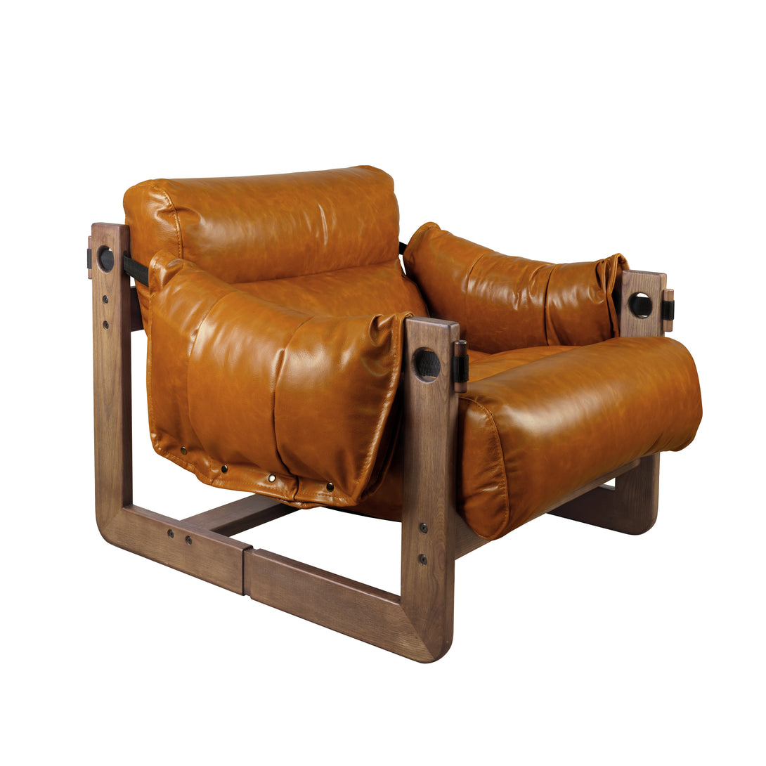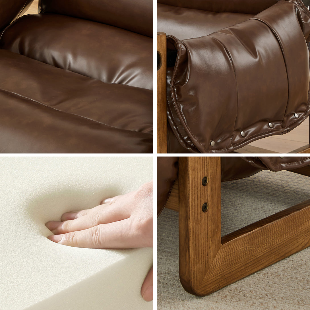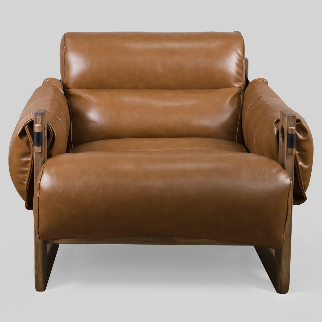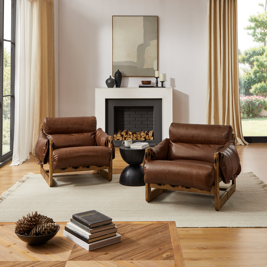Art Leon Solid Ash Wood Leisure Chair, Top-Grain Leather Lounge Sofa with Strapped-on Cushions