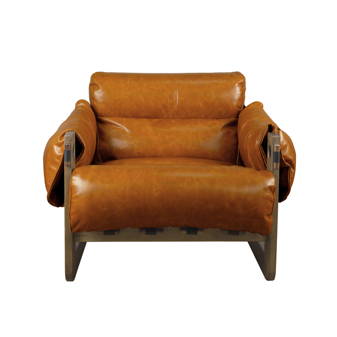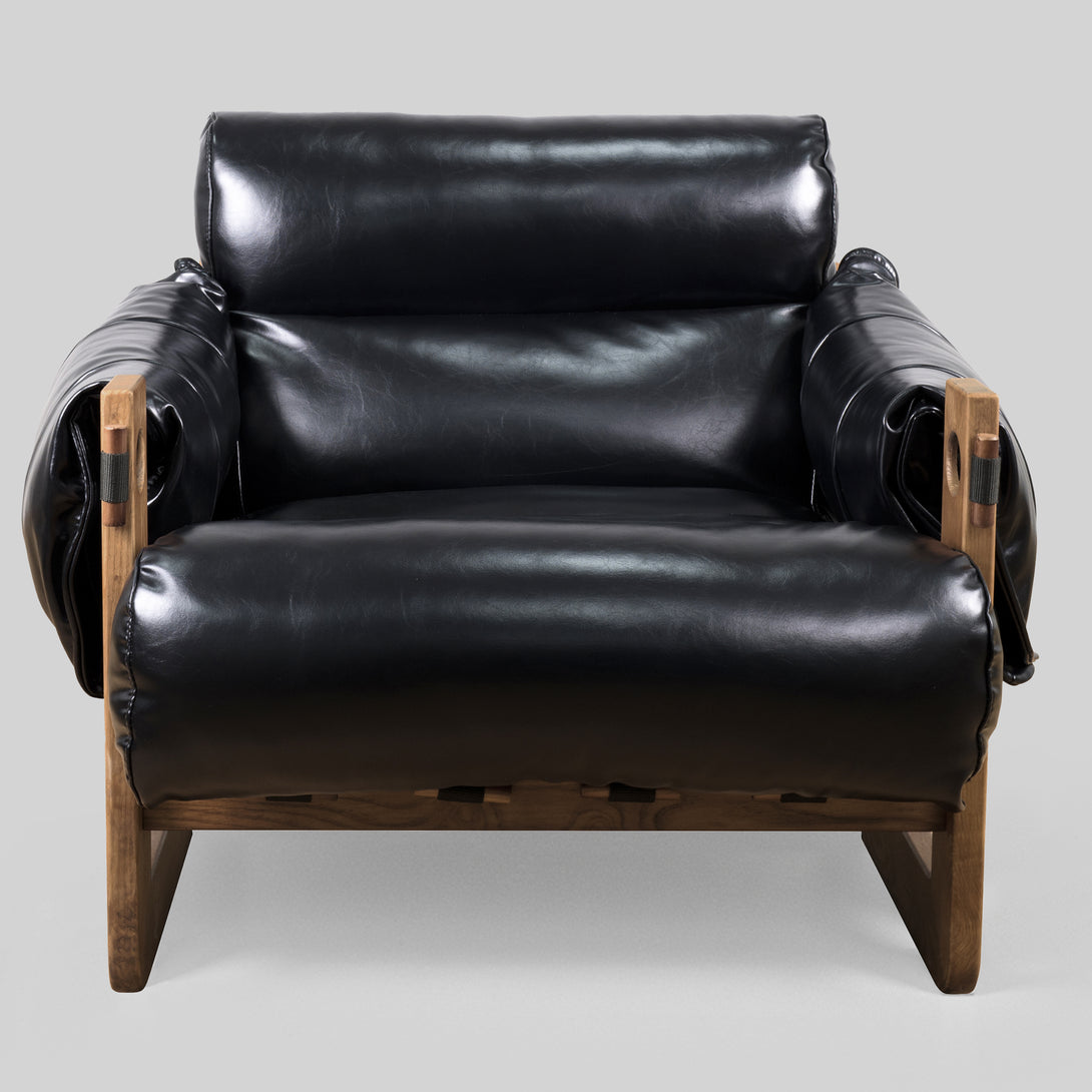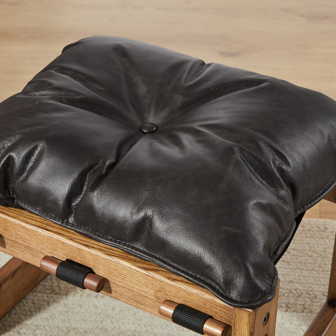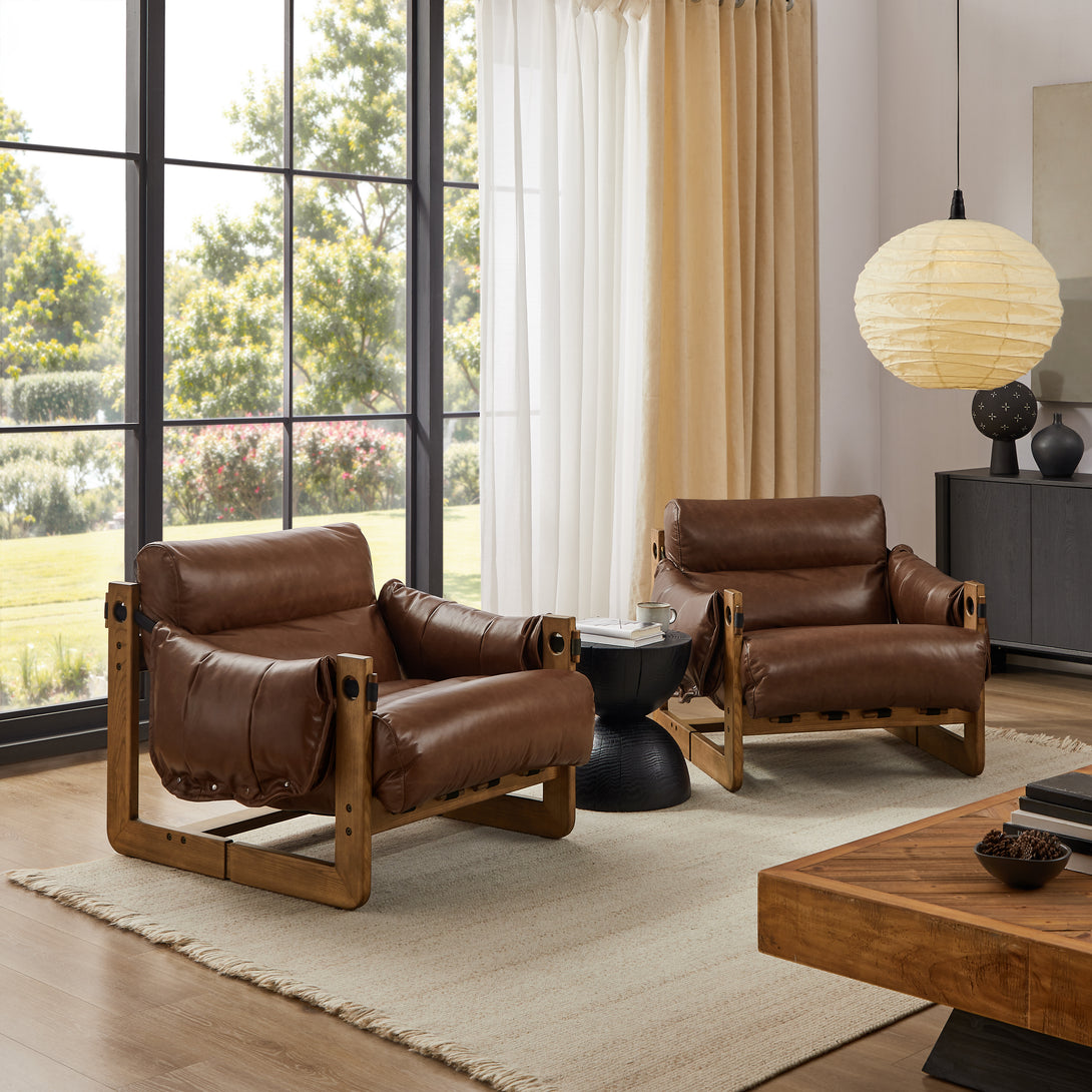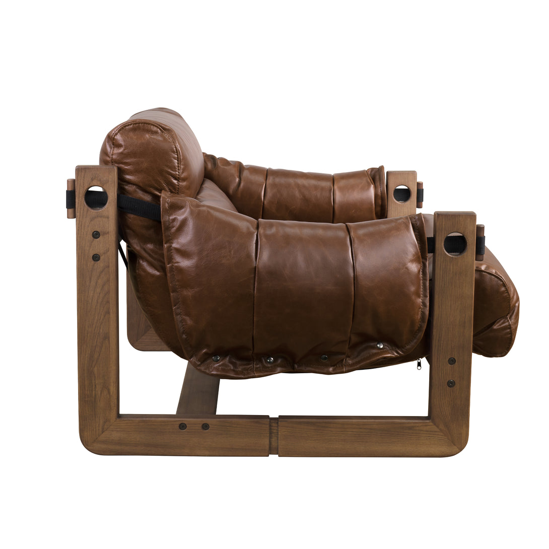 Art Leon Solid Ash Wood Leisure Chair, Top-Grain Leather Lounge Sofa with Strapped-on Cushions