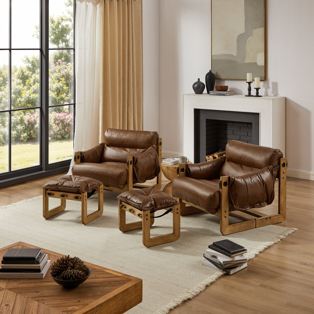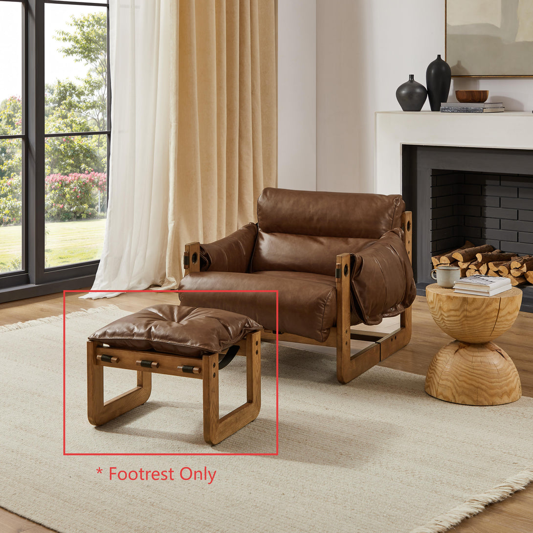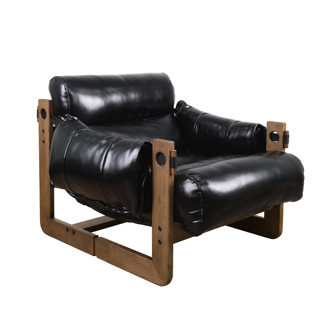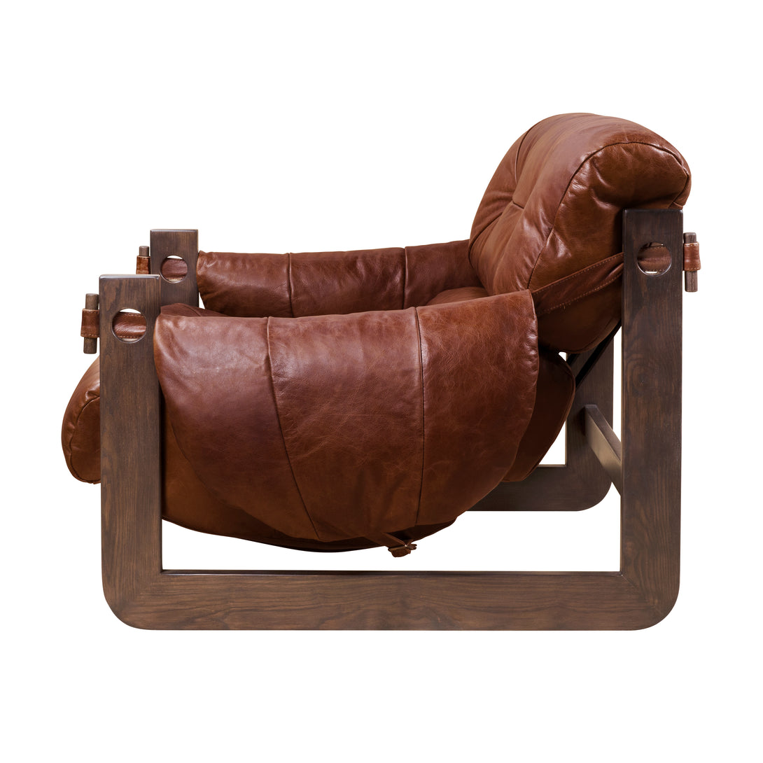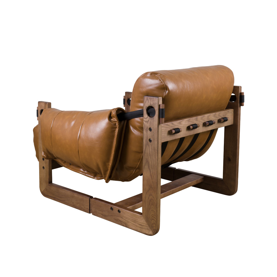 Art Leon Solid Ash Wood Leisure Chair, Top-Grain Leather Lounge Sofa with Strapped-on Cushions
