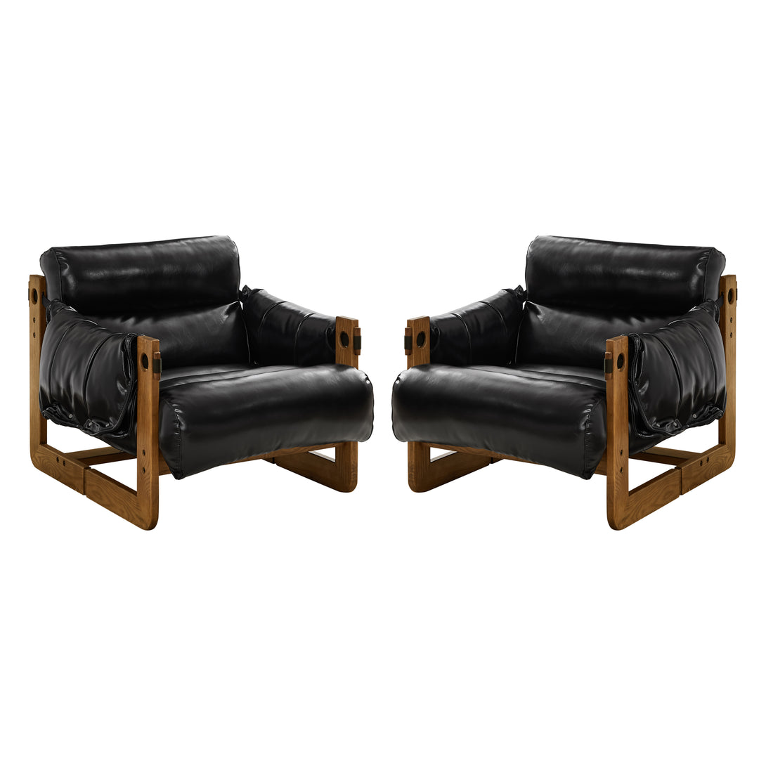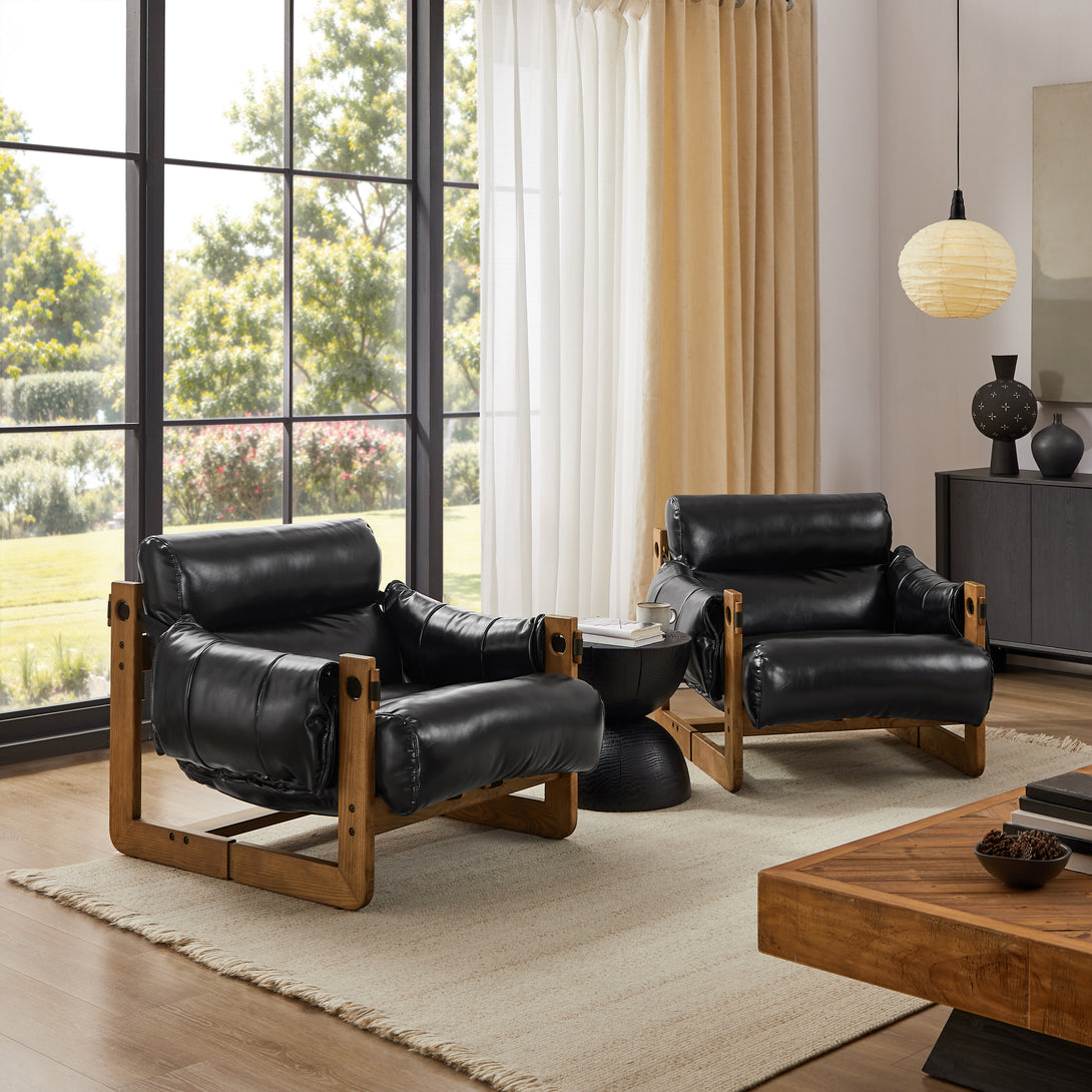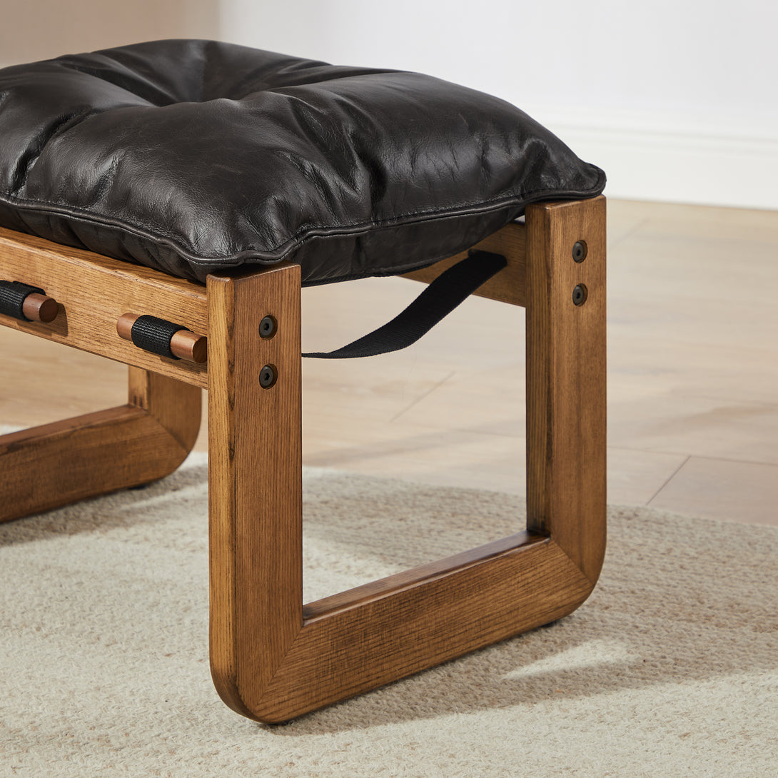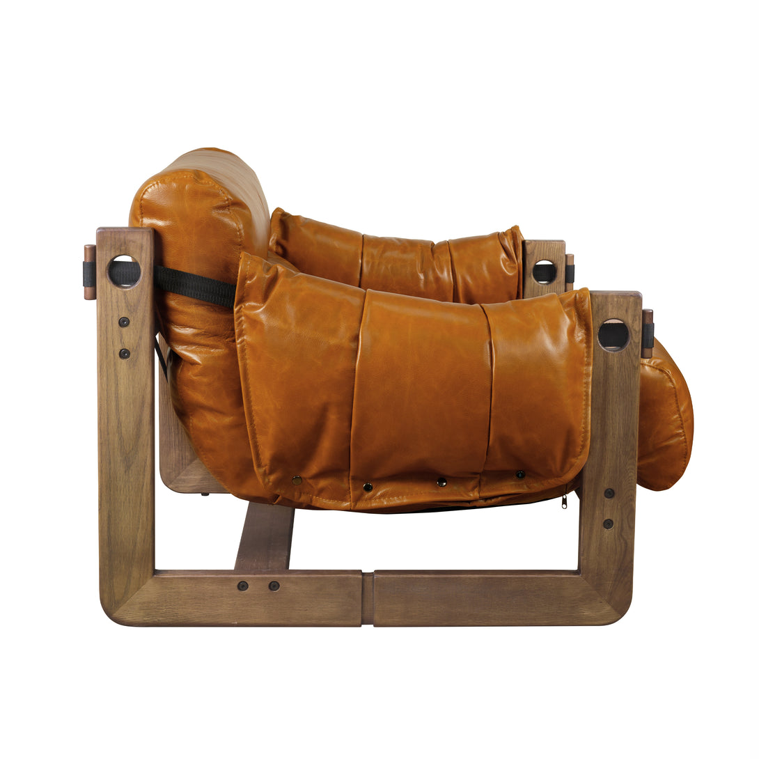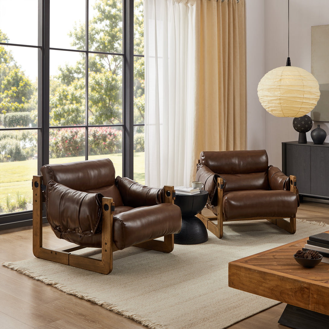 Art Leon Solid Ash Wood Leisure Chair, Top-Grain Leather Lounge Sofa with Strapped-on Cushions