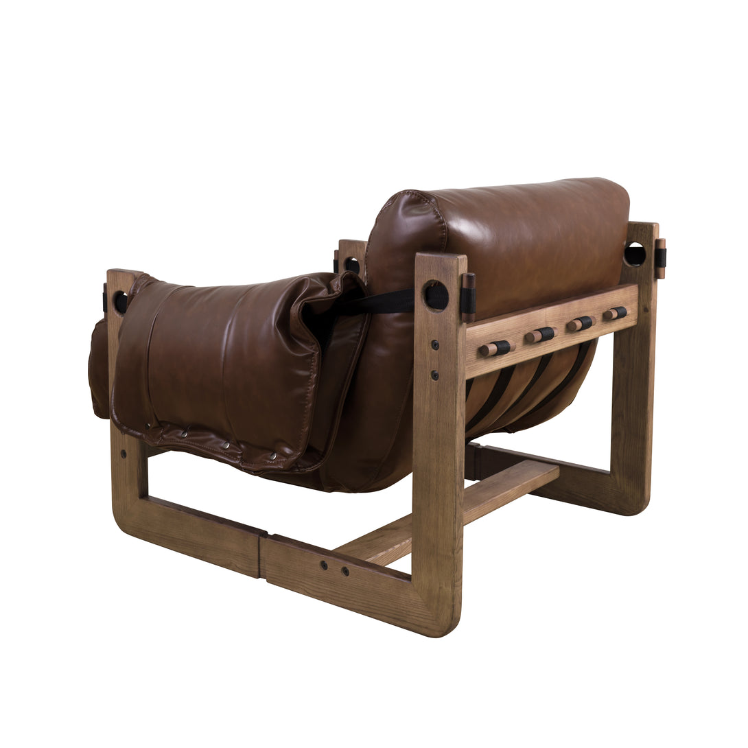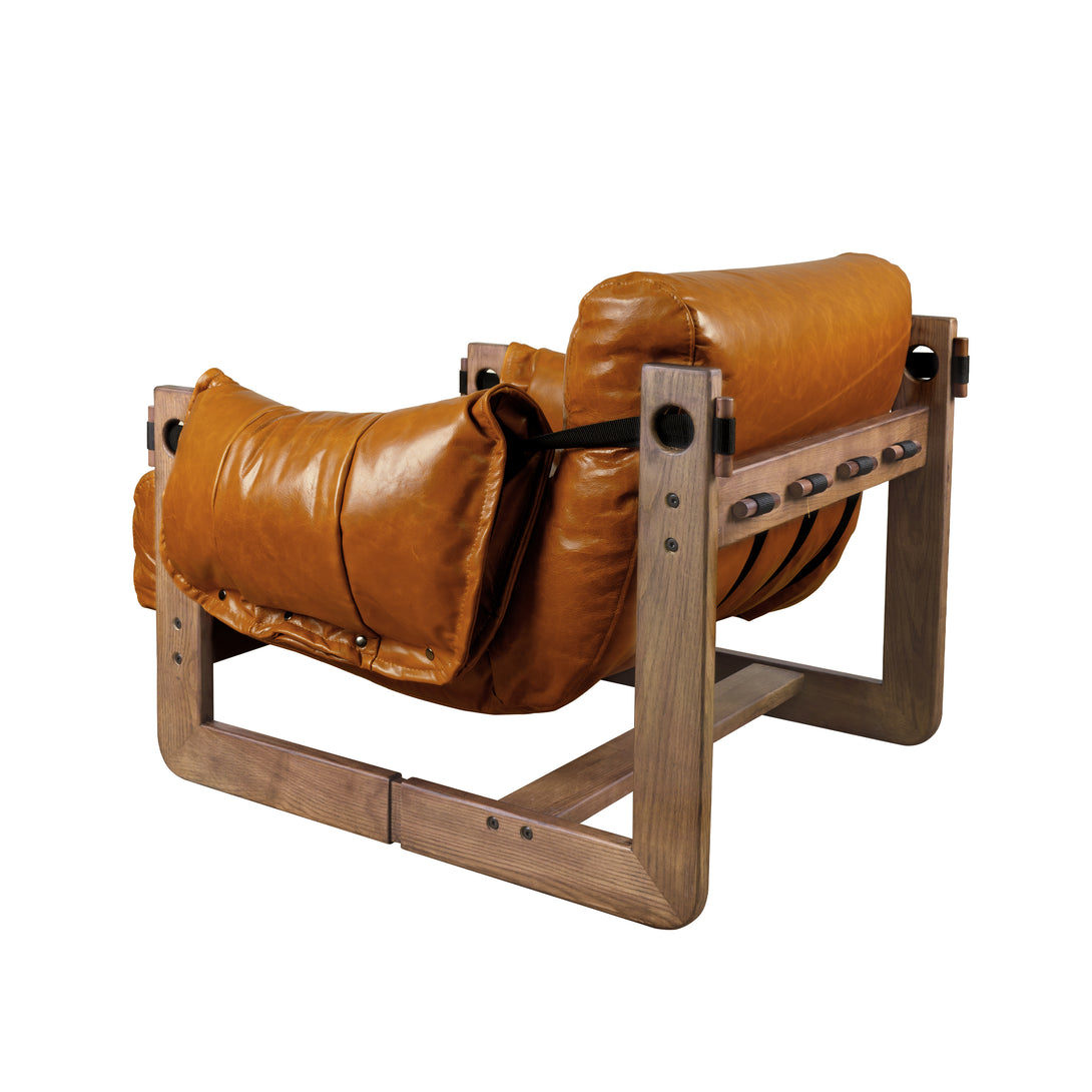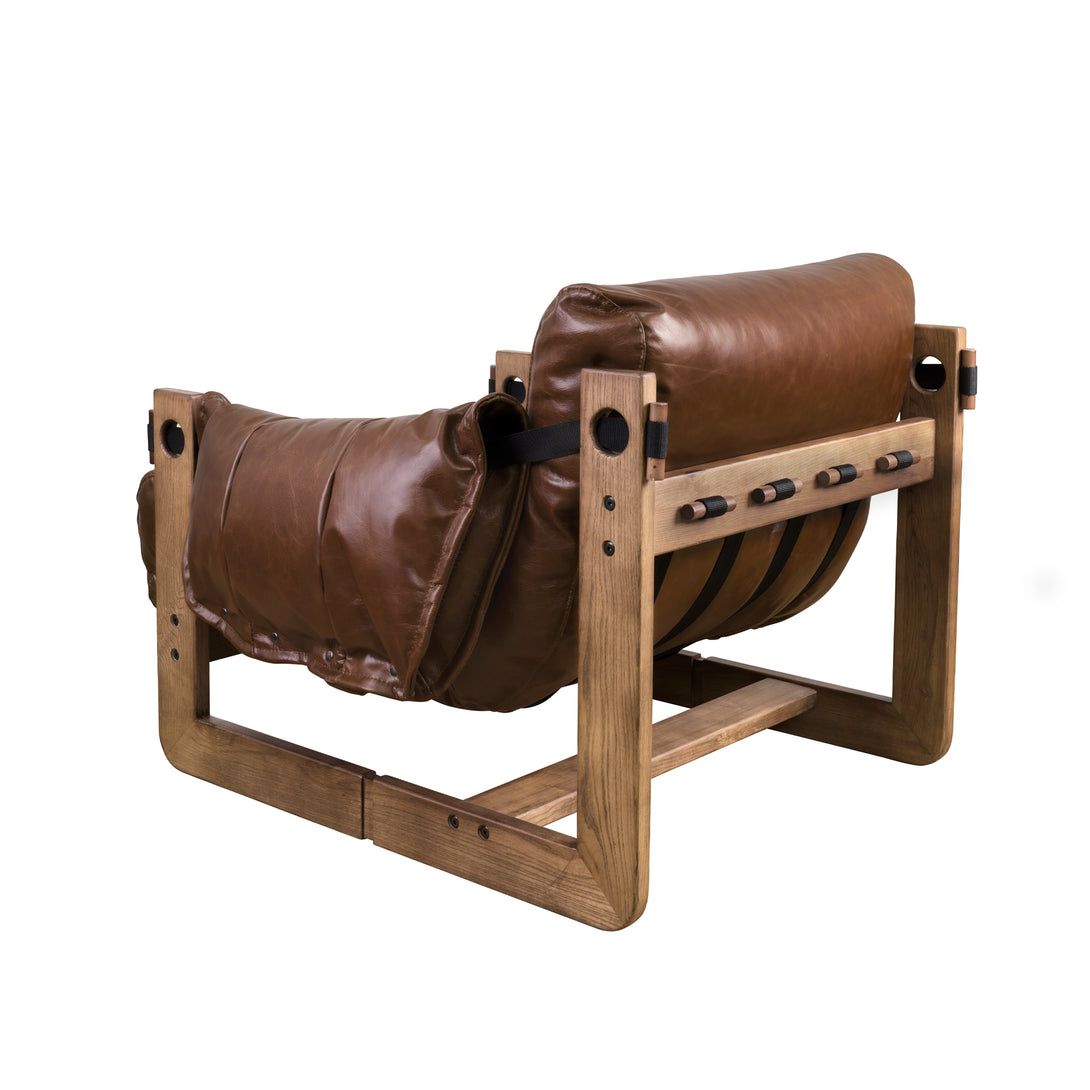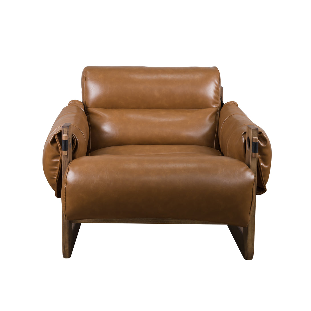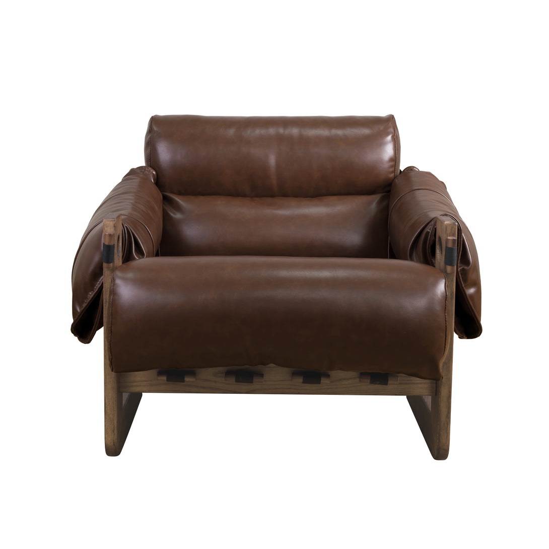 Art Leon Solid Ash Wood Leisure Chair, Top-Grain Leather Lounge Sofa with Strapped-on Cushions