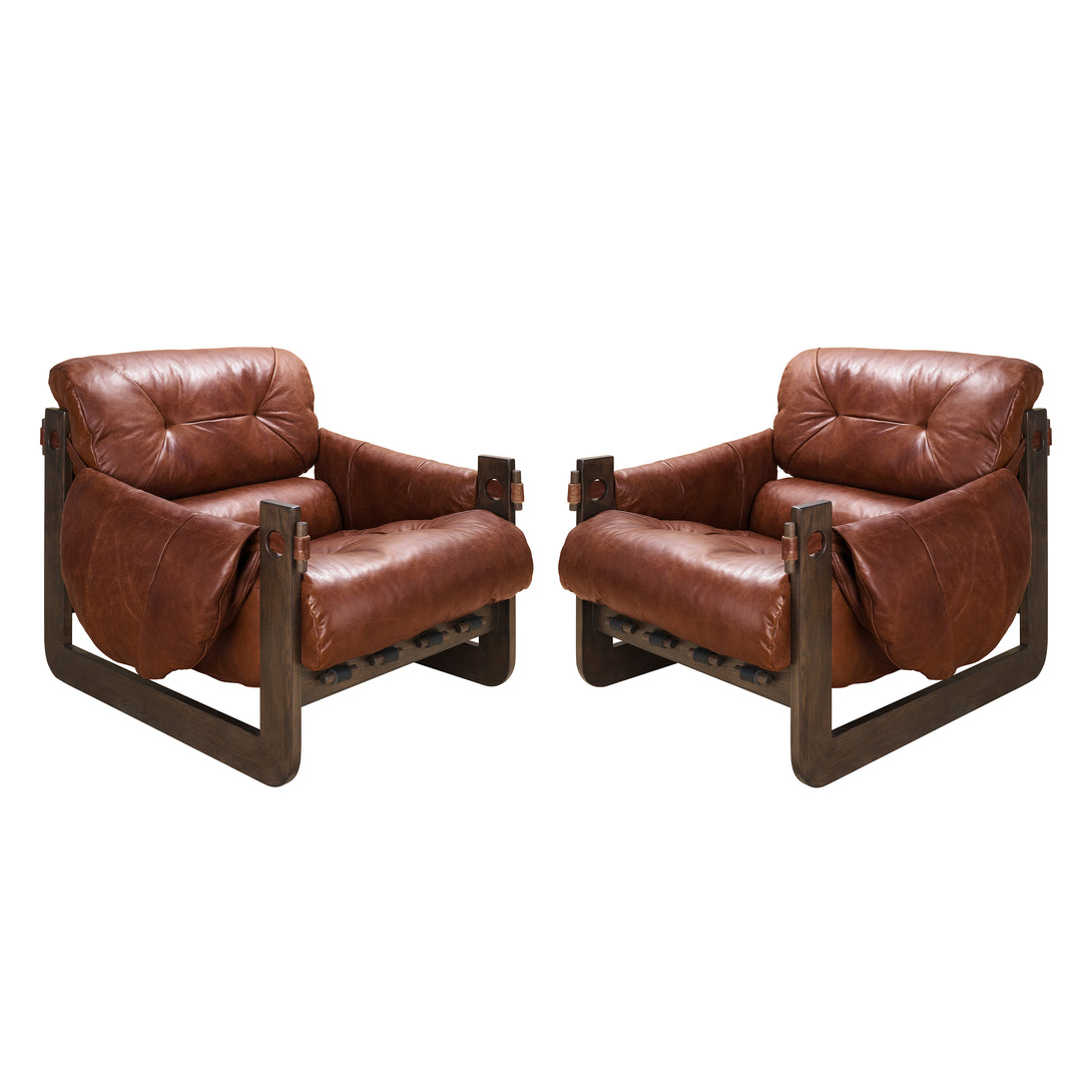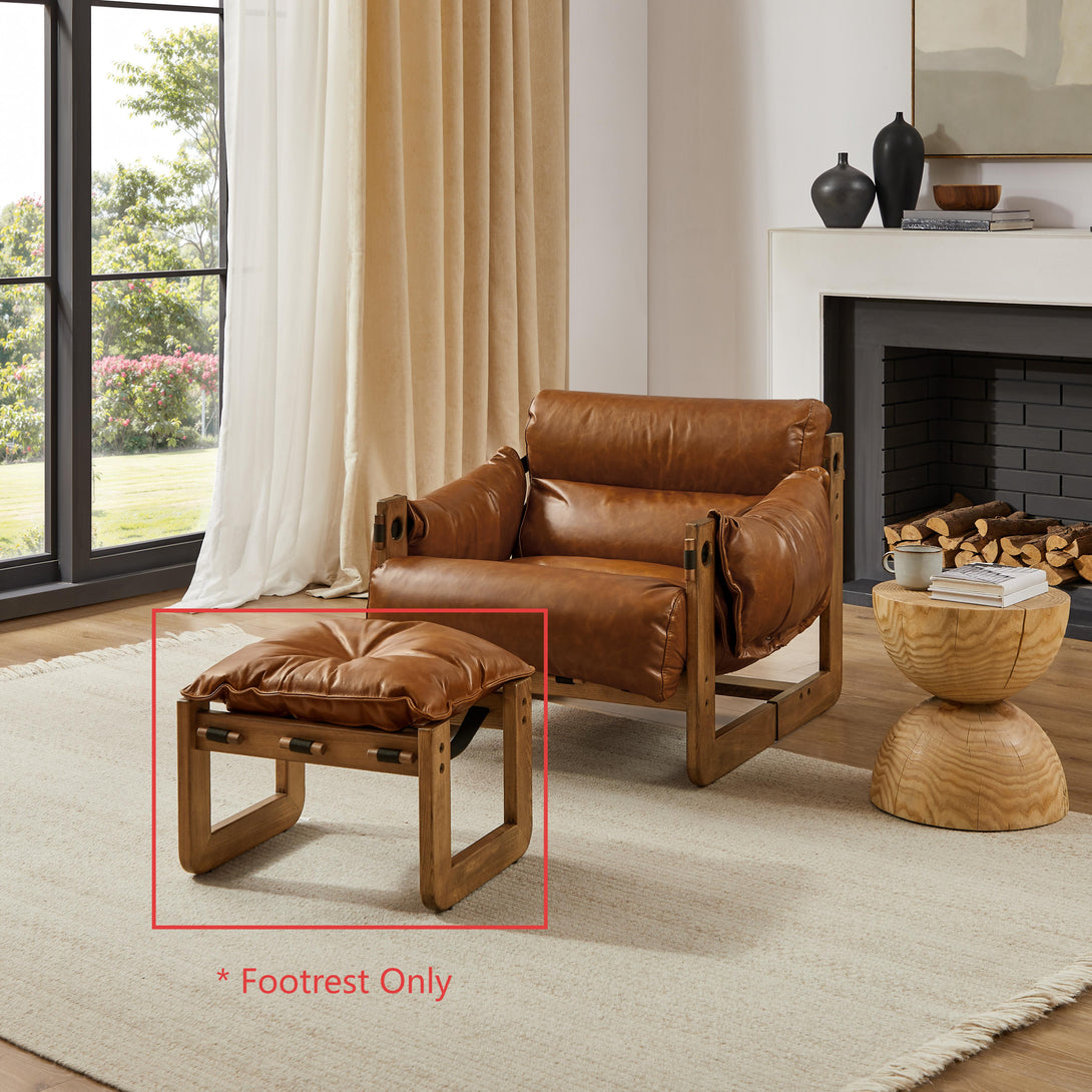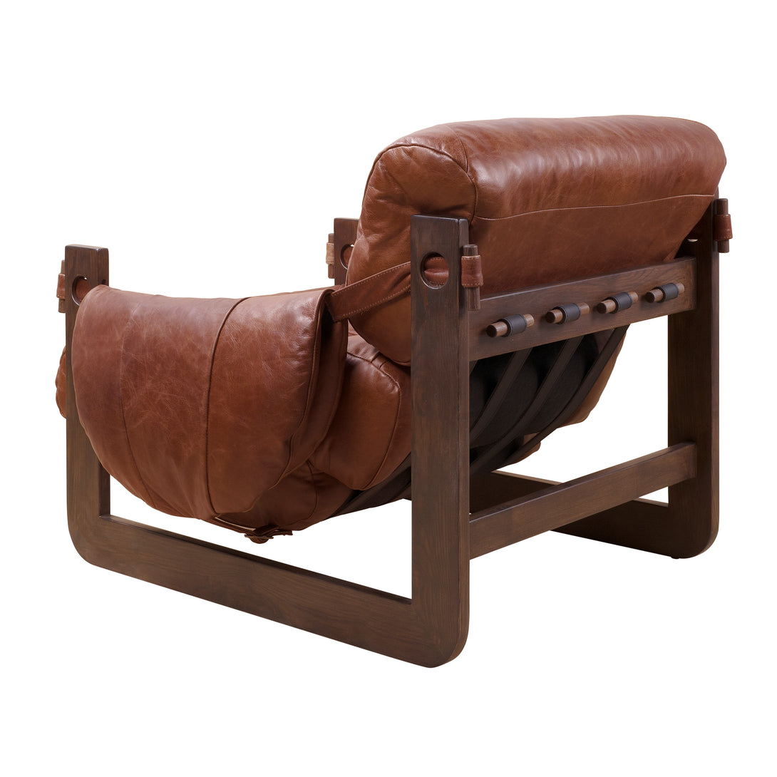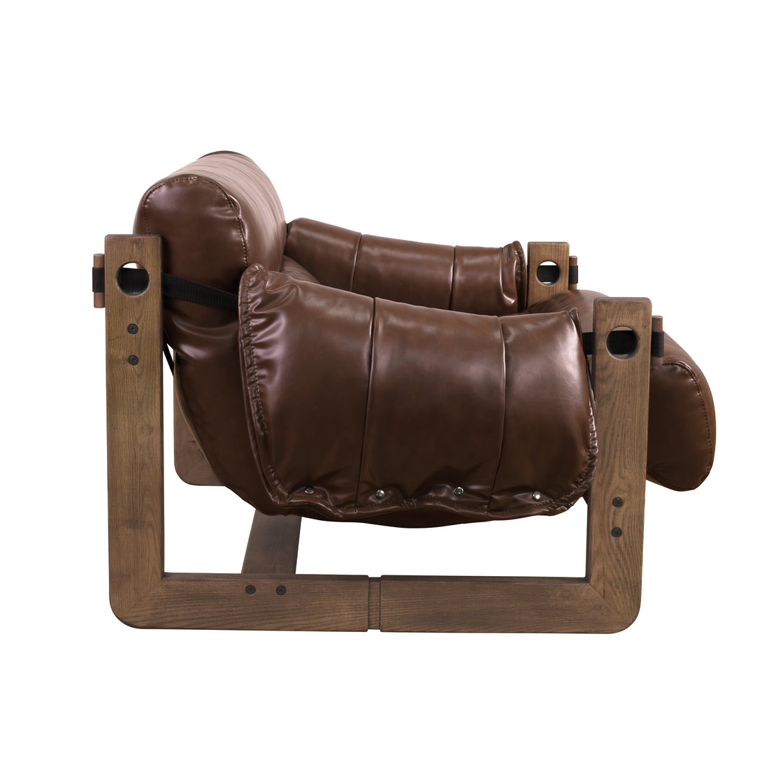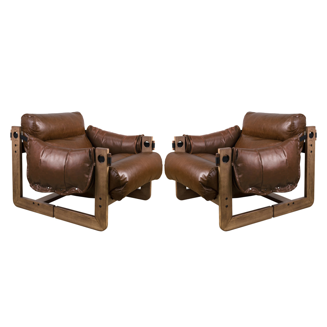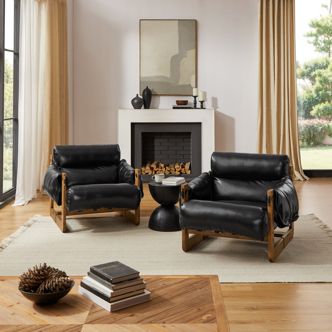 Art Leon Solid Ash Wood Leisure Chair, Top-Grain Leather Lounge Sofa with Strapped-on Cushions