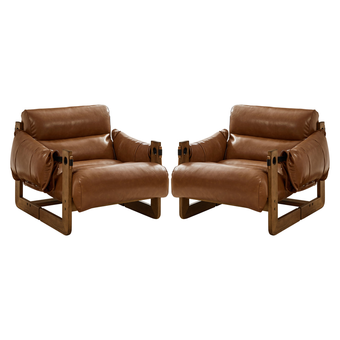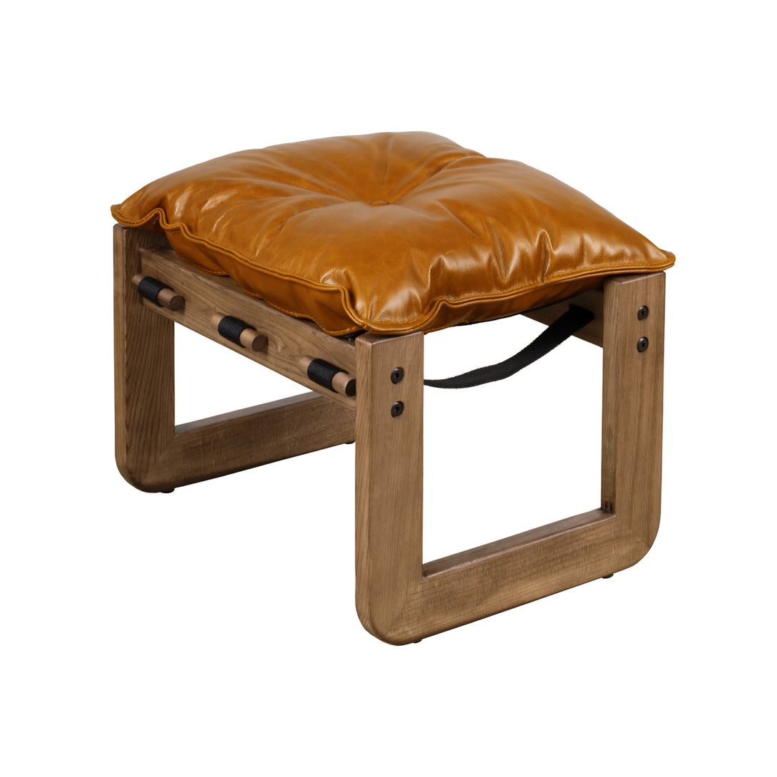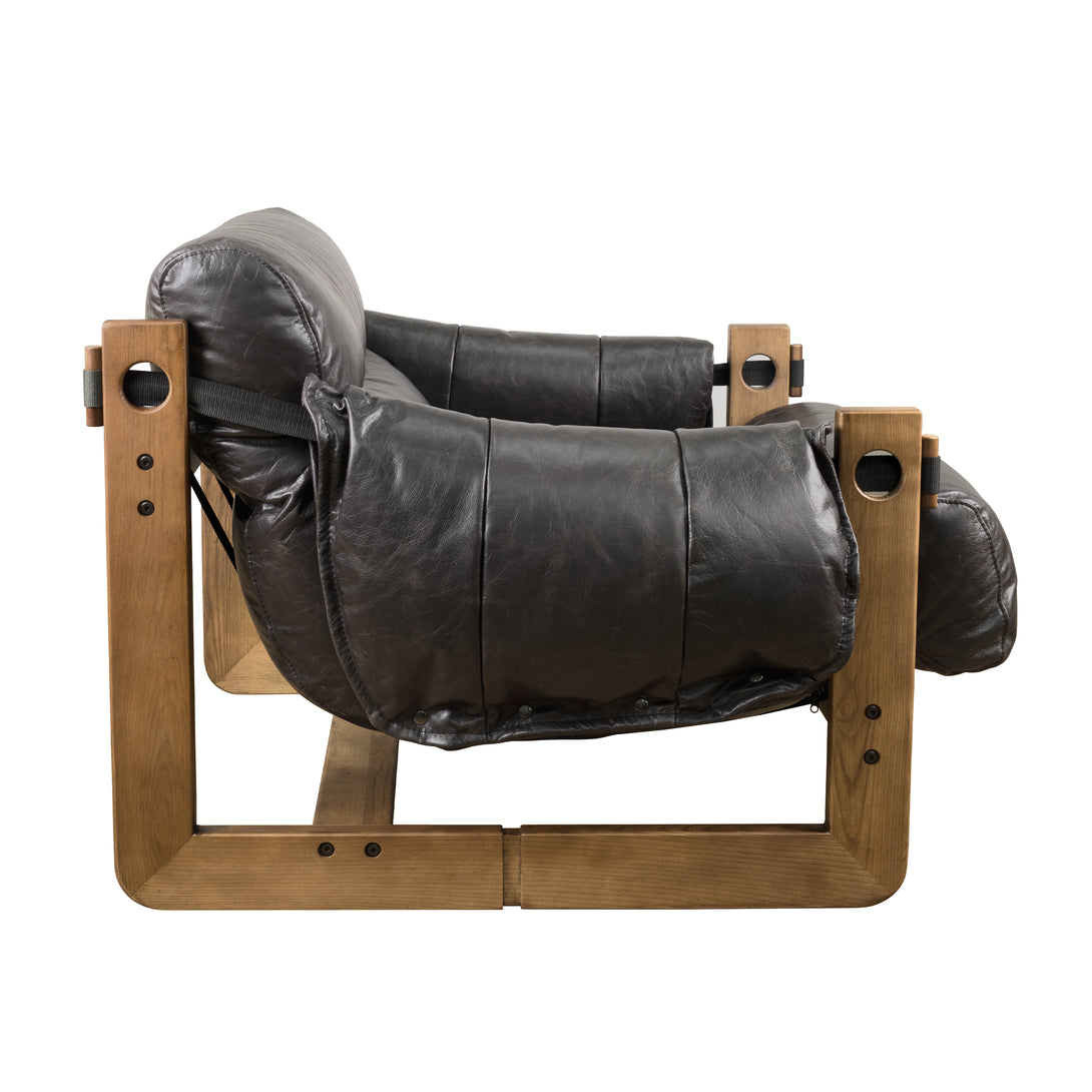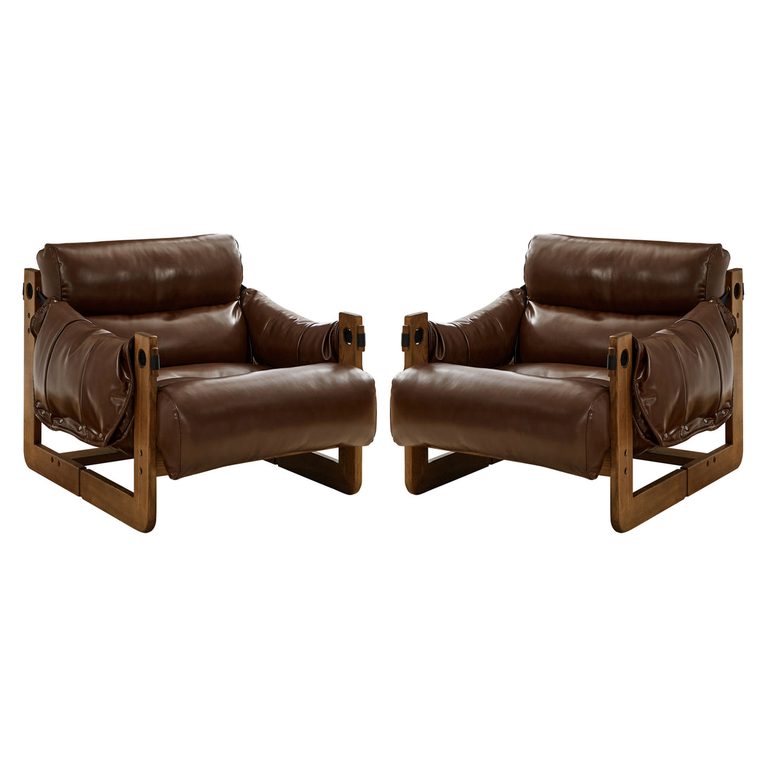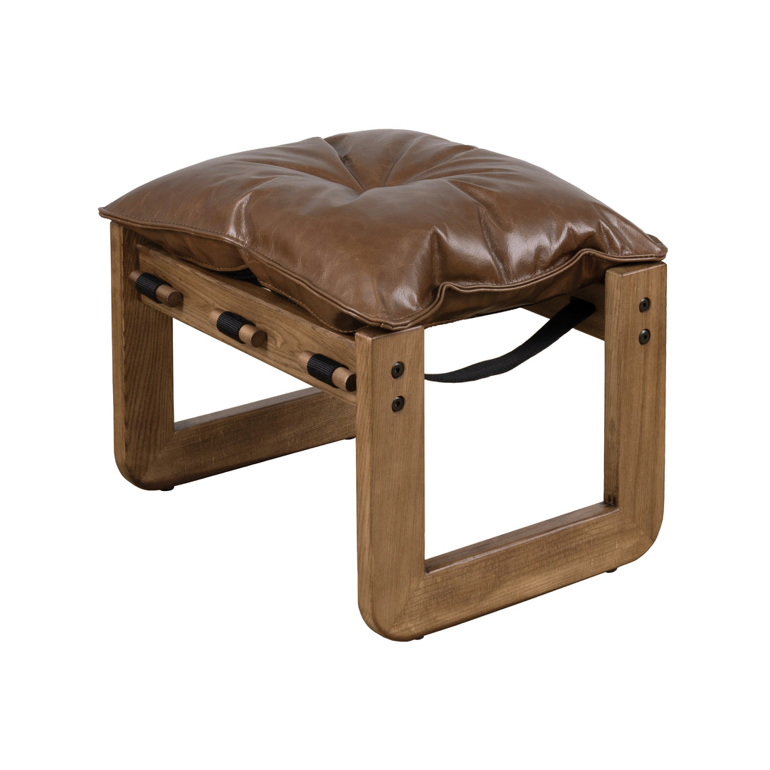 Art Leon Solid Ash Wood Leisure Chair, Top-Grain Leather Lounge Sofa with Strapped-on Cushions