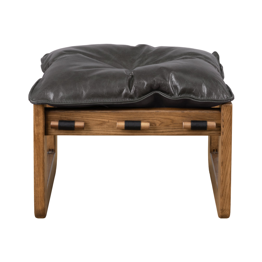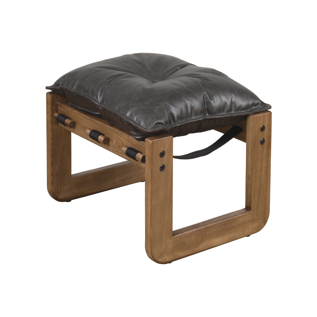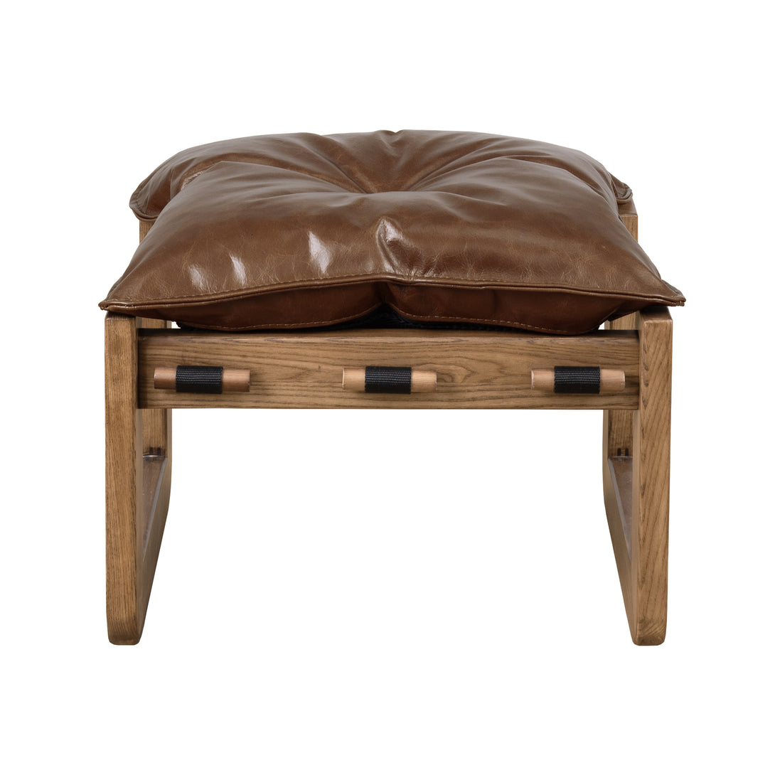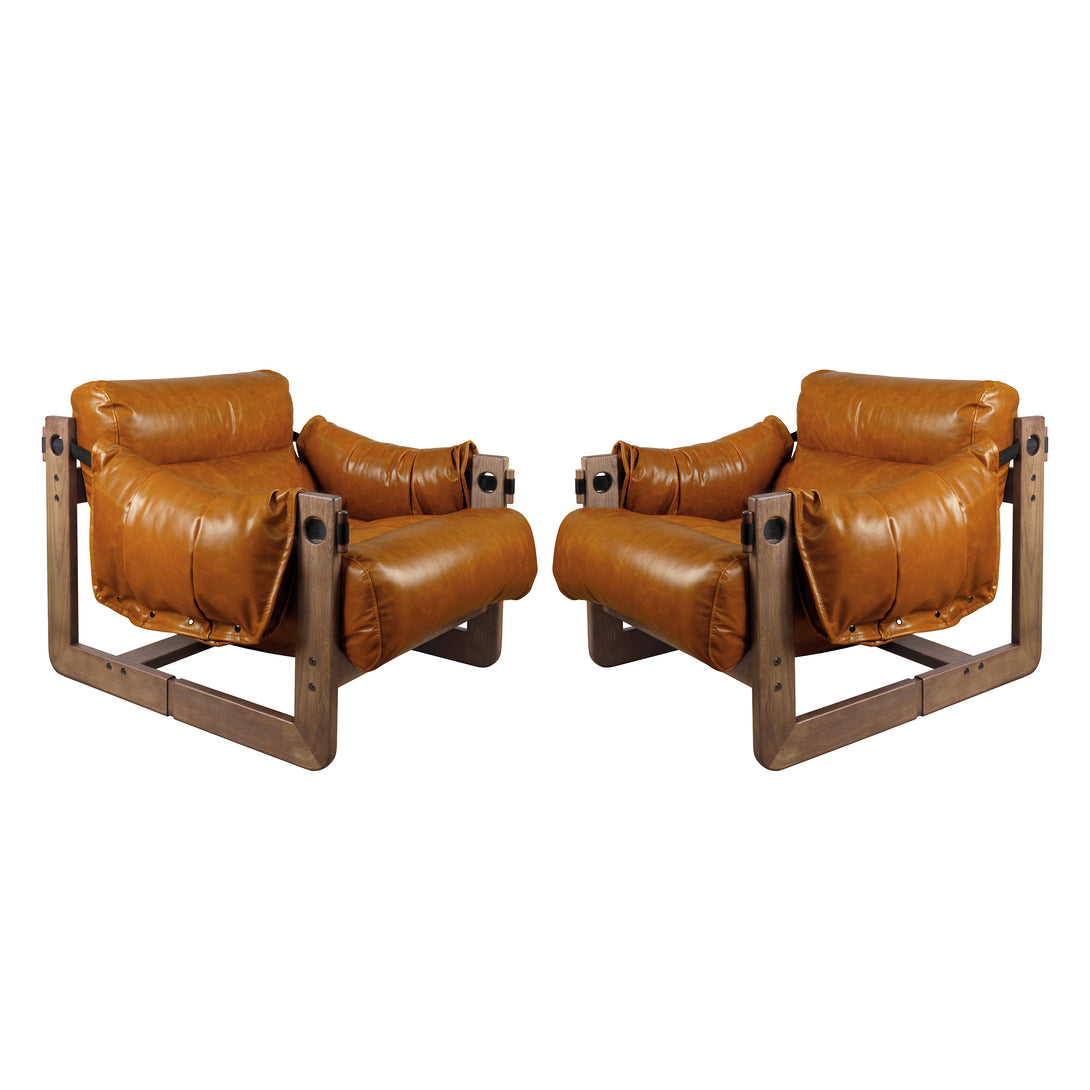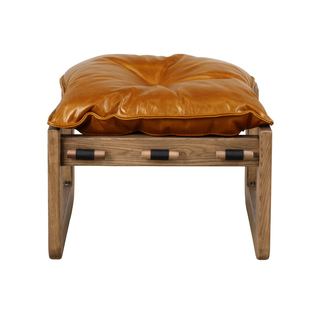 Art Leon Solid Ash Wood Leisure Chair, Top-Grain Leather Lounge Sofa with Strapped-on Cushions