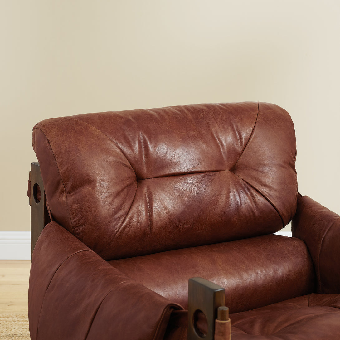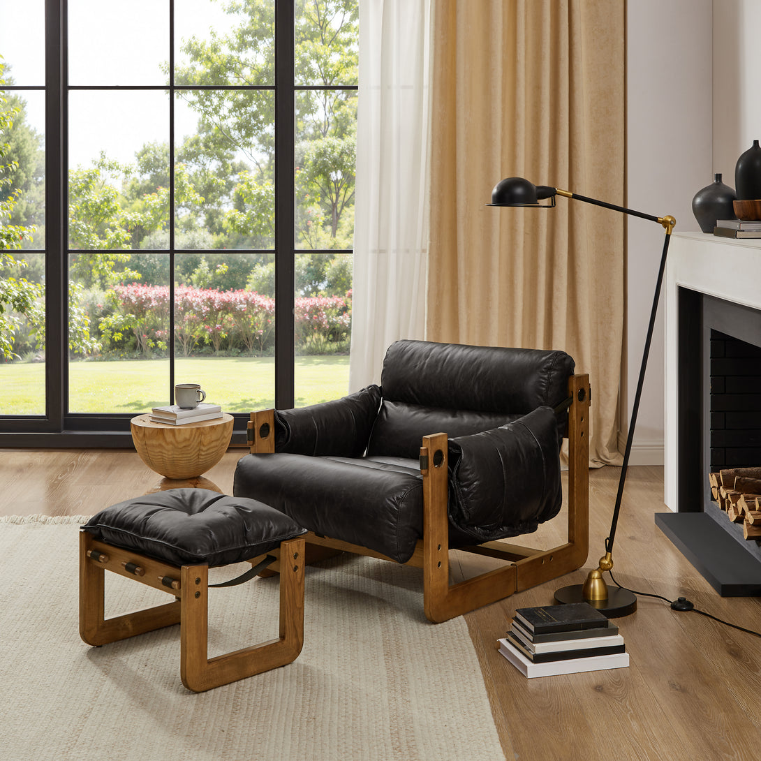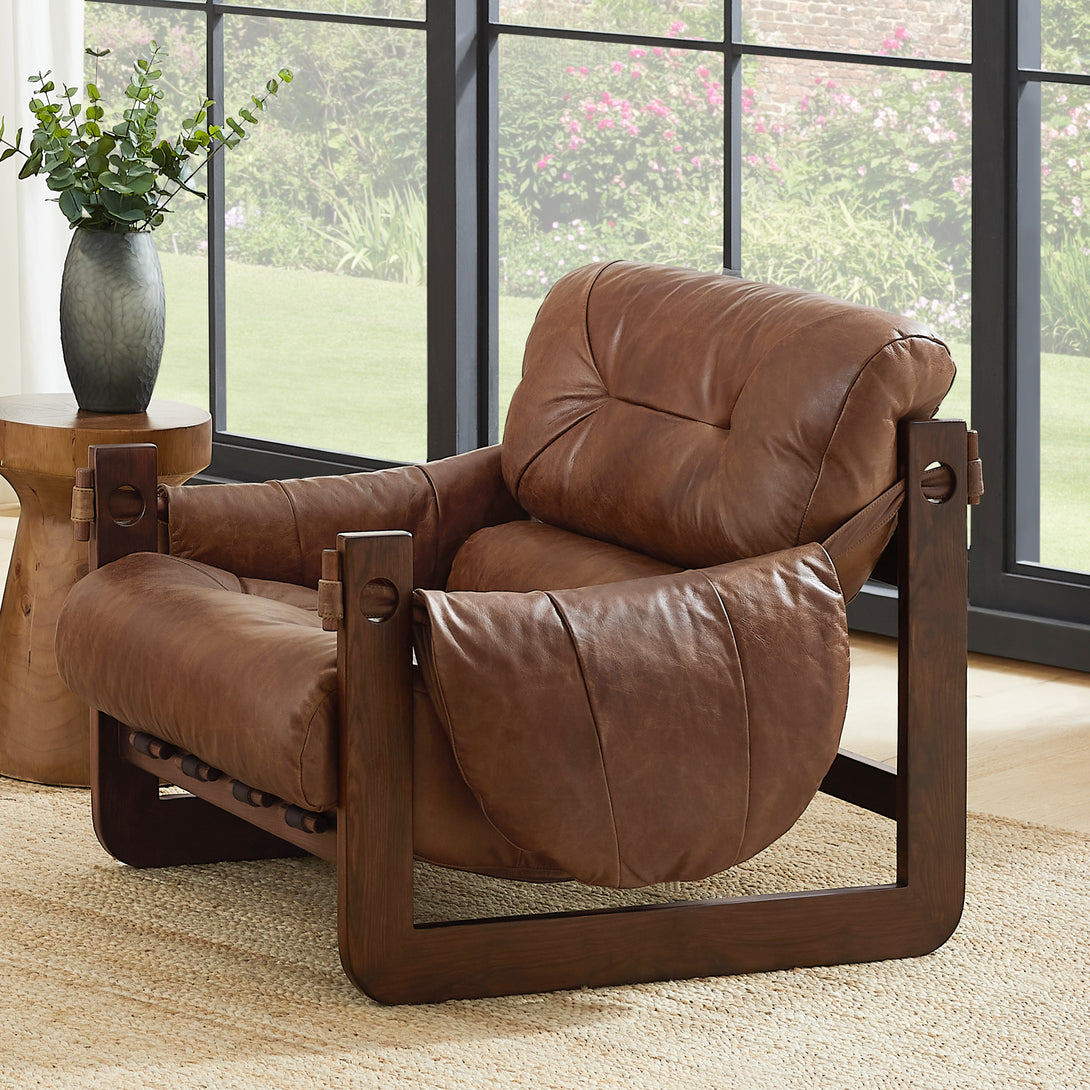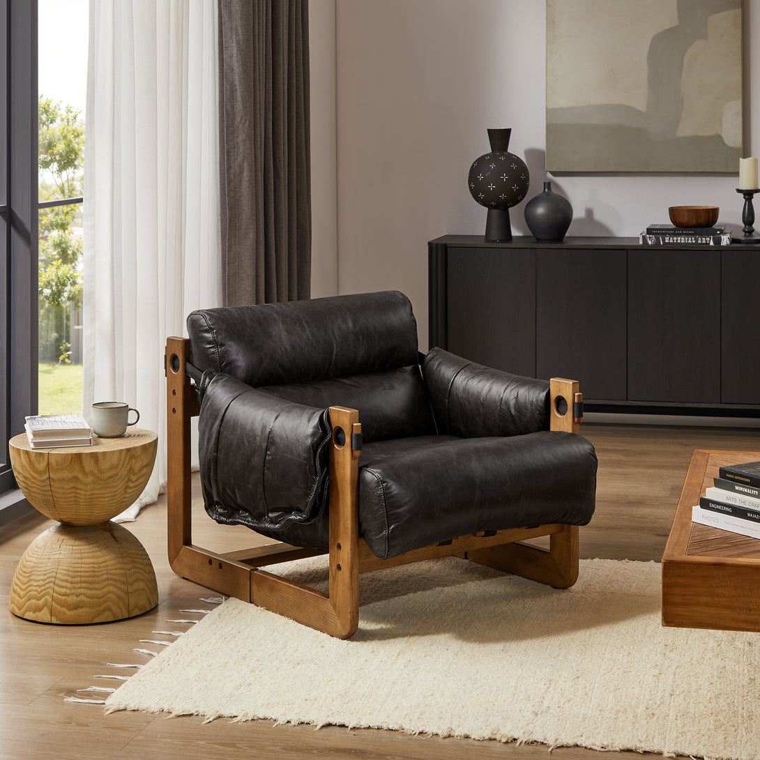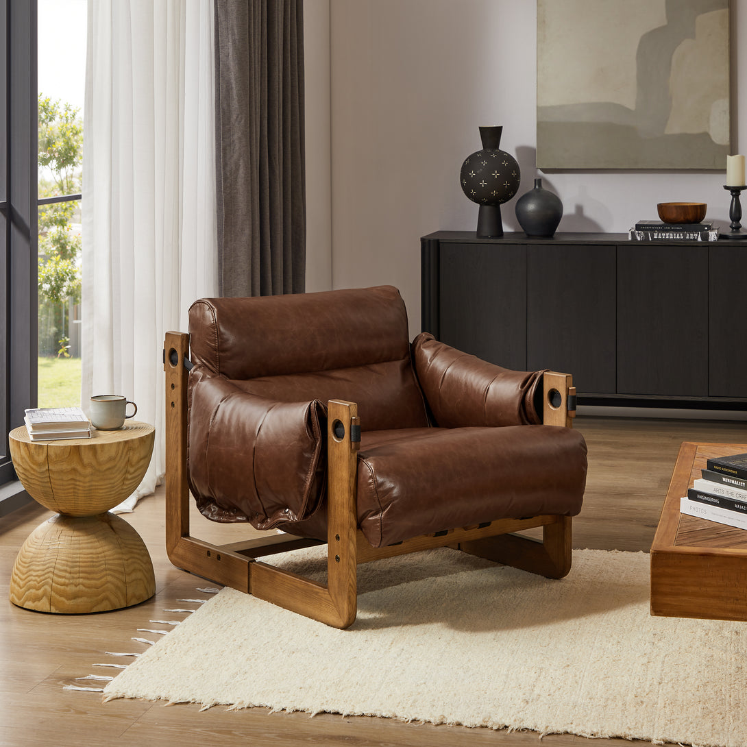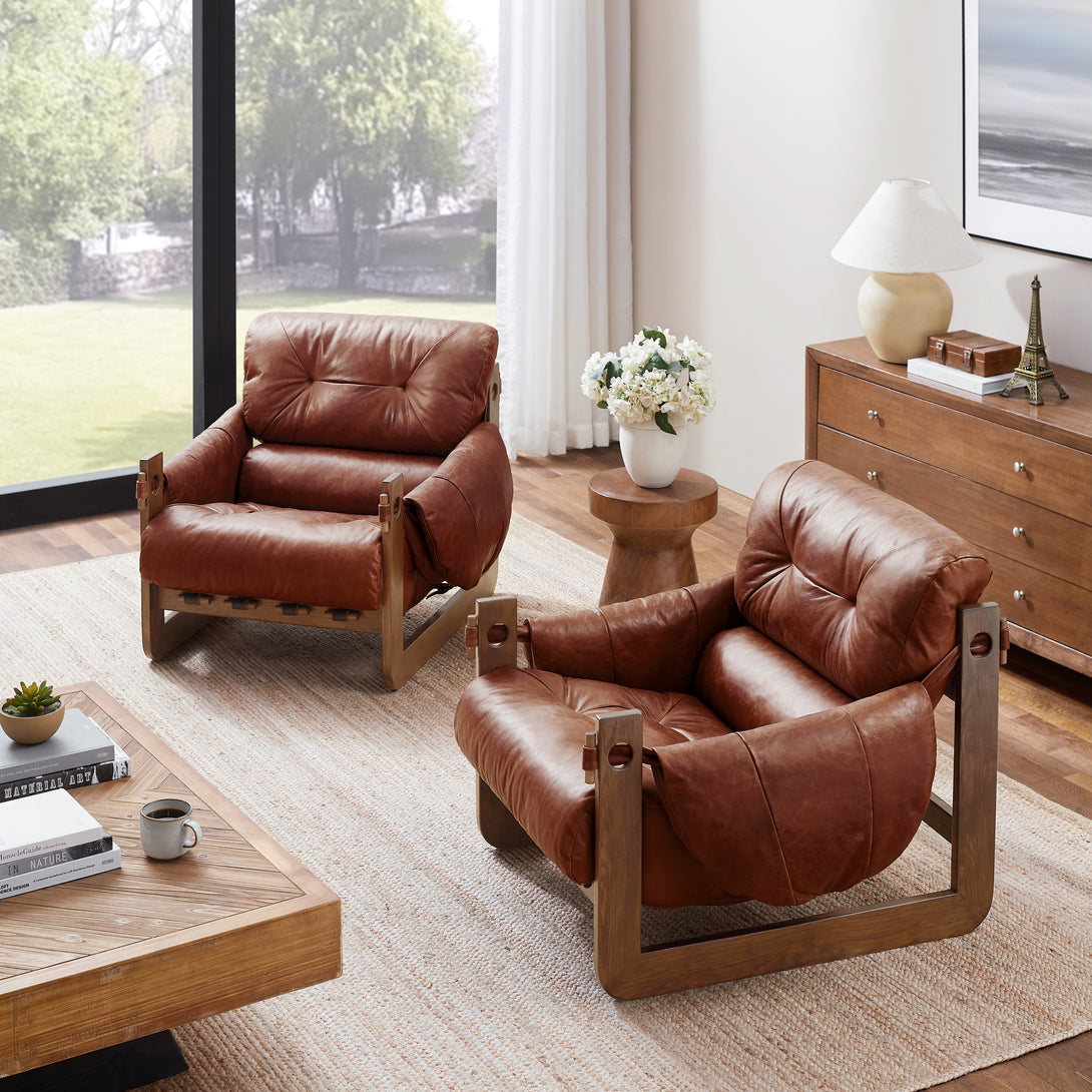 Introducing an exquisite lounge chair that combines timeless elegance with classic craftsmanship! This low-profile accent armchair is upholstered with top-grain leather, which is both breathable and delicate, and features a solid wood frame for strong support & longevity.