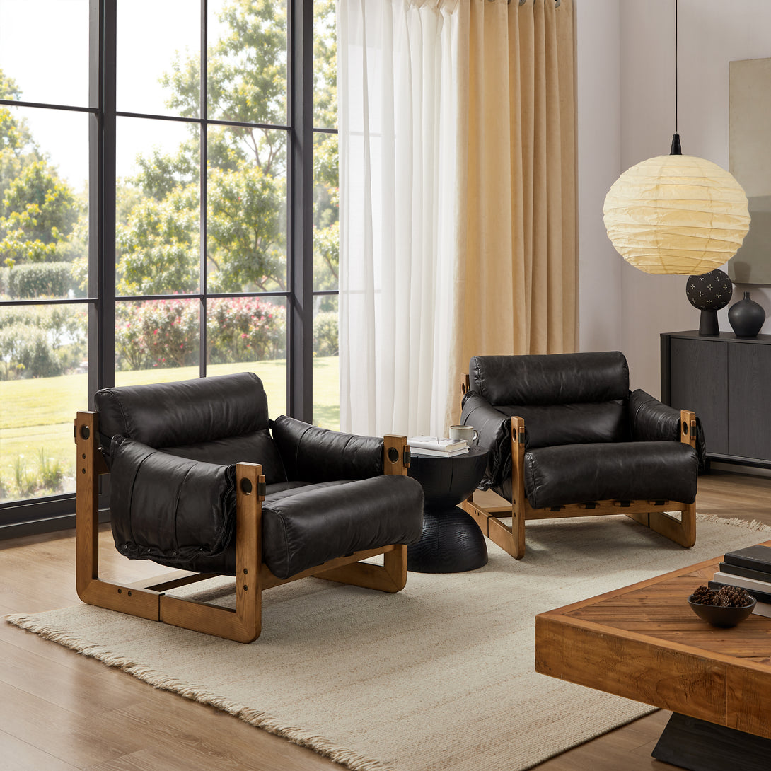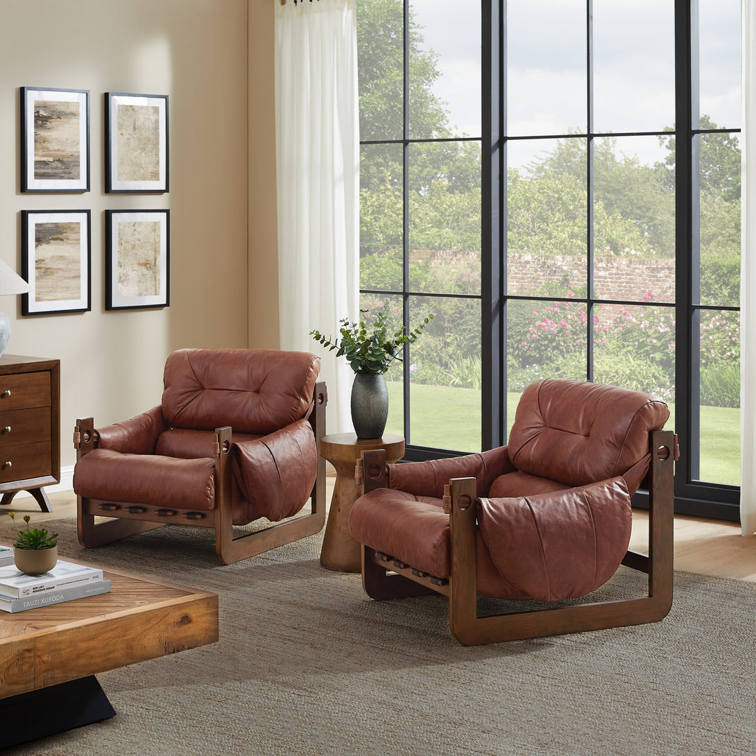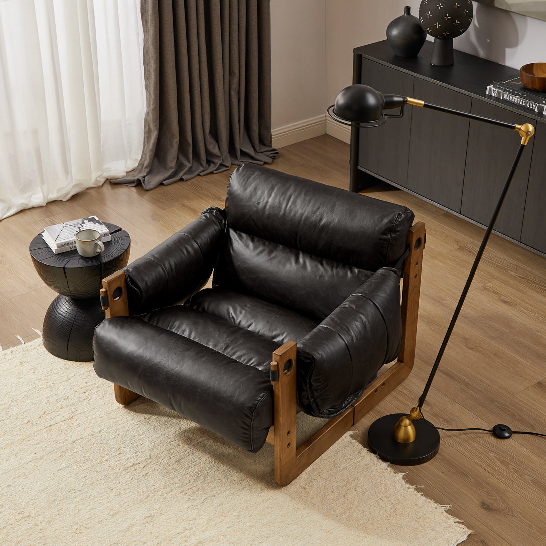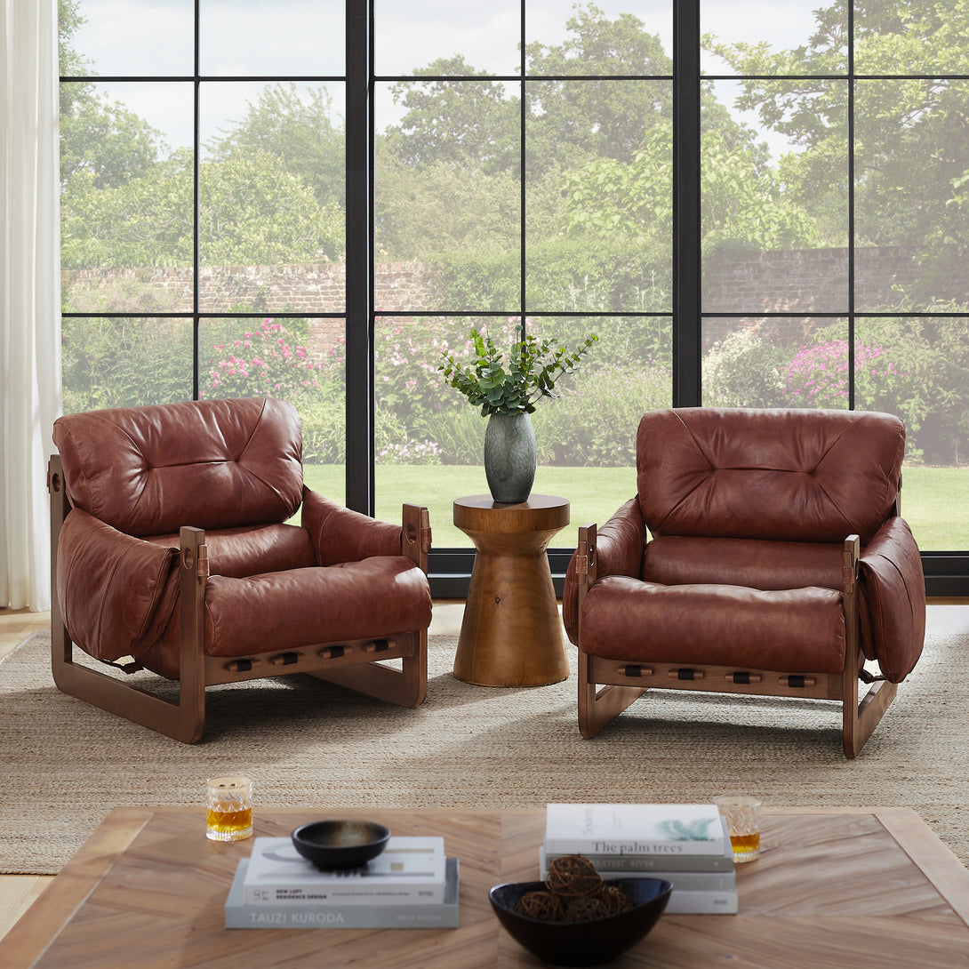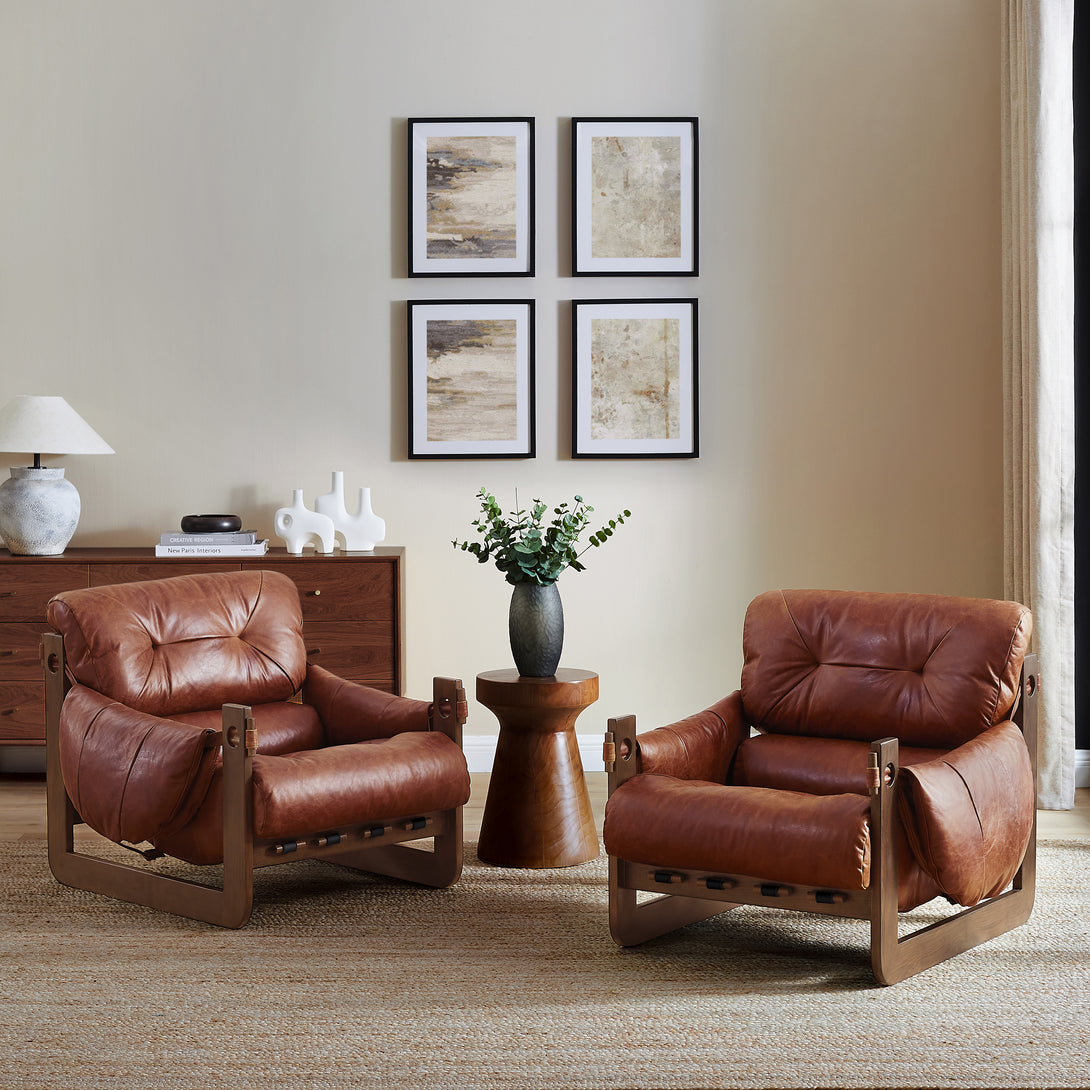 Introducing an exquisite lounge chair that combines timeless elegance with classic craftsmanship! This low-profile accent armchair is upholstered with top-grain leather, which is both breathable and delicate, and features a solid wood frame for strong support & longevity.